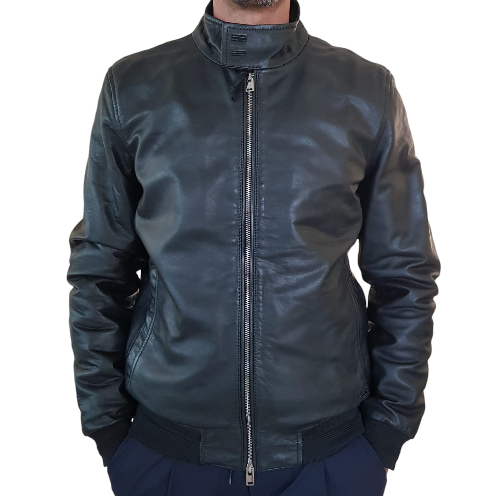 Markup Abbigliamento uomo Giubbino Bomber Vera Pelle Nero Rif.905