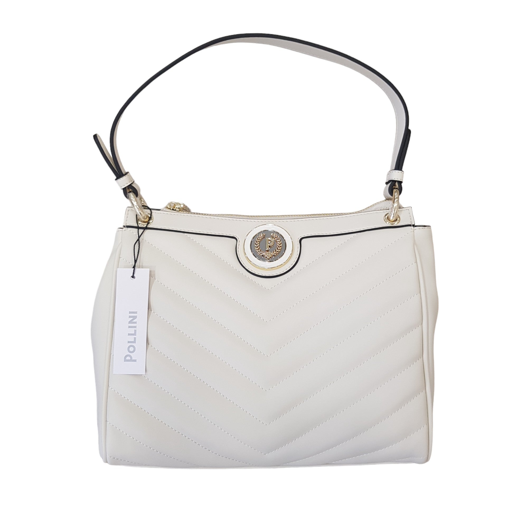 Pollini Donna Borsa a spalla con lavorazione matelassé effetto spigato. Nuovo accessorio con logo P-alloro in smalto e specchio. Portabilità a spalla. Rif.872