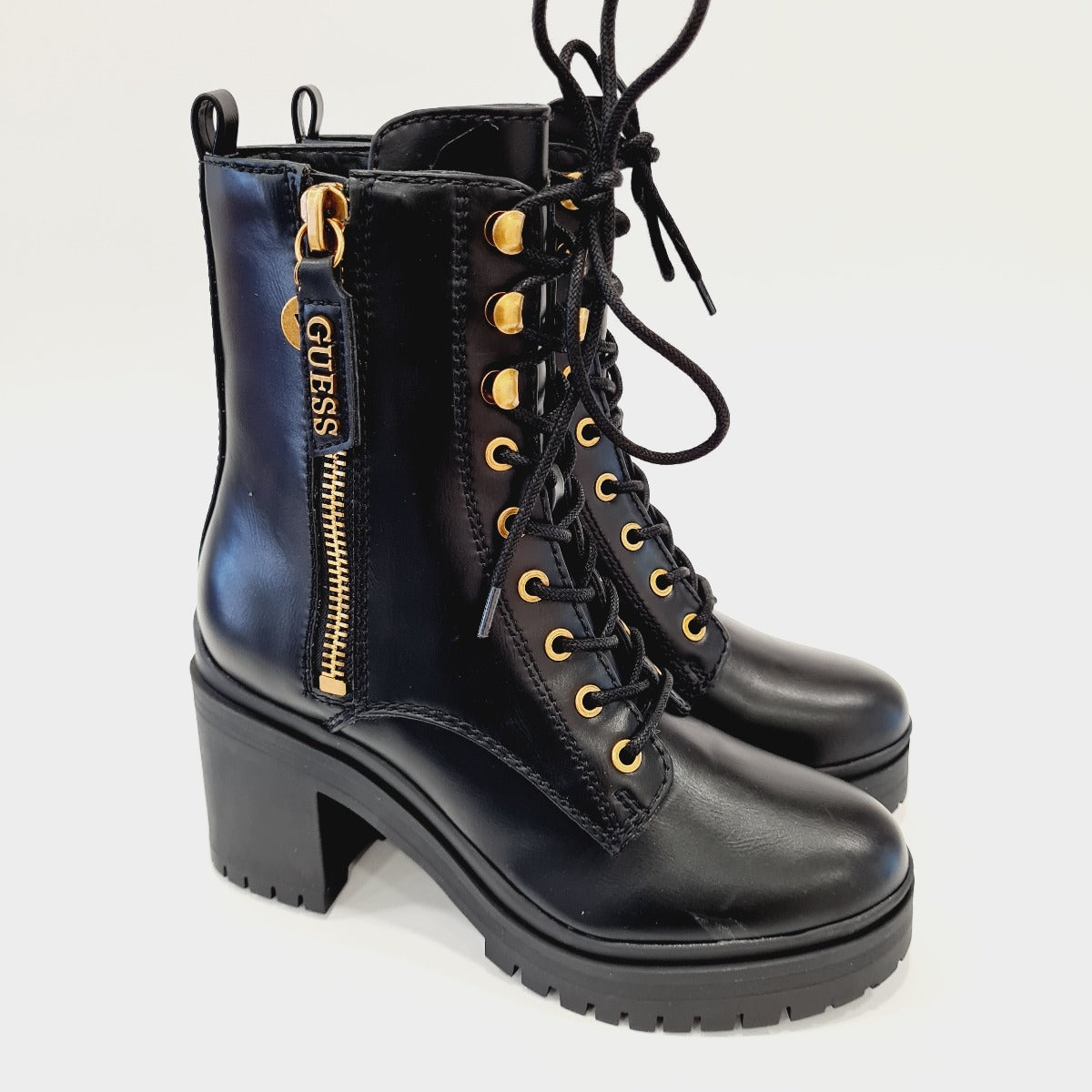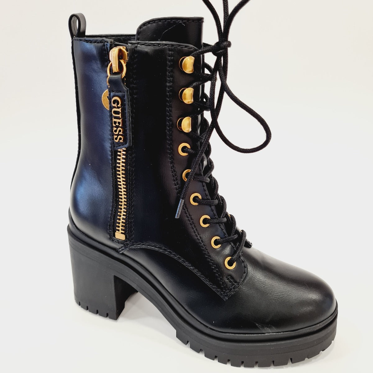Guess tronchetto anfibio fondo gomma tacco alto alto 8cm plateau 3cm pelle Black rif.G666