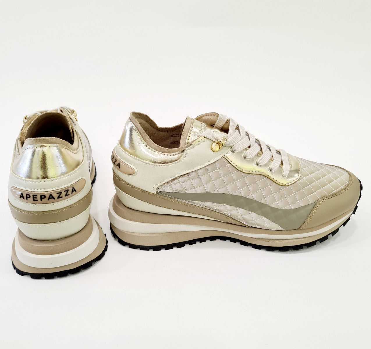 Apepazza sneakers fondo gomma + suola interna alta 2 cm. (6 cm totale) pelle vanilla oro rif.624