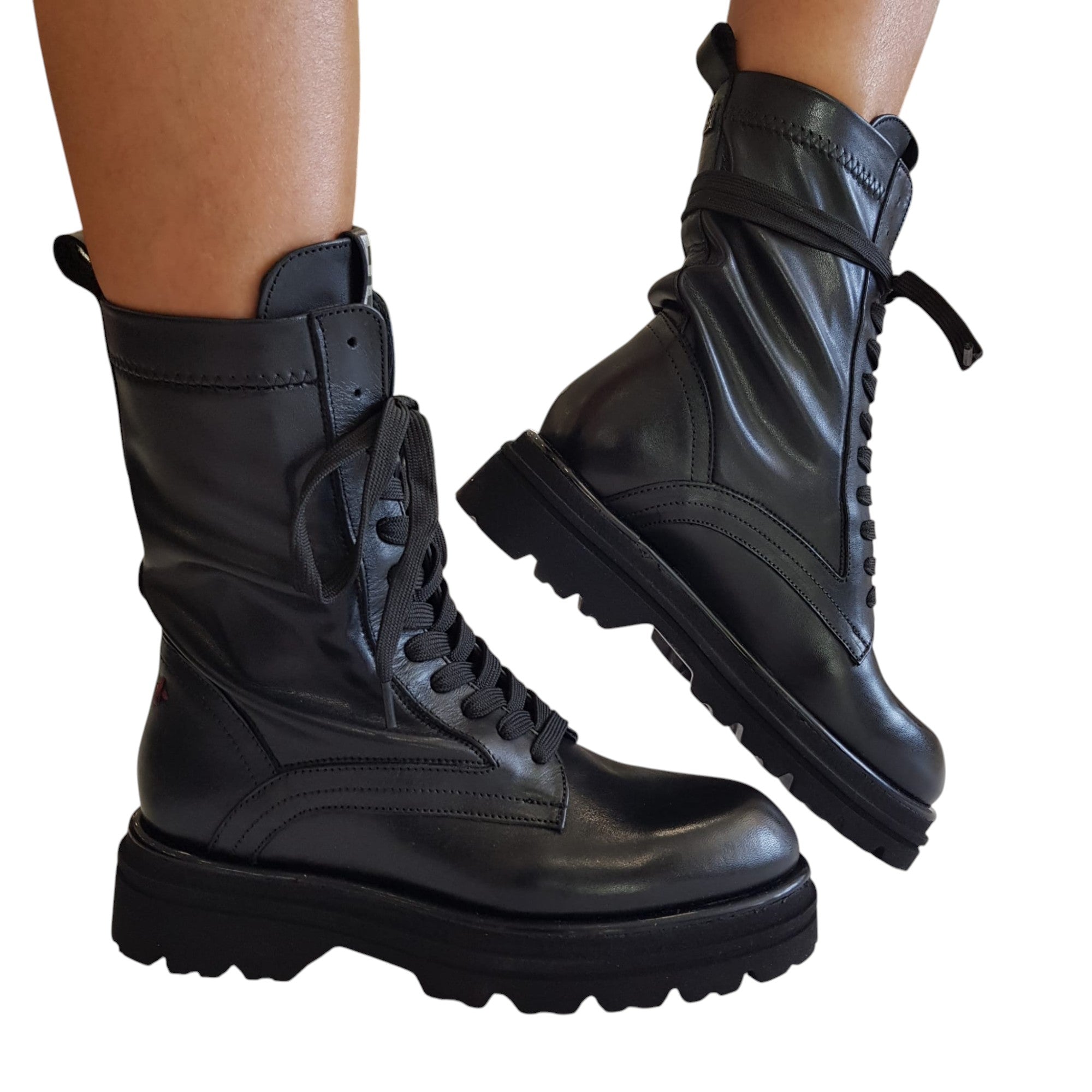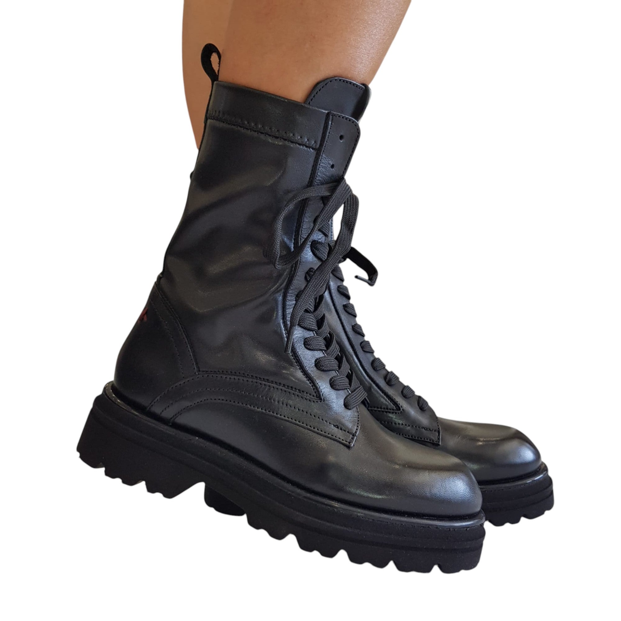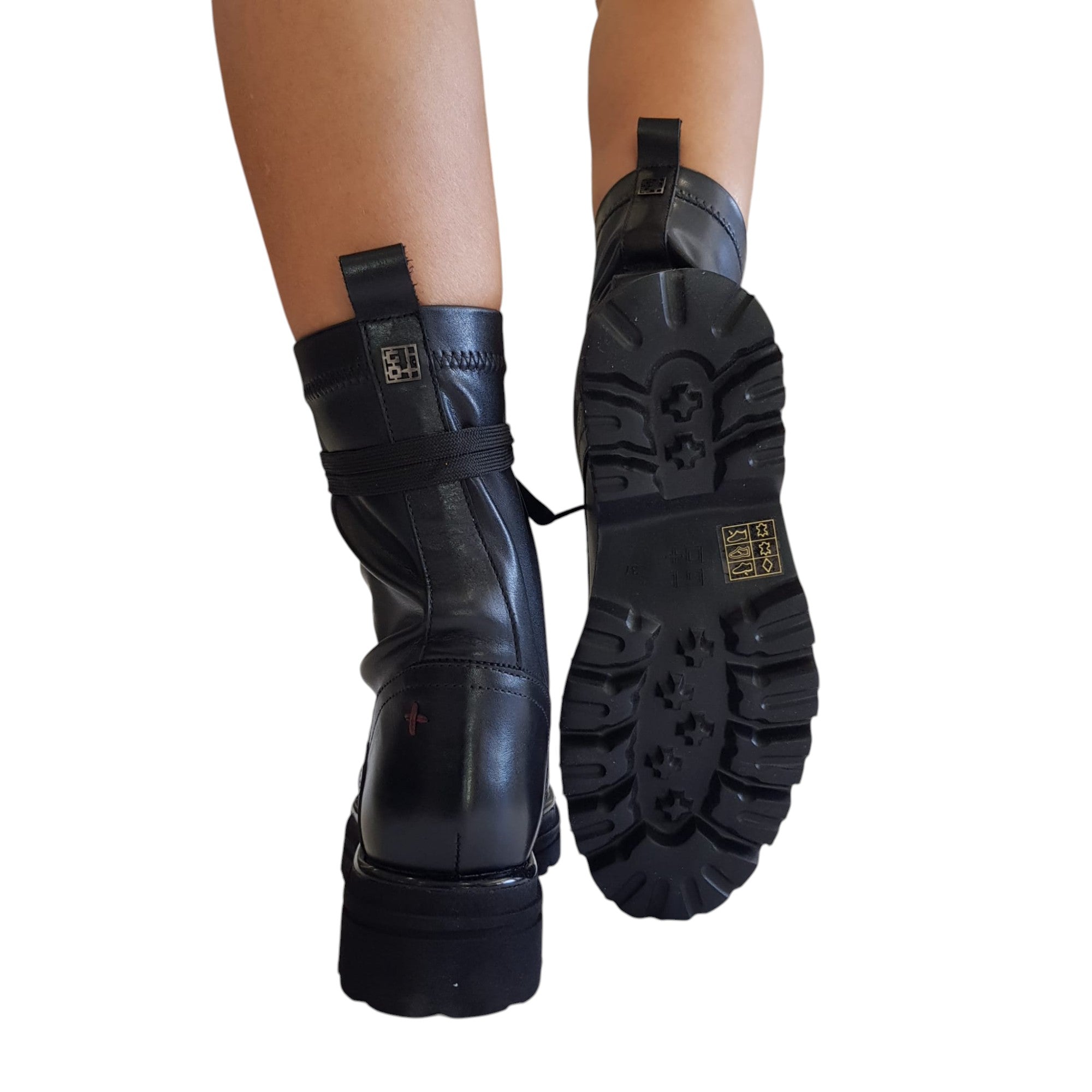 Gio+ Tronchetto Anfibio Donna Pelle e similpelle Nero fondo gomma alto 5 cm. Rif.84