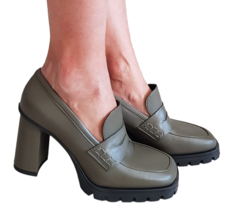 Lorenzo Mari mocassino fondo gomma tacco alto 9 cm Pelle Verde Militare rif.774