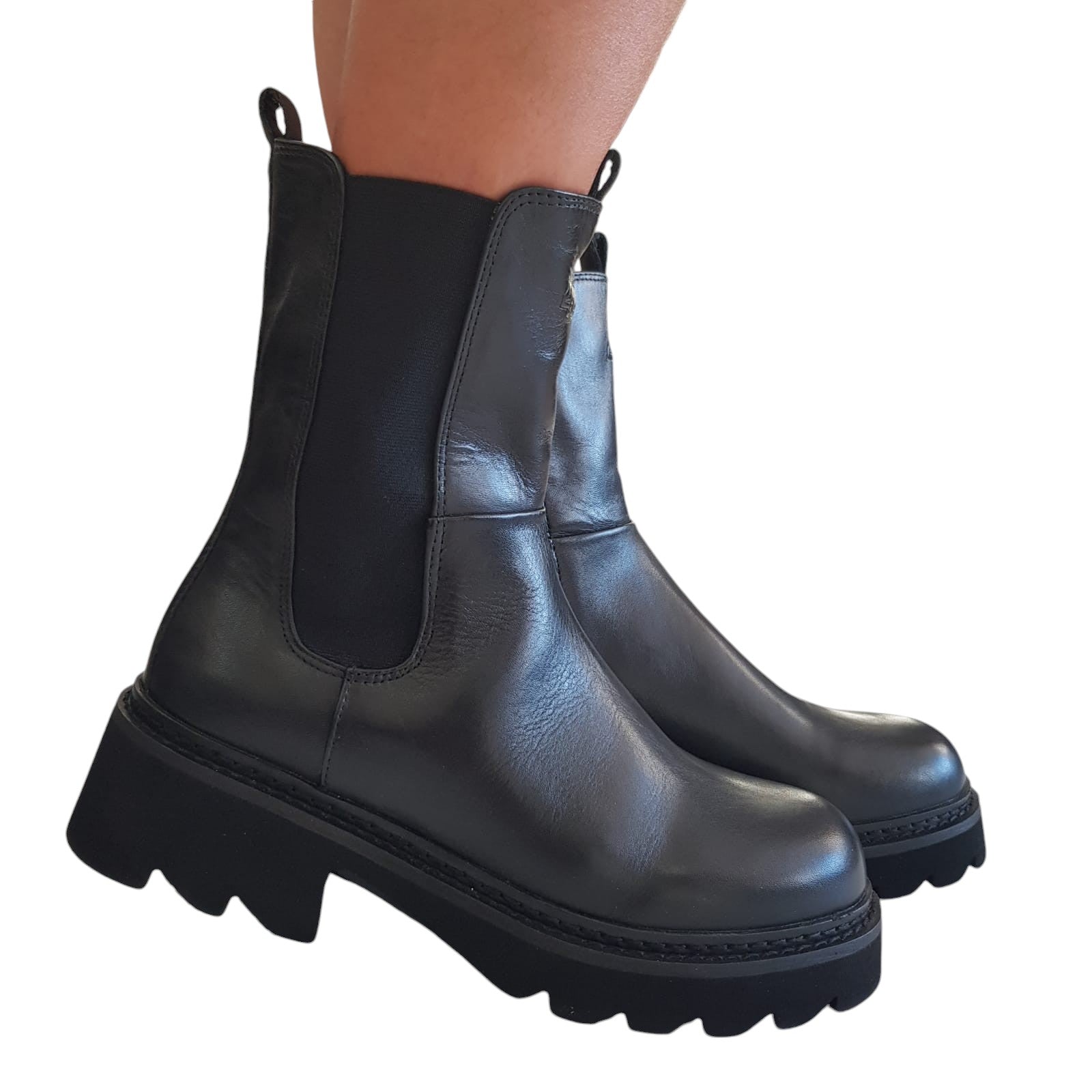 Paciotti 4US Stivaletto Beatles Donna Pelle Nero fondo gomma alto 5 cm. elastico lato esterno zip lato interno Rif.150