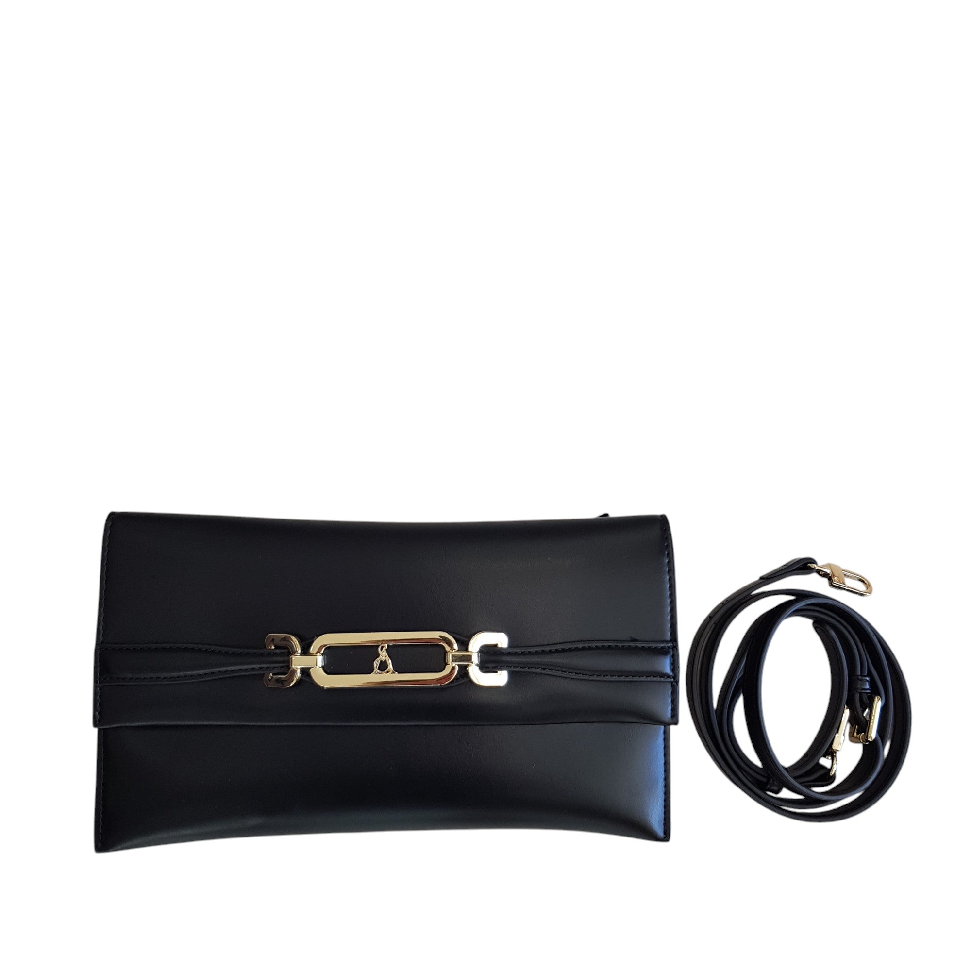 Bustina con tracolla in ecoleather. La chiusura magnetica. E' personalizzata con logo oro L'Atelier du Sac, Rif.1014
