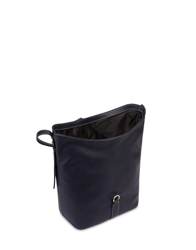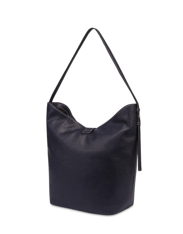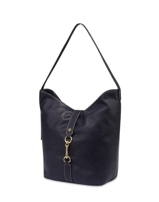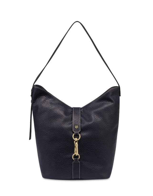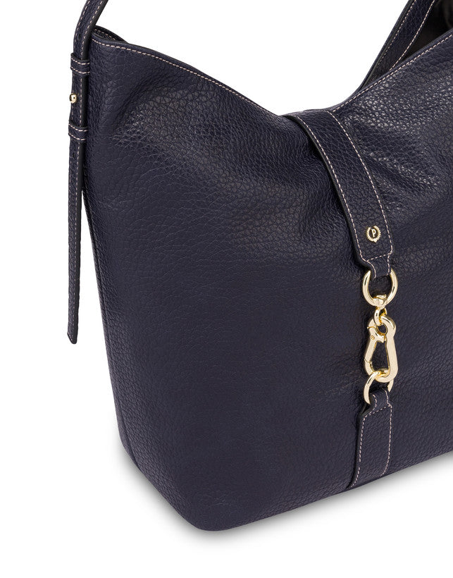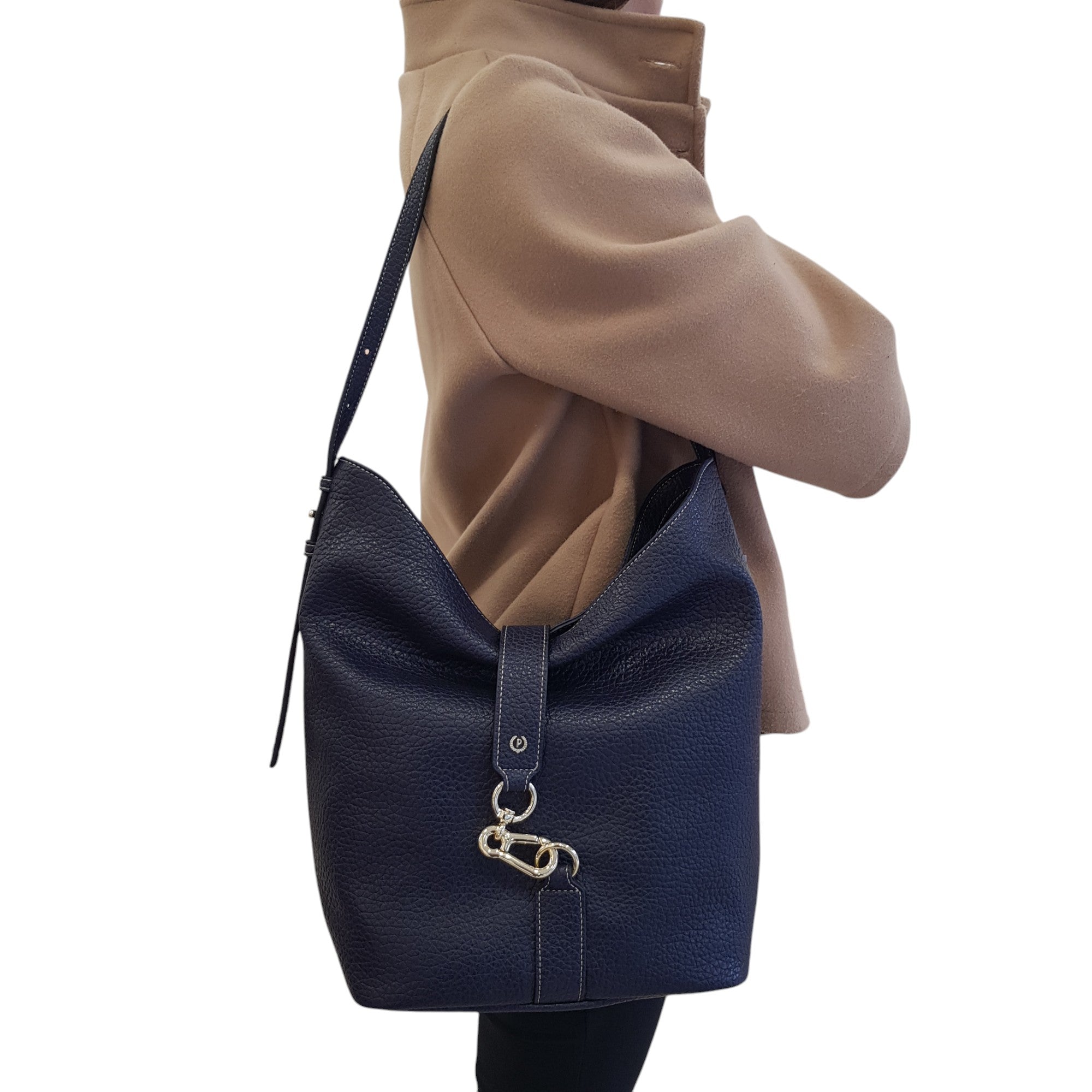 Borsa hobo dalla costruzione essenziale e destrutturata. Chiusura a moschettone centrale in galvanica oro chiaro e cuciture a contrasto. Art.781