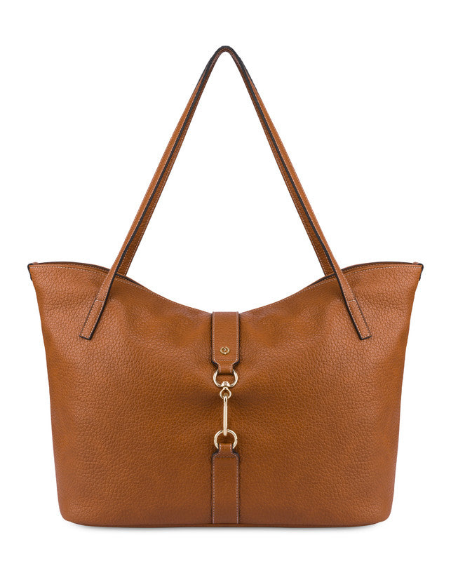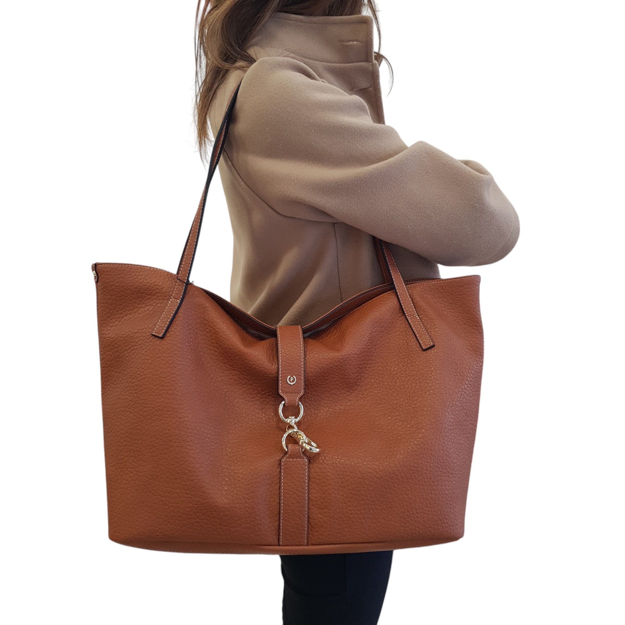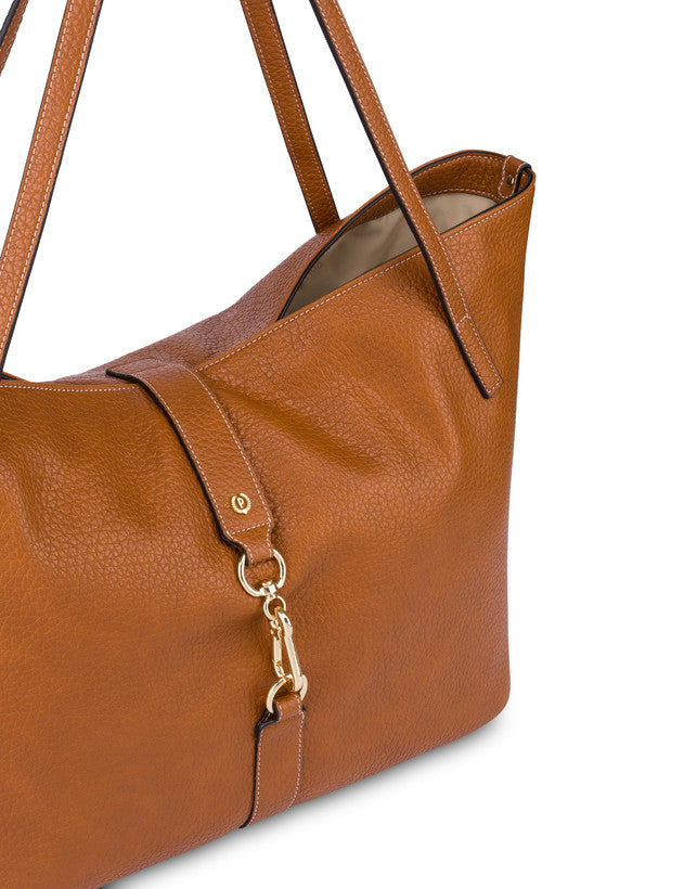 Tote bag dalla costruzione essenziale e destrutturata. Chiusura a moschettone centrale in galvanica oro chiaro e cuciture a contrasto color écru. Art.782