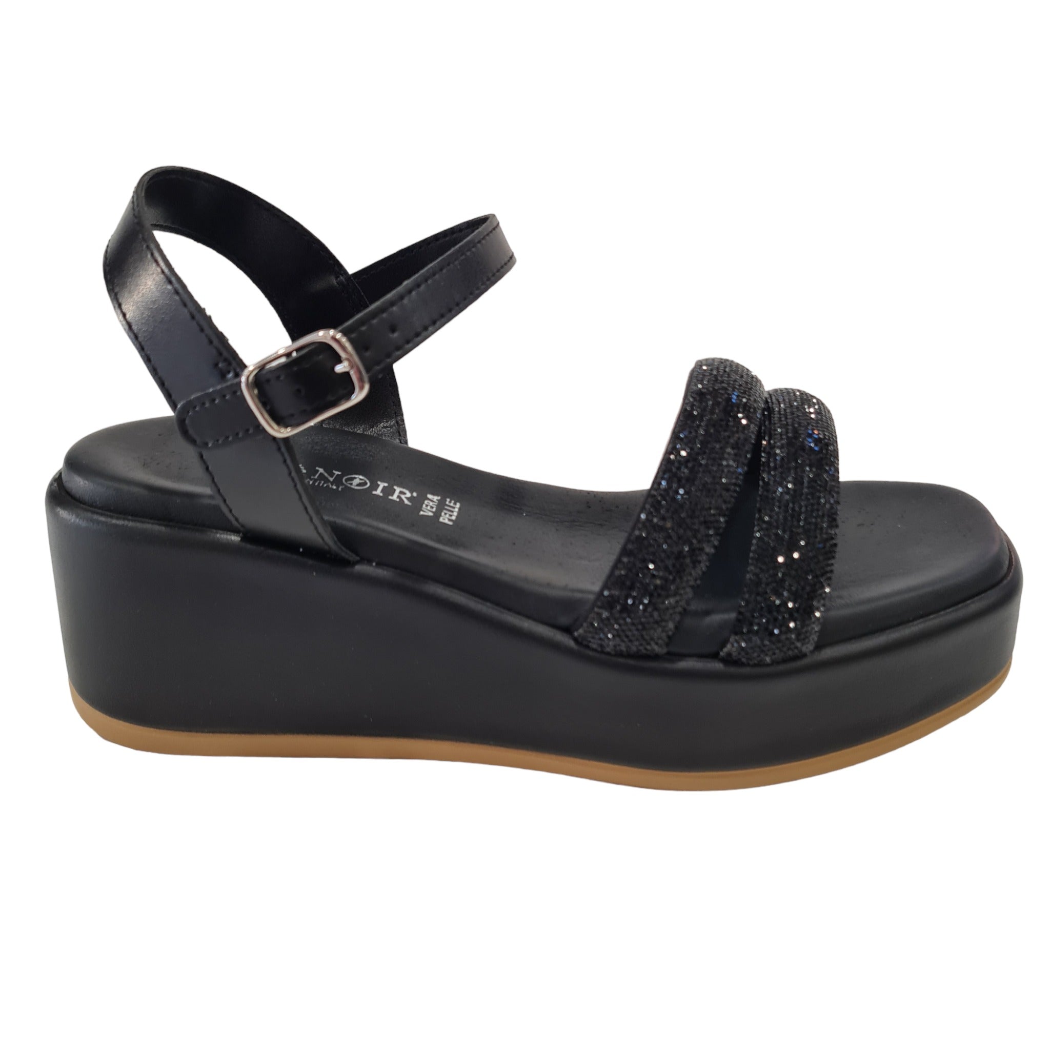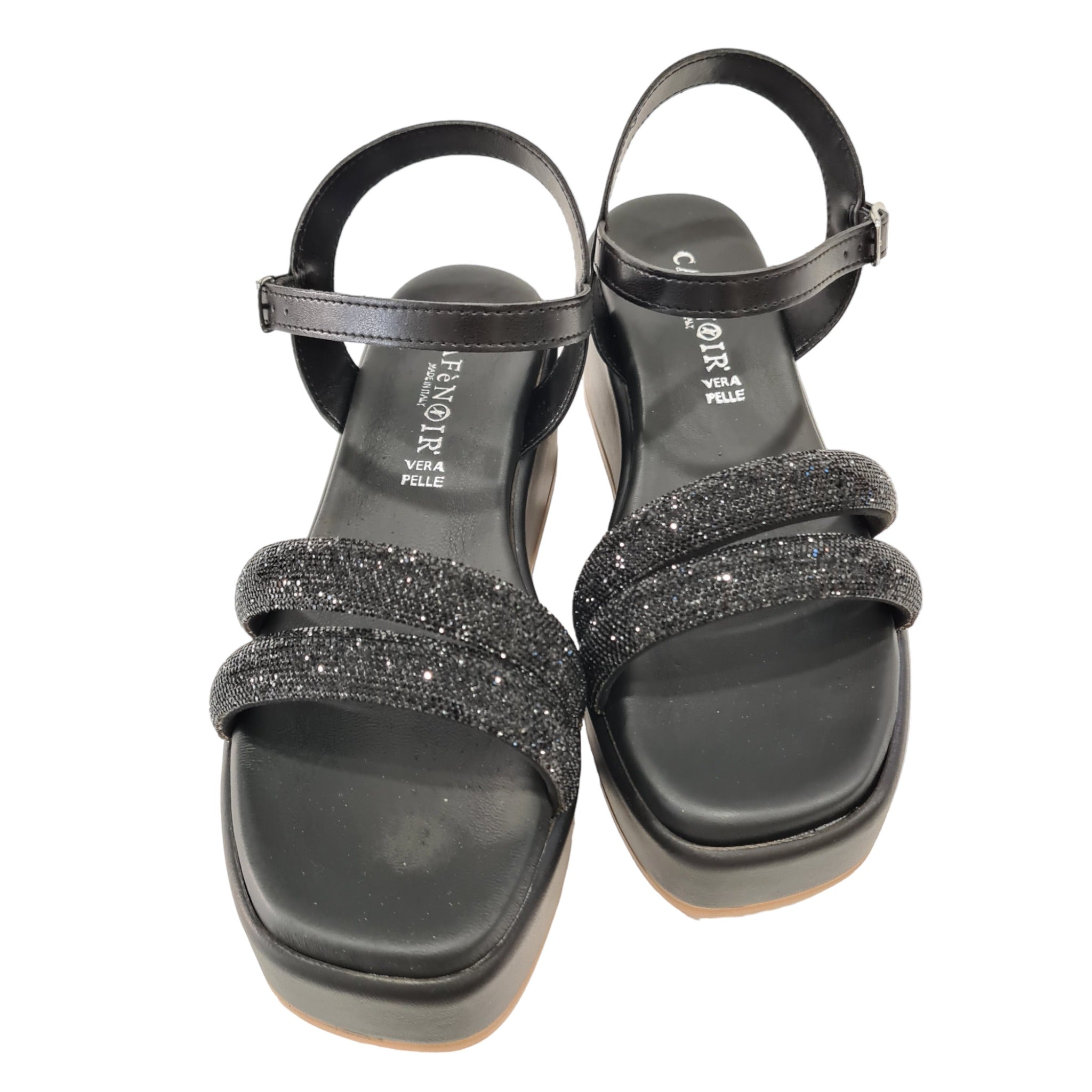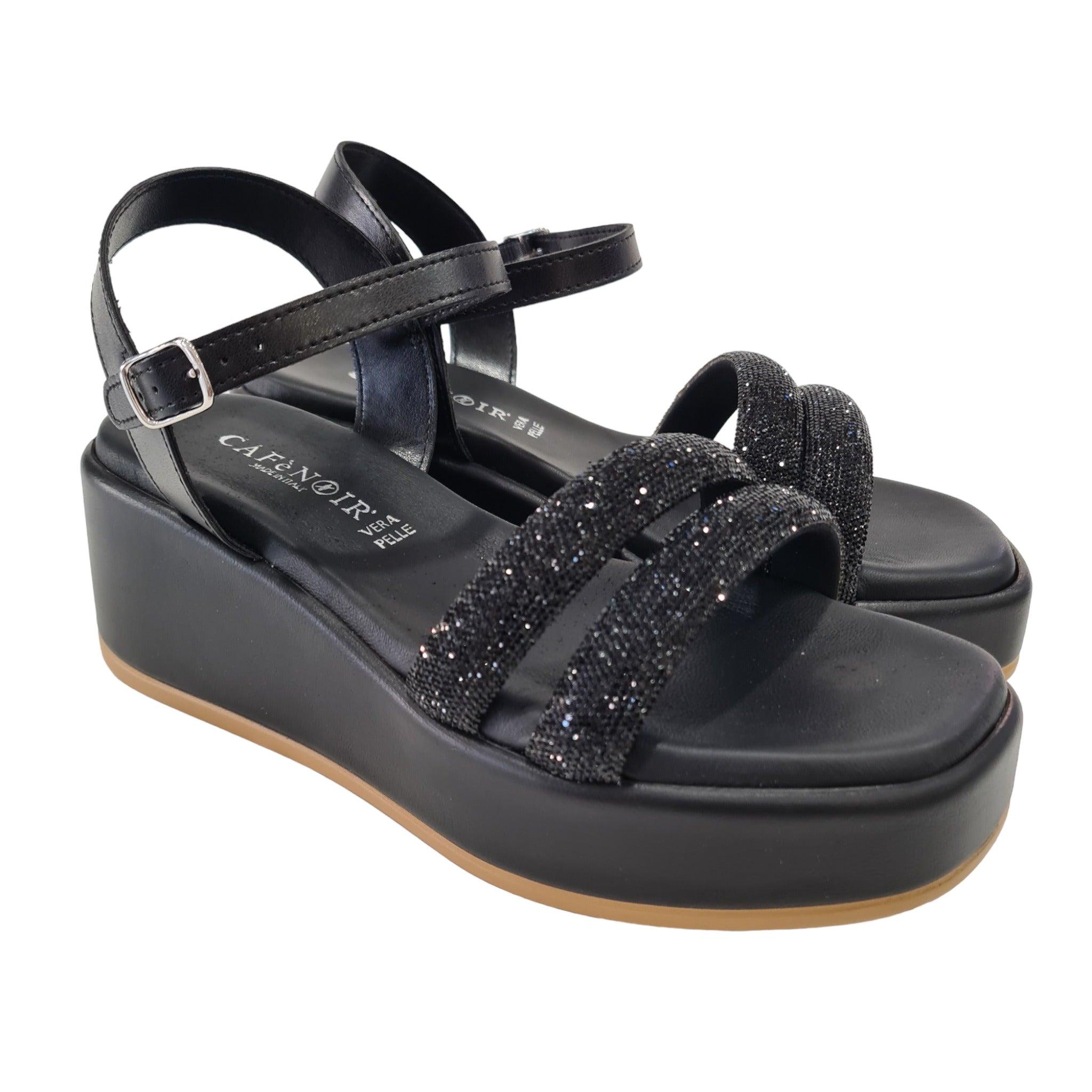 Cafenoir Sandalo Donna Zeppa Alta 7 cm. Pelle Nero Strass Nero rif.746