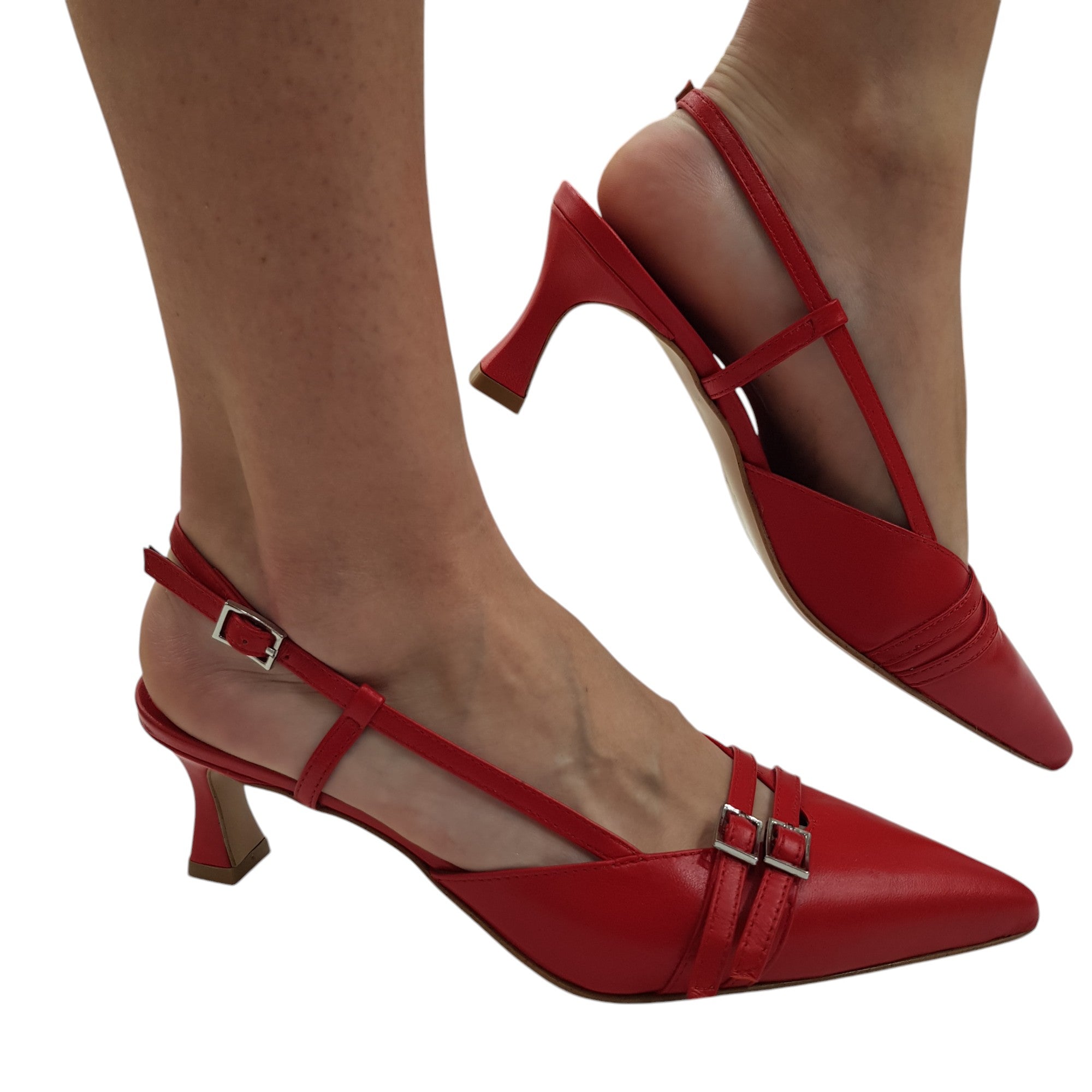 Tattoo Sandalo Slingback Donna Tacco alto 6 cm Pelle Rosso Rif.727