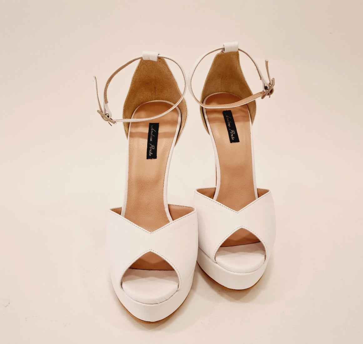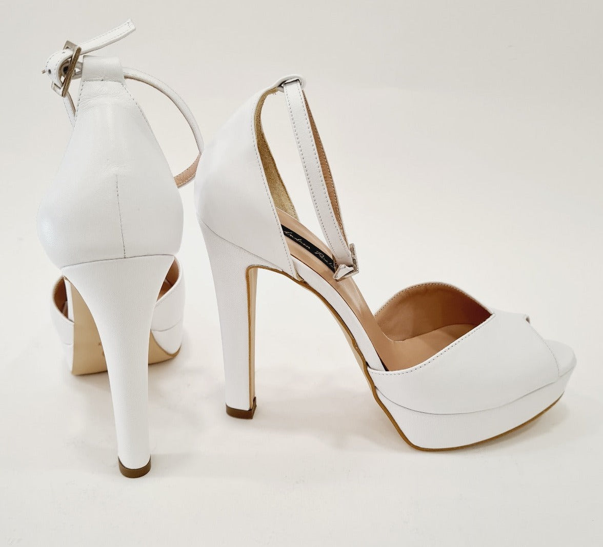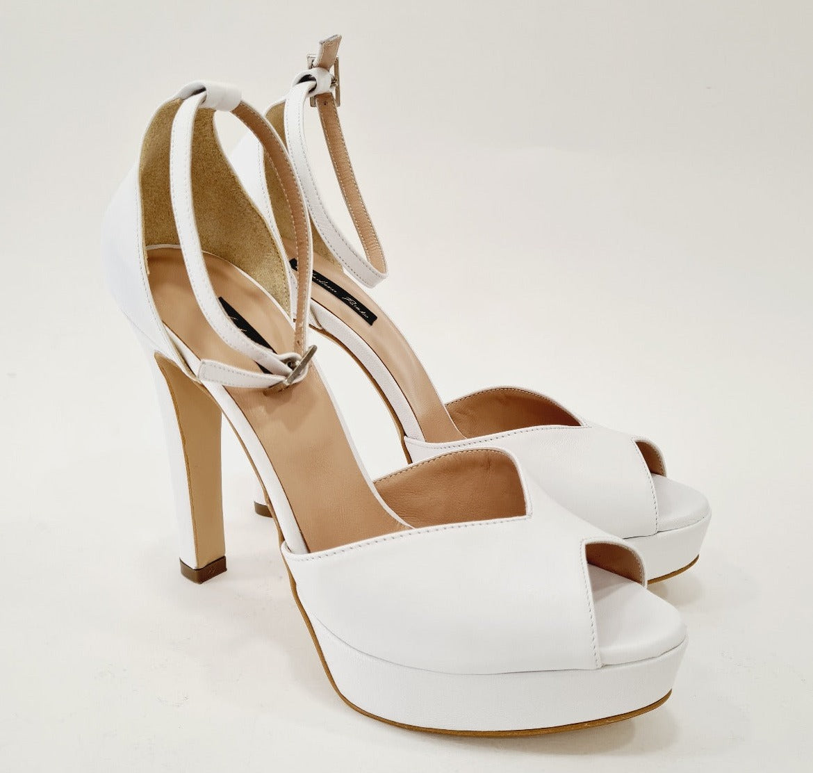 Andrea Pinto sandalo cinturino alla caviglia tacco alto 12 cm plateau 2,5 cm pelle bianco art.752 N.B.:ORDINABILE IN QUALSIASI VARIANTE DI COLORE E MATERIALE