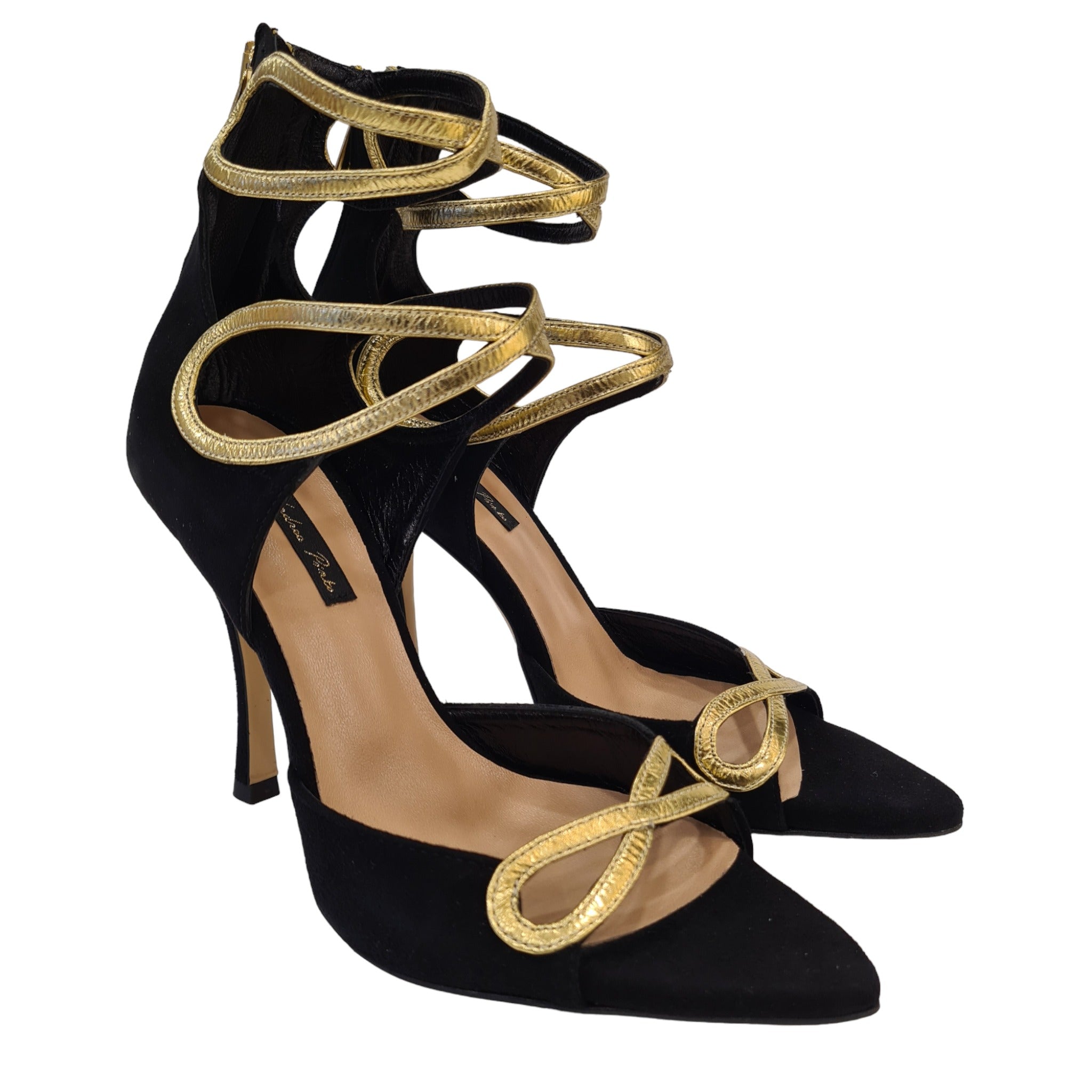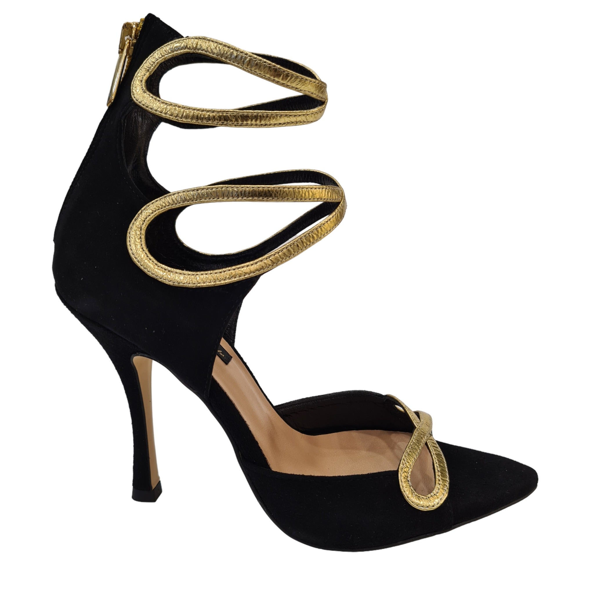 Andrea Pinto Sandalo Donna Camoscio Nero Pelle Oro Rif.466