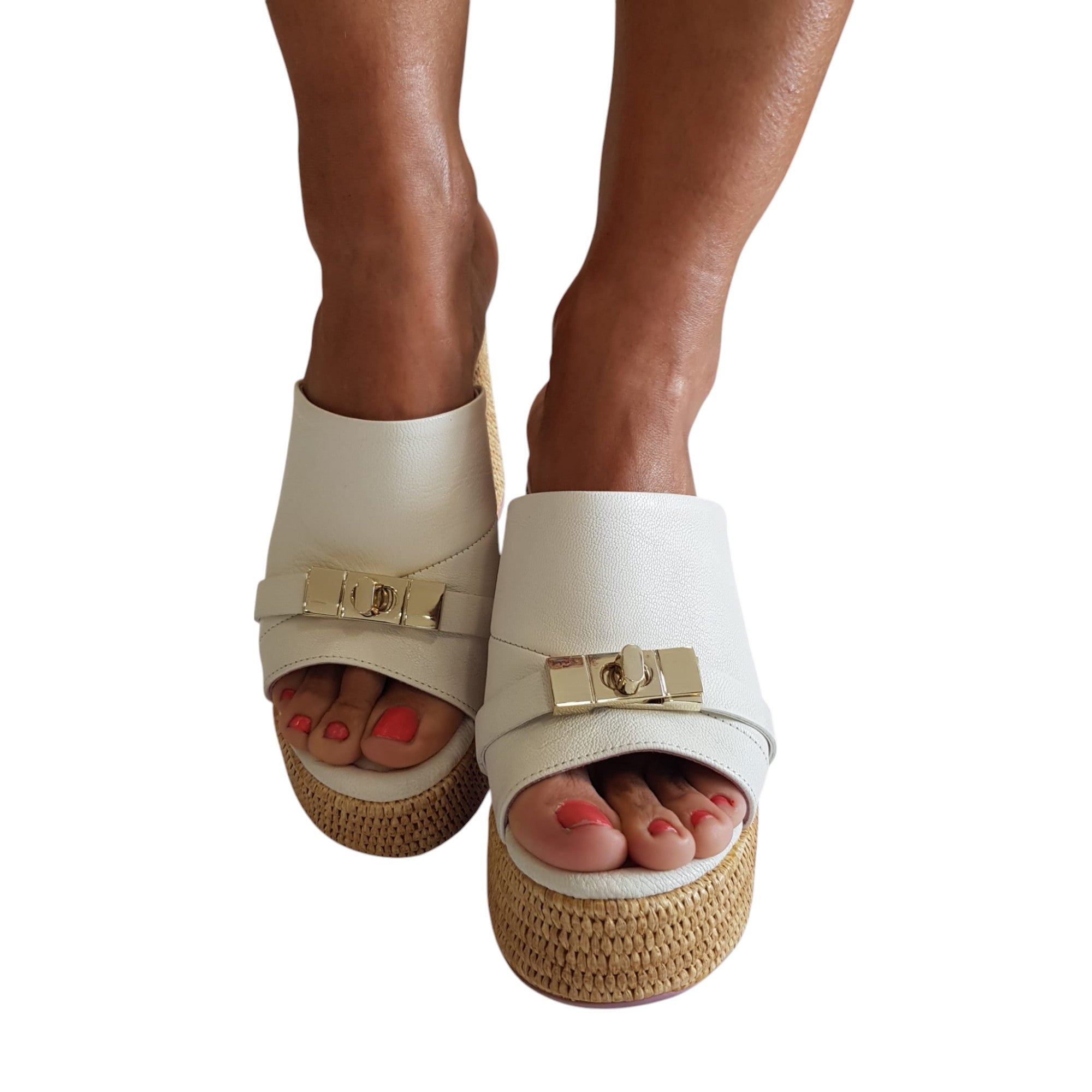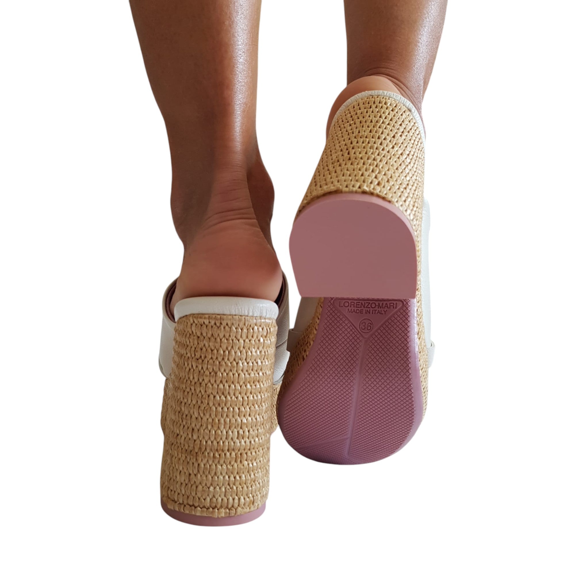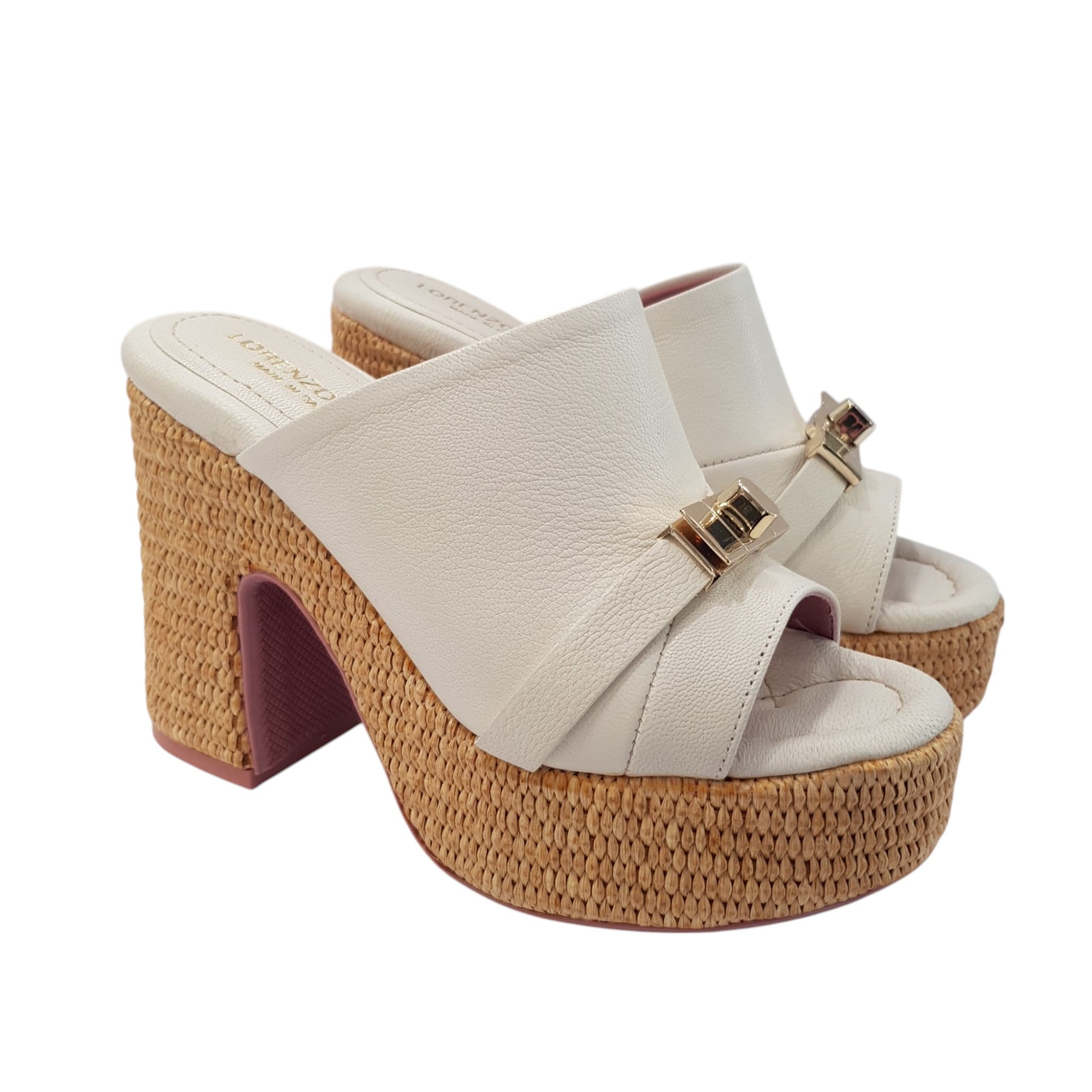 Lorenzo Mari Sabot Donna Pelle color Bianco latte alto 11,5 cm Plateau 4 cm Rif.849