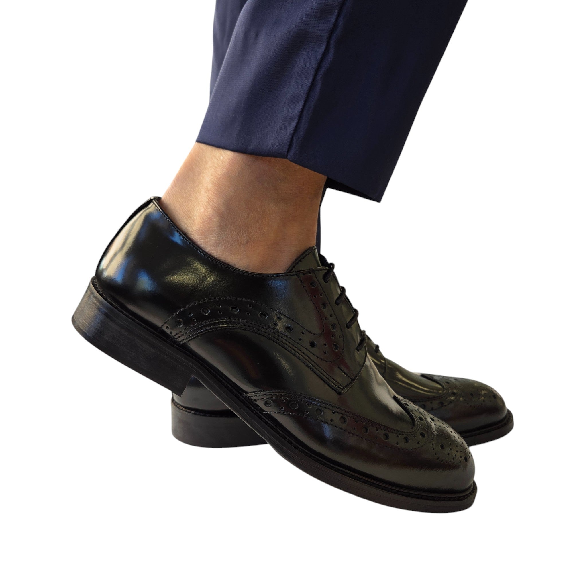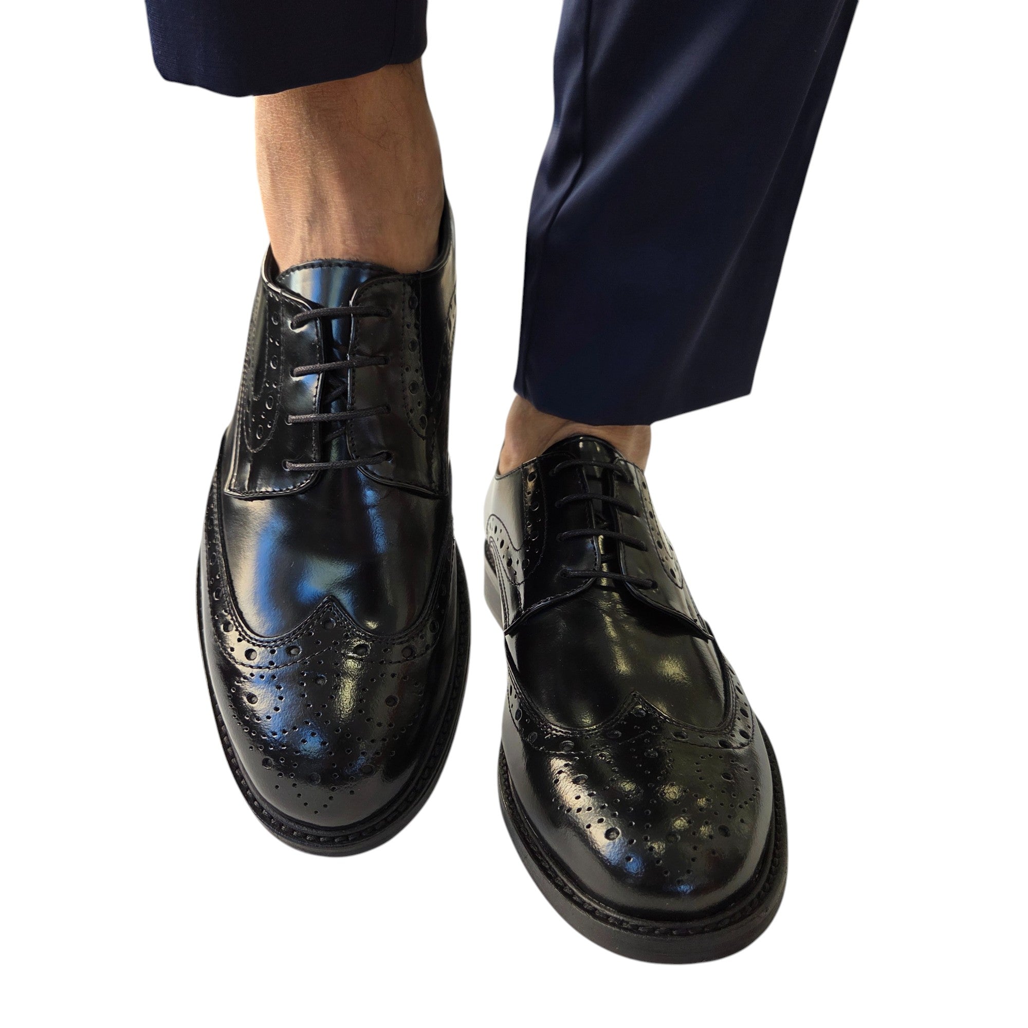 Les Poemes Uomo Scarpa Elegante stile Duilio fondo mezza piantina cuoio Pelle Spazzolata Nero Rif.128