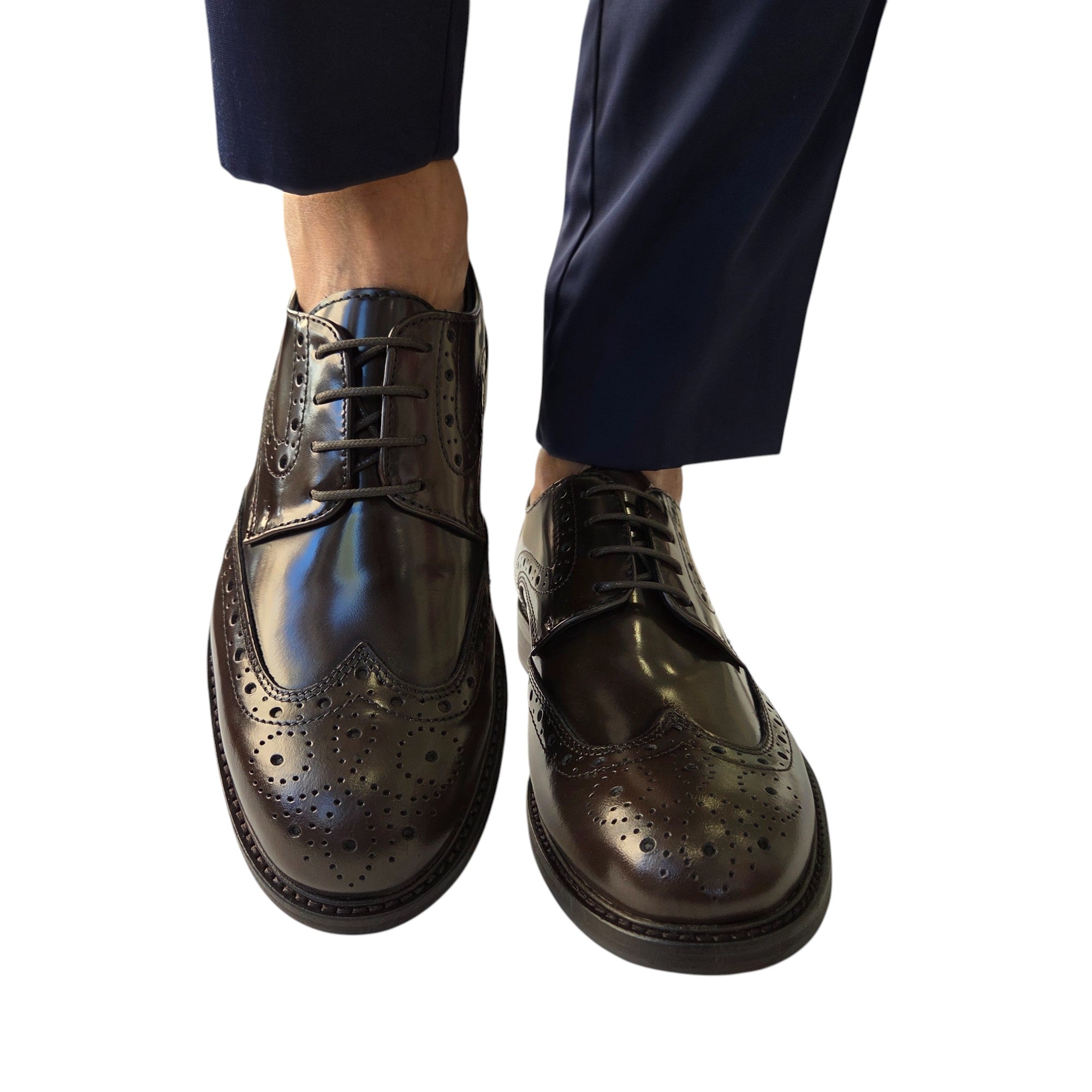 Les Poemes Uomo Scarpa Elegante stile Duilio fondo mezza piantina cuoio Pelle Testa di Moro Rif.130