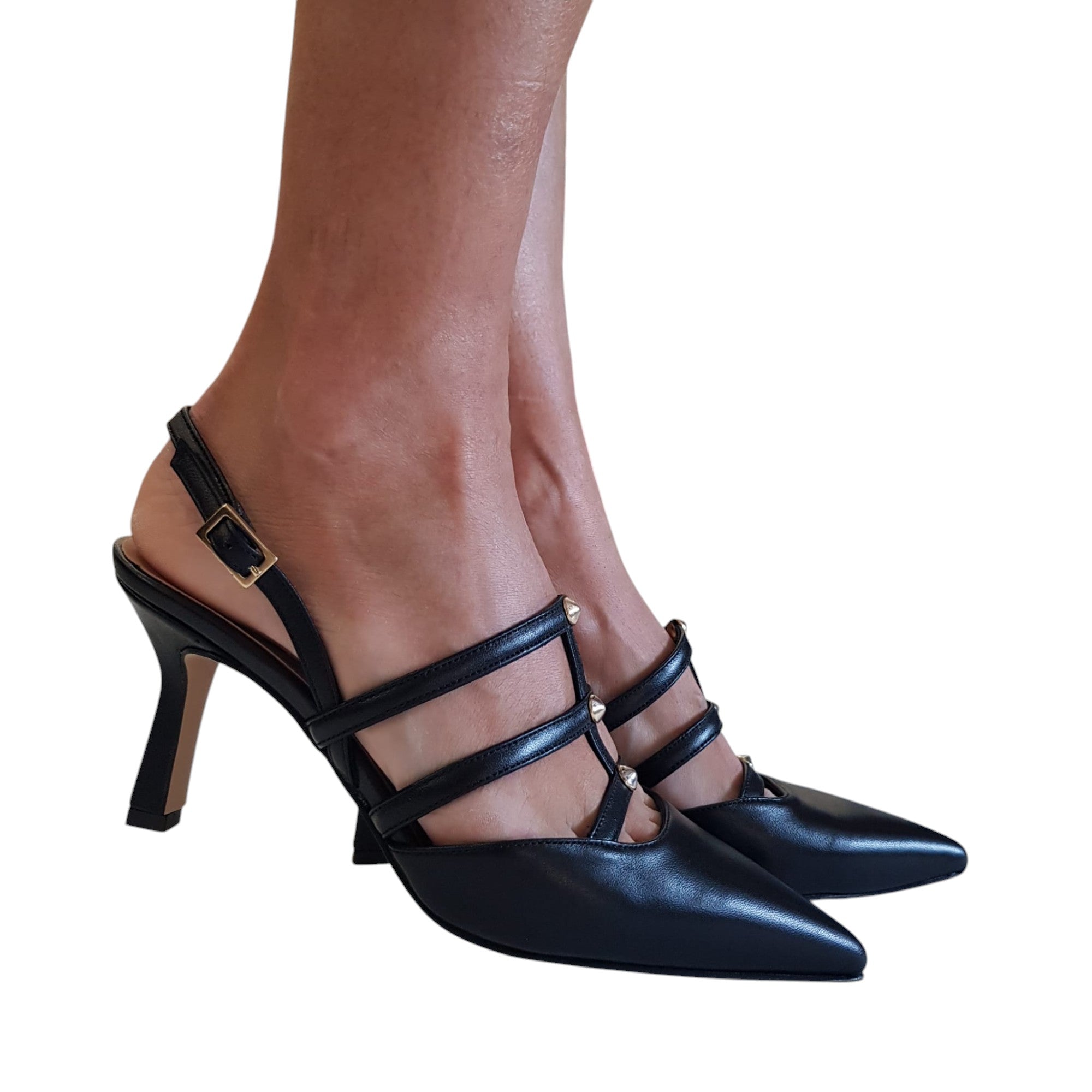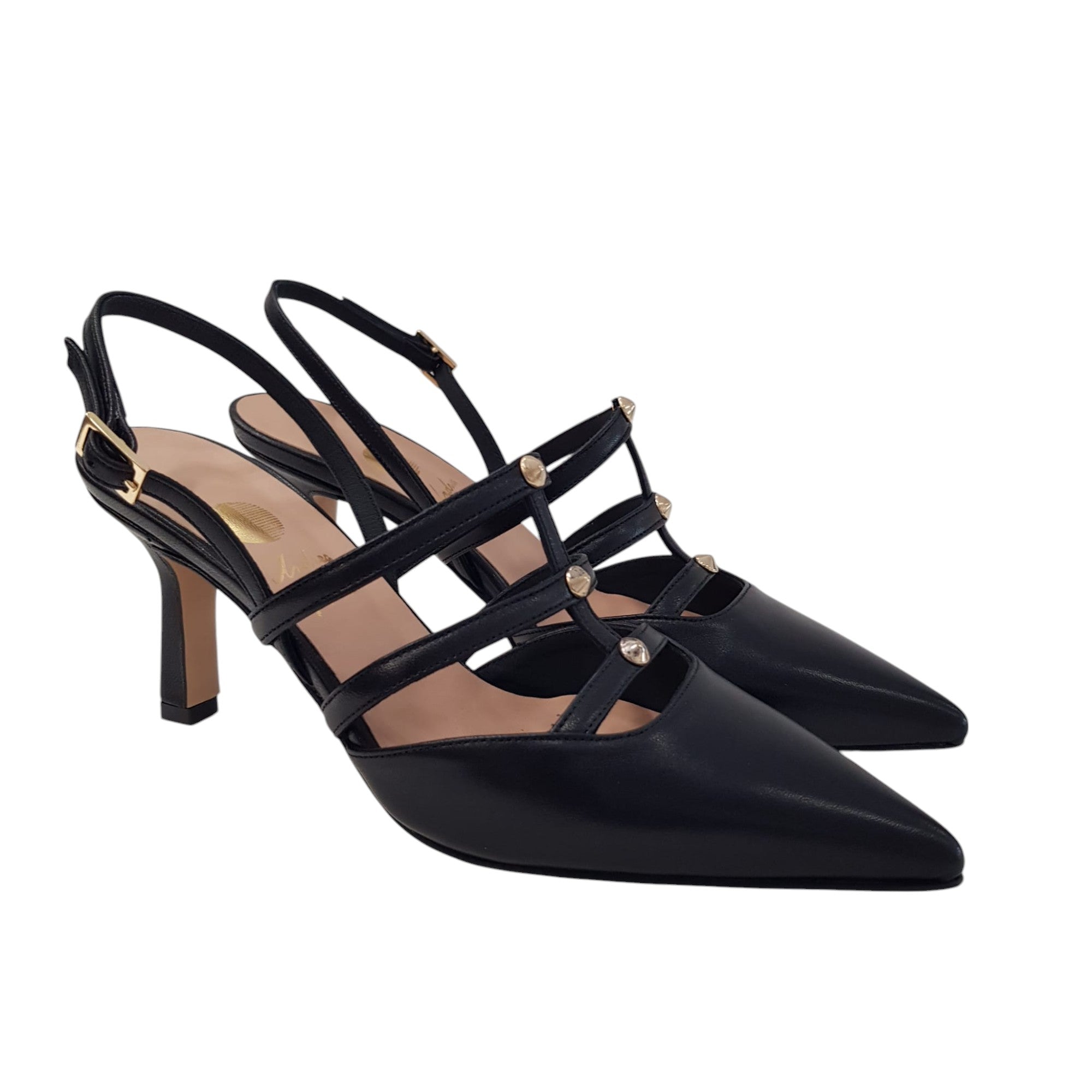 Andrea Pinto Slingback Donna prodotto artigianale made in Italy vera Pelle Nero tacco 7,5 cm. Rif.137