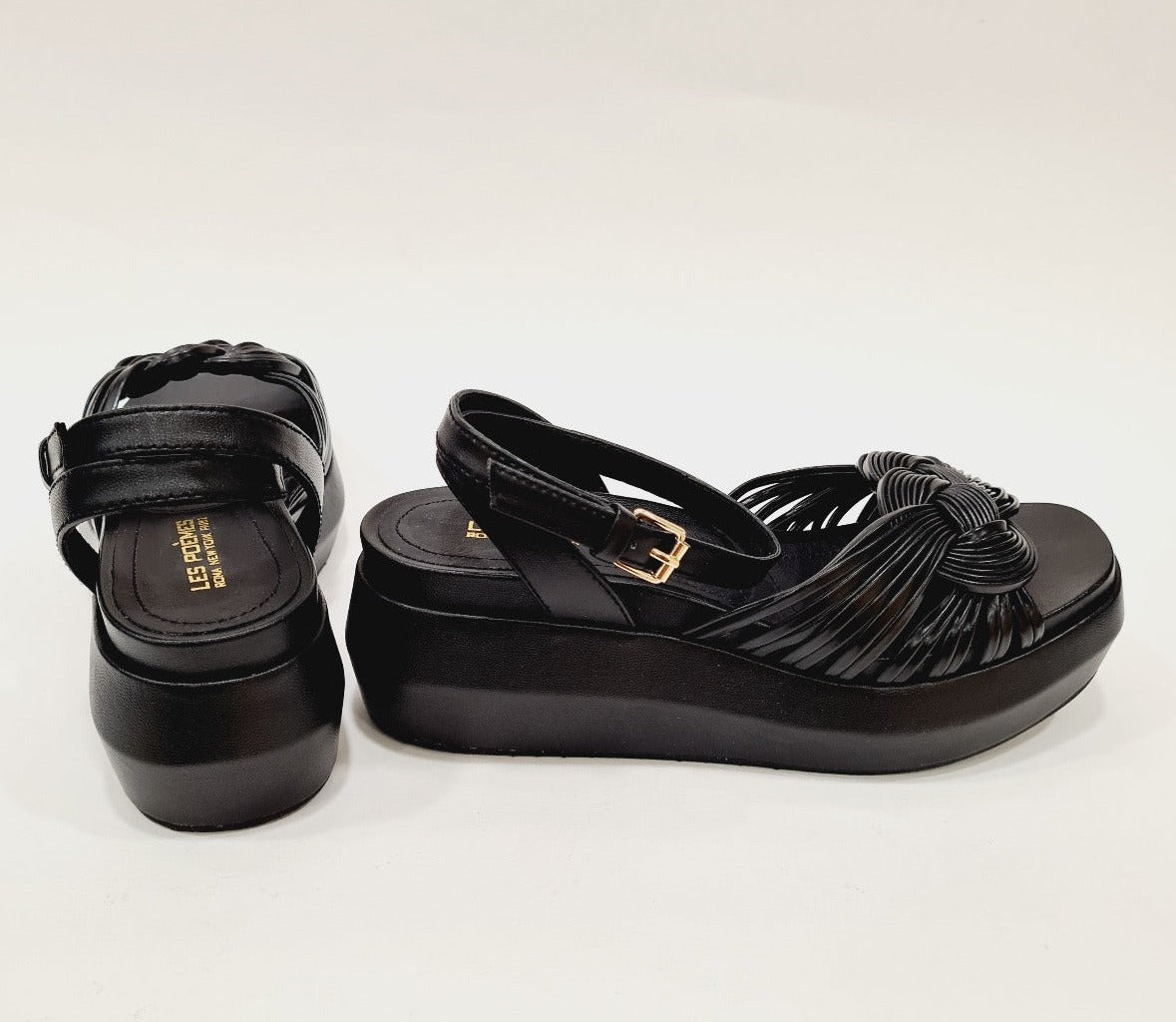 Les Poemes sandalo con cinturino alla caviglia zeppa alta 6 cm. pelle nero rif.753