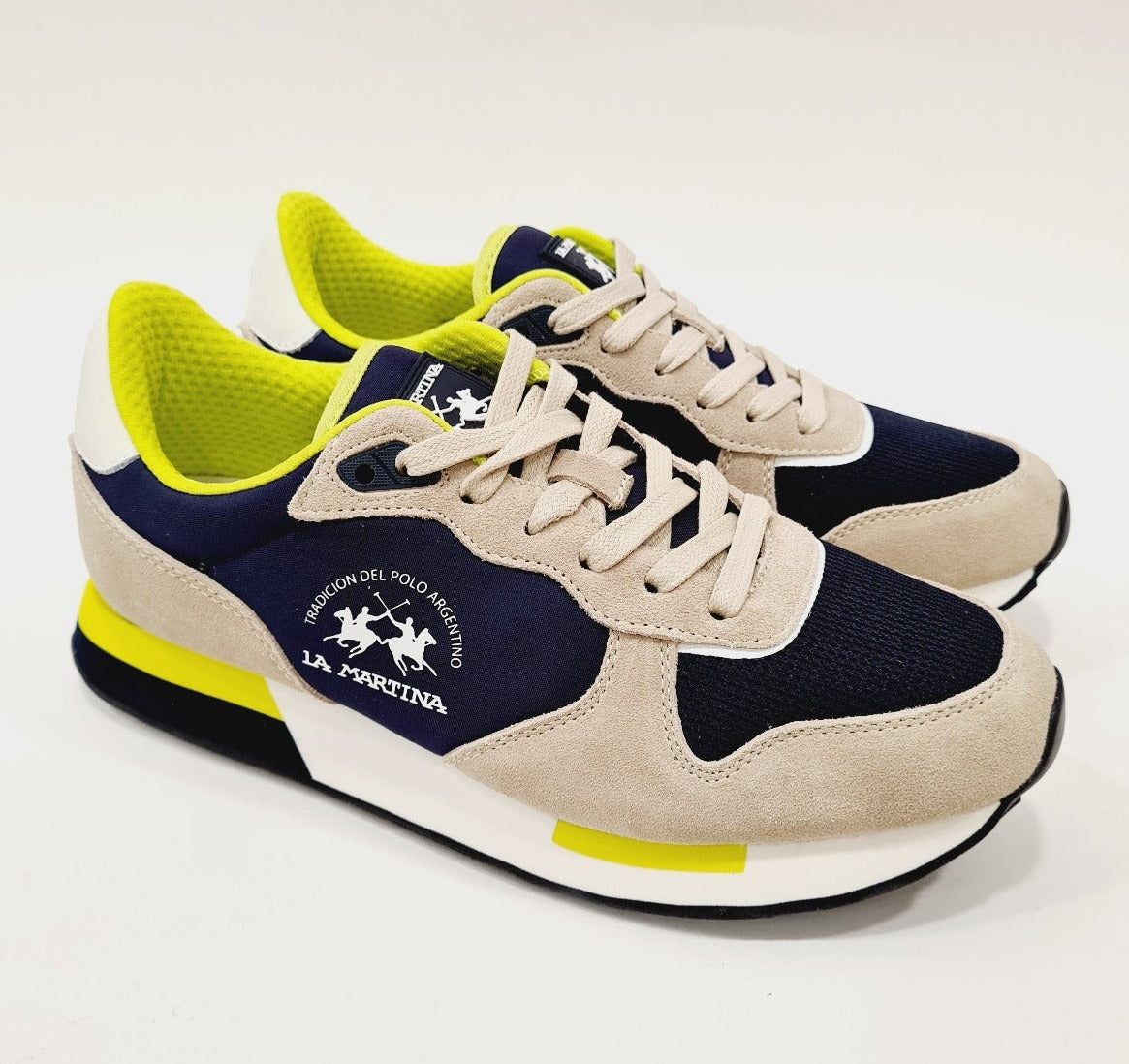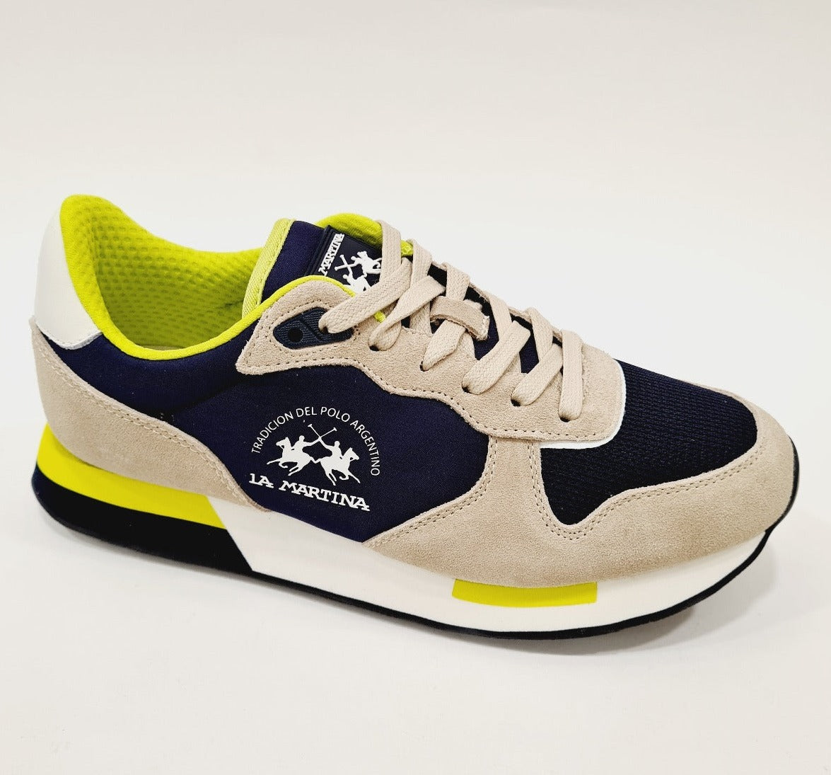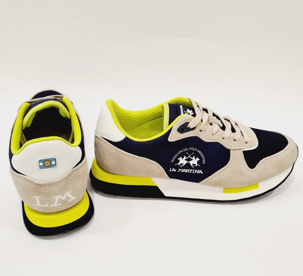 La Martina sneakers fondo gomma 3 cm camoscio e tessuto beige-blu Rif.19