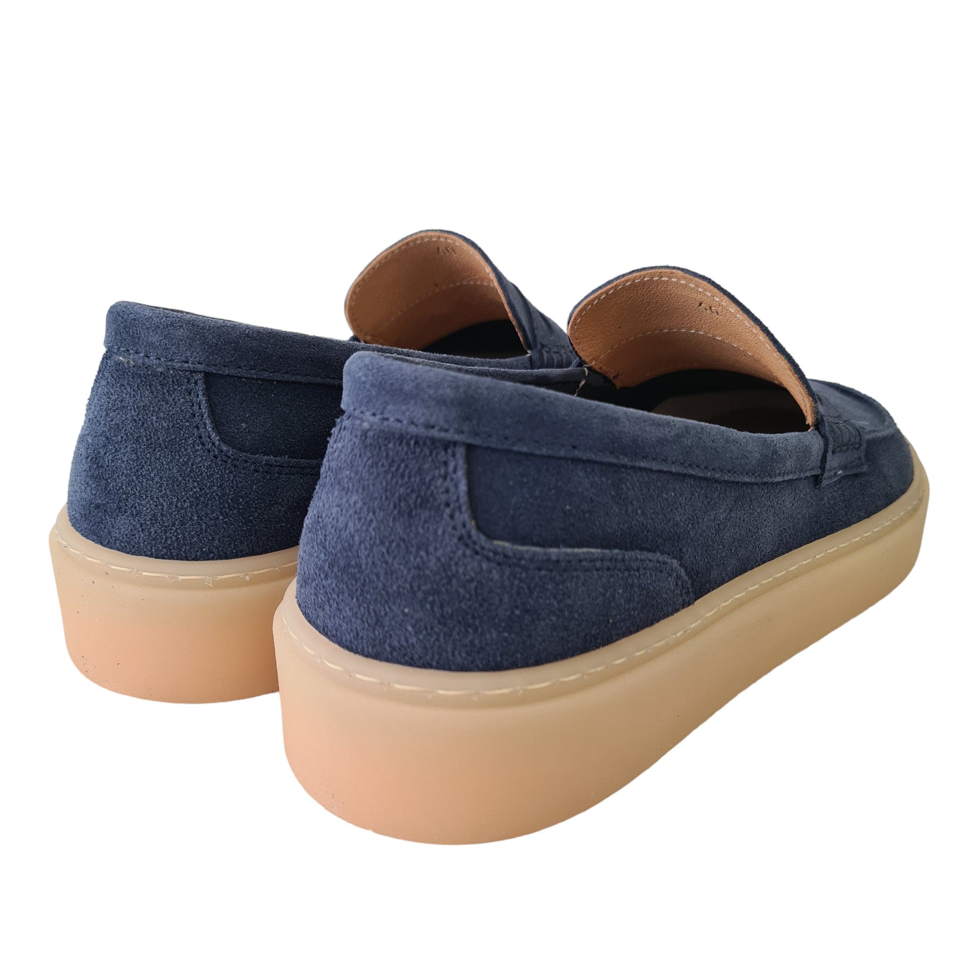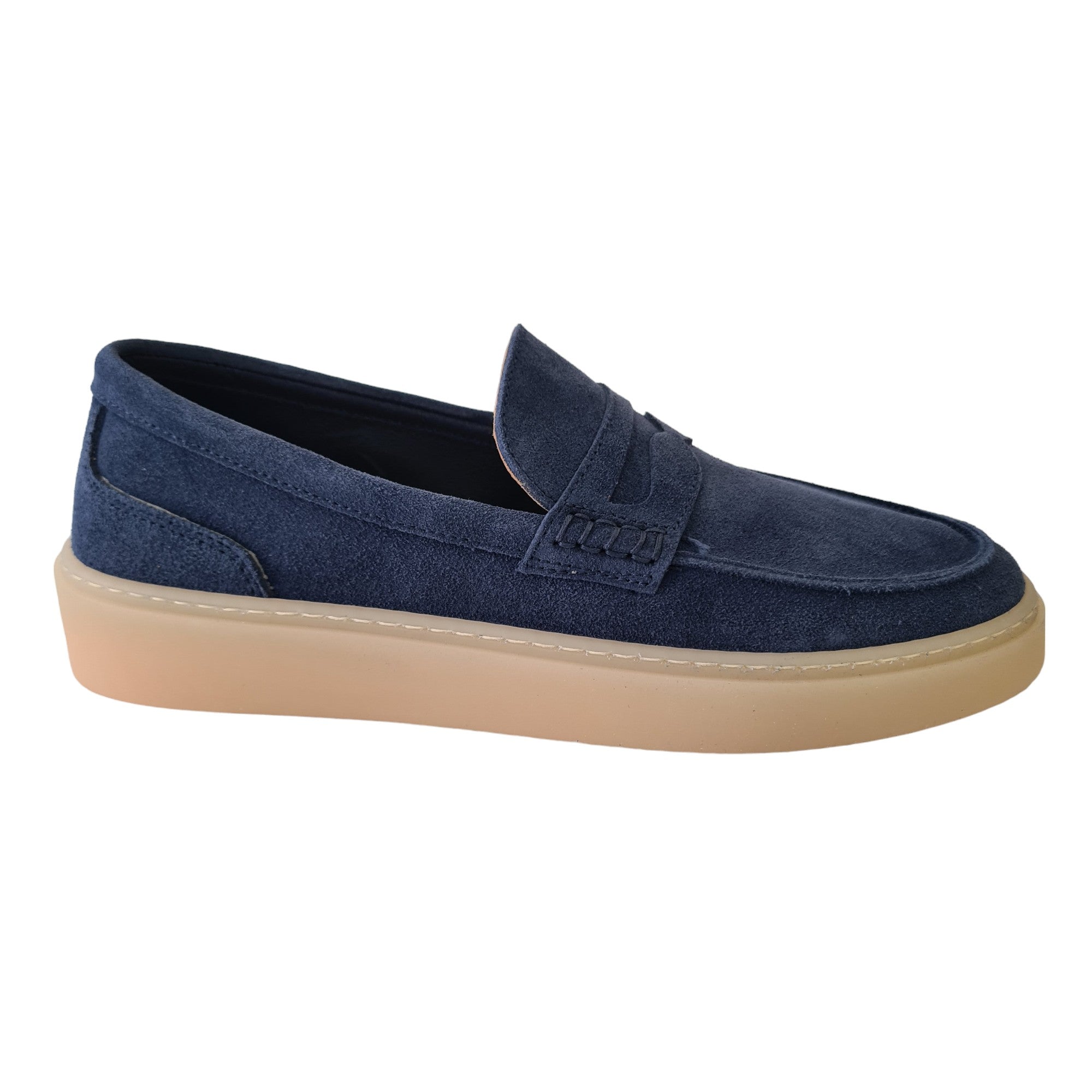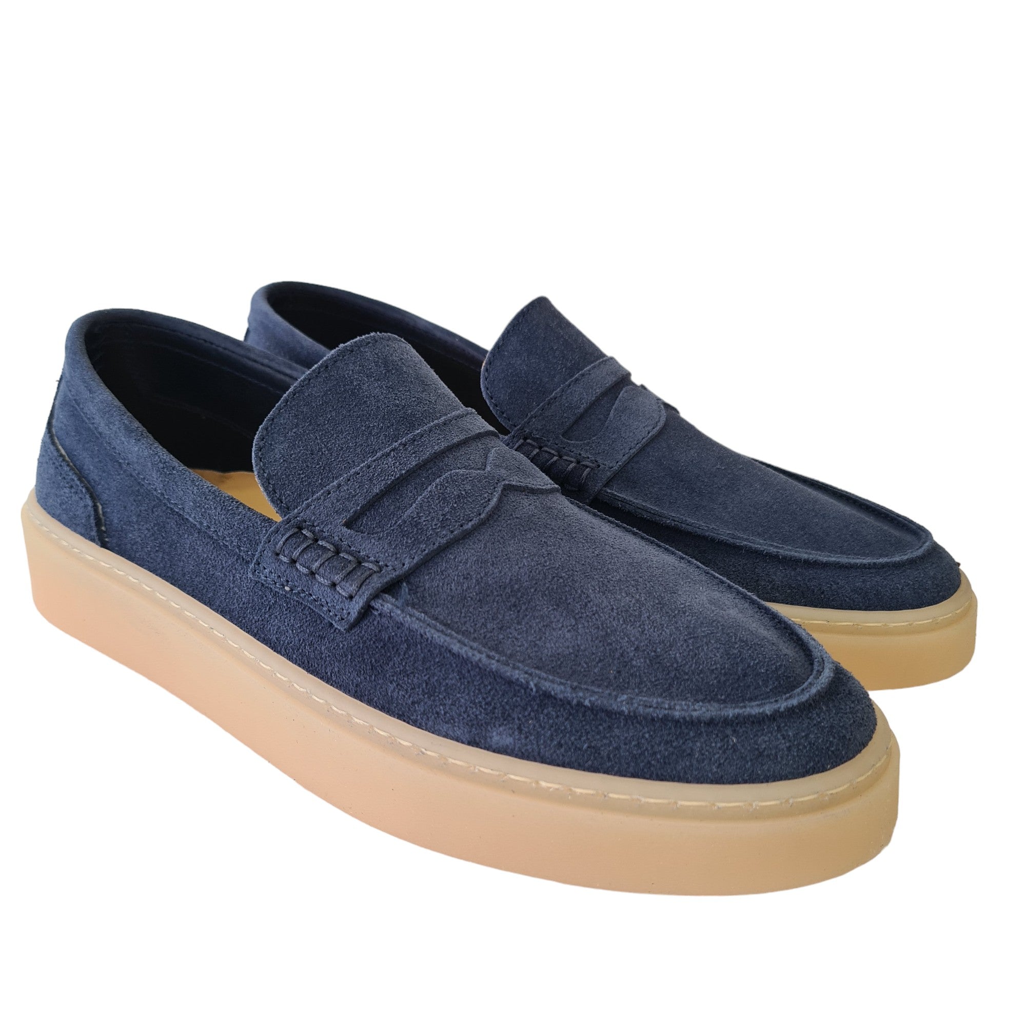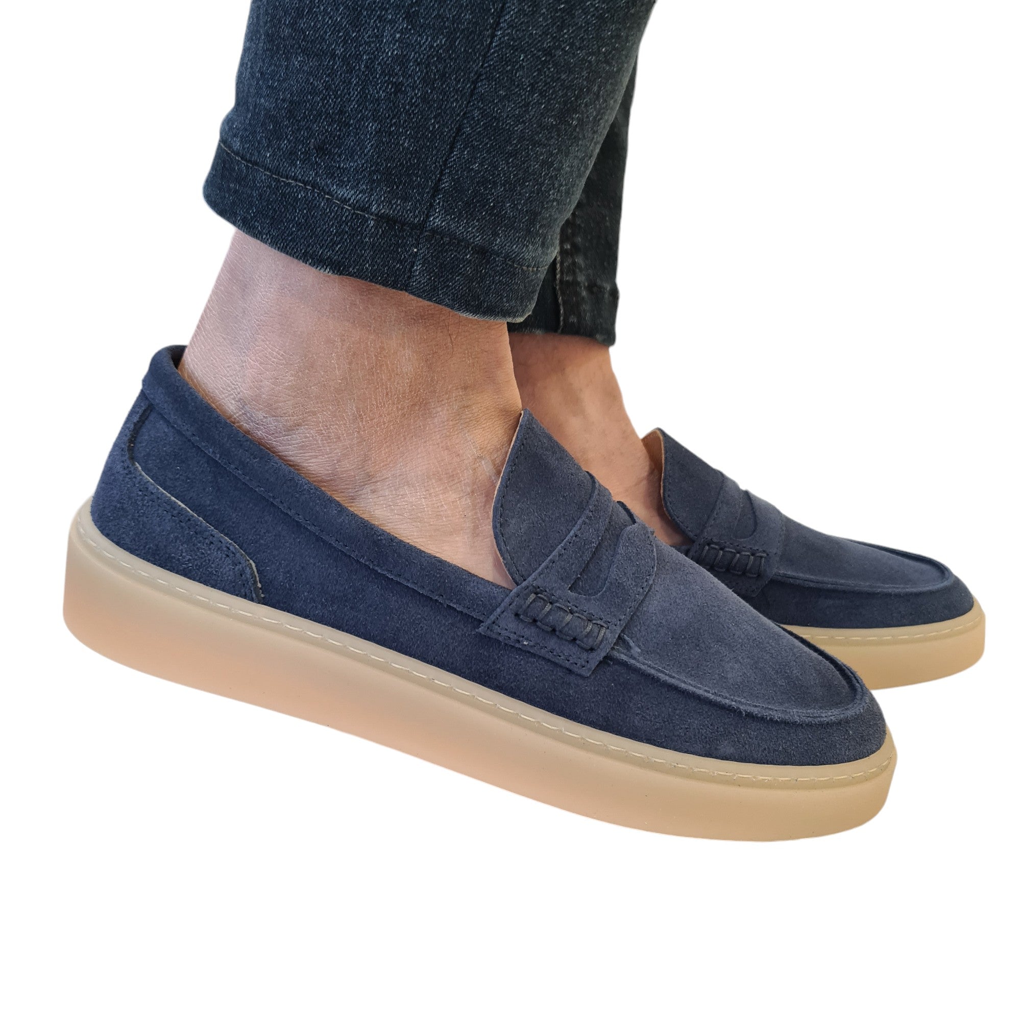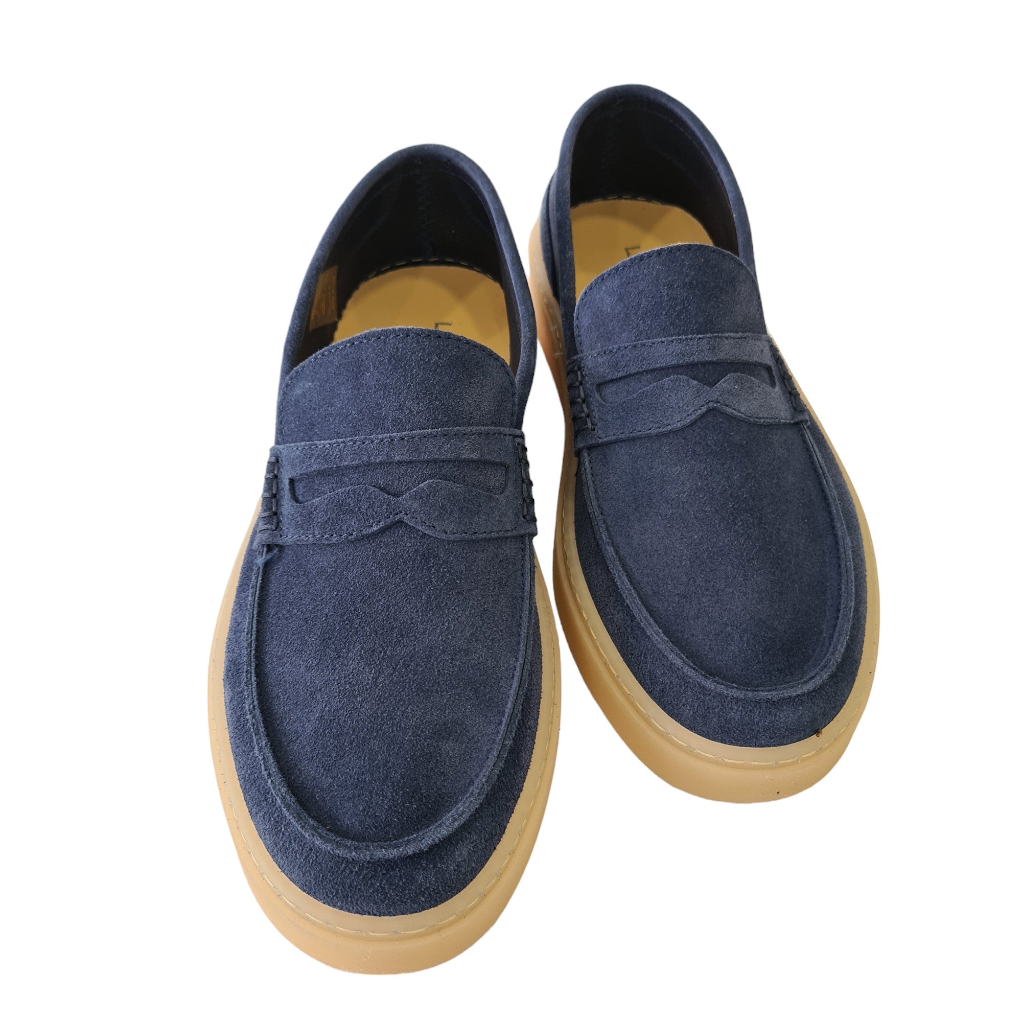 Les Poémes Mocassino Uomo Camoscio Blu fondo gomma alto 4 cm. Rif.102