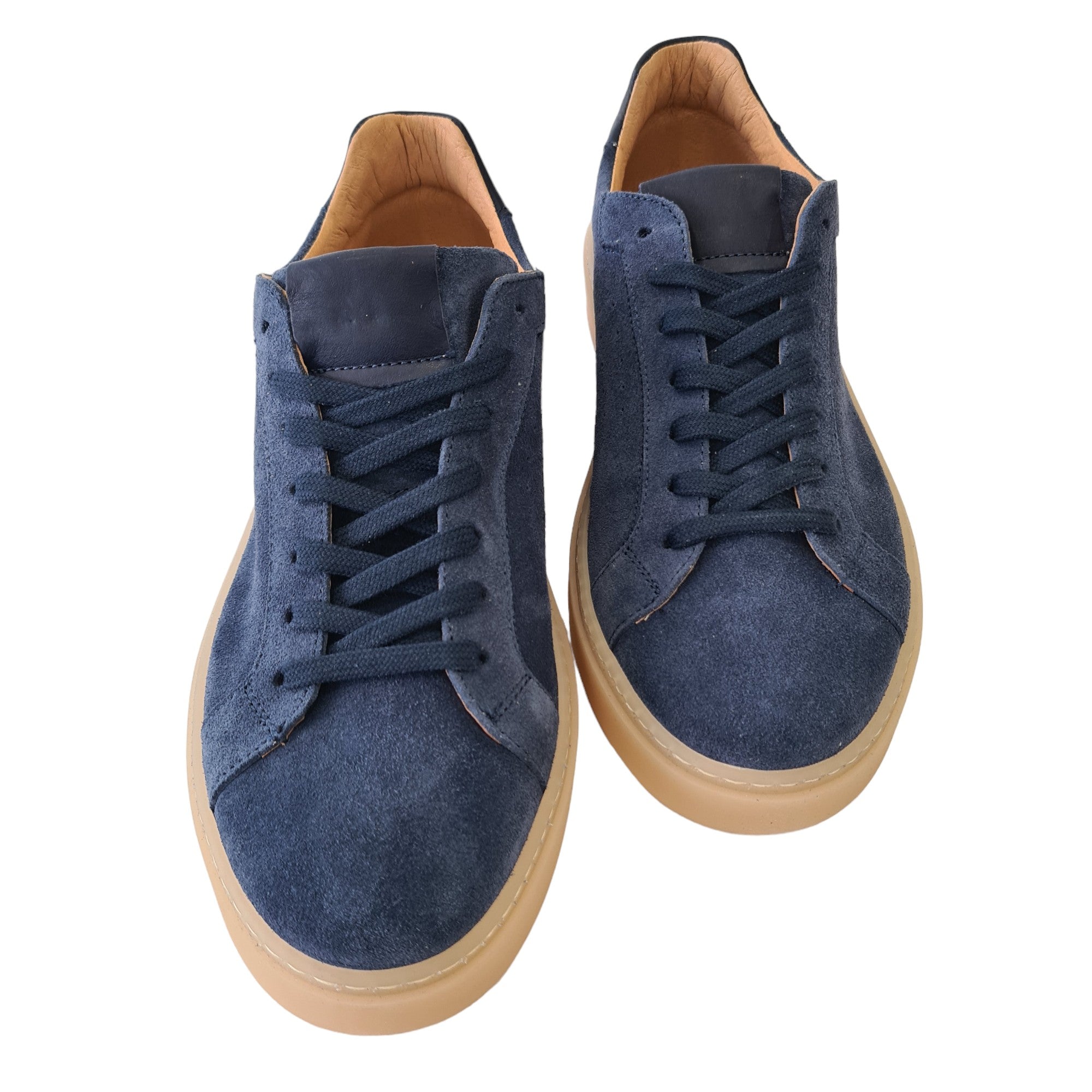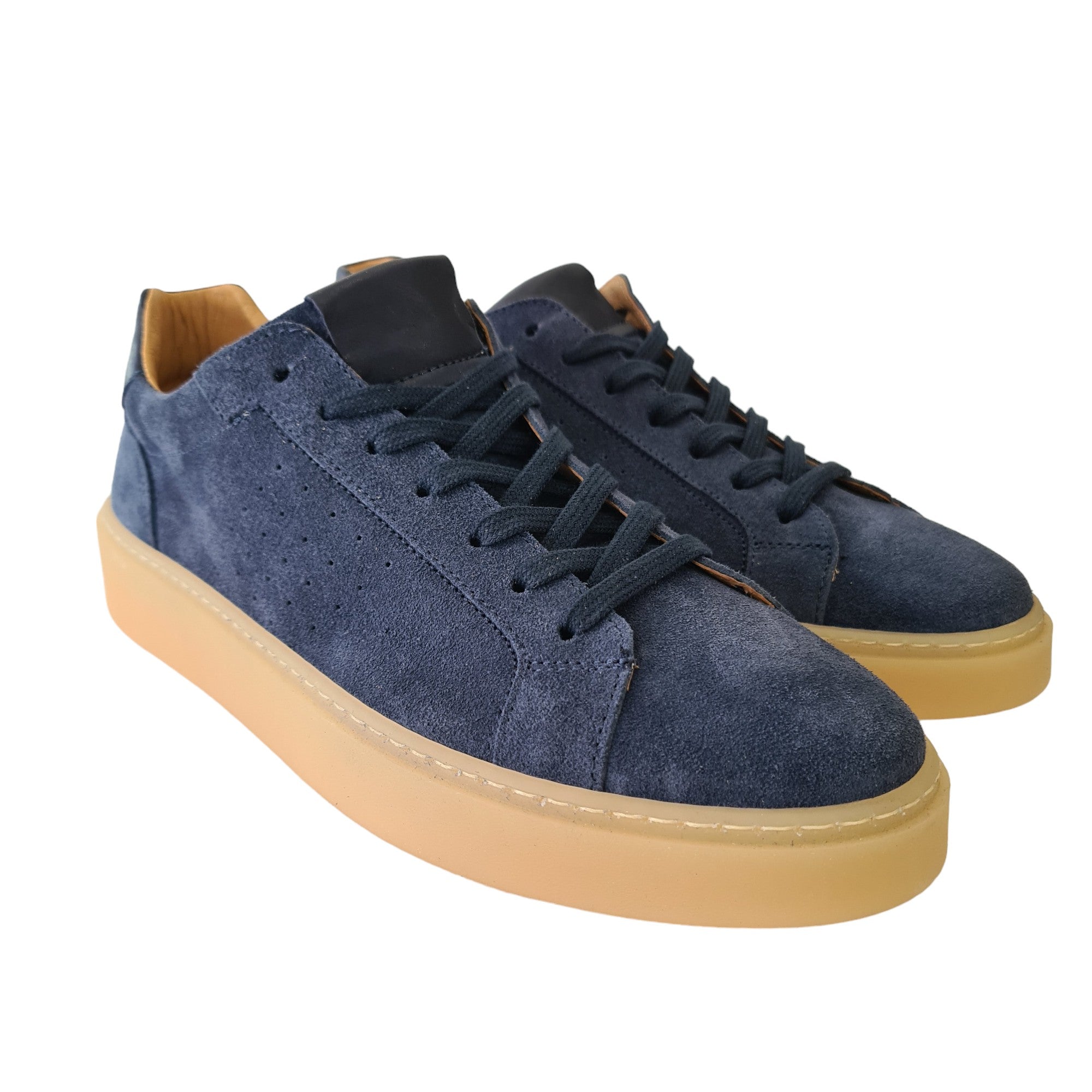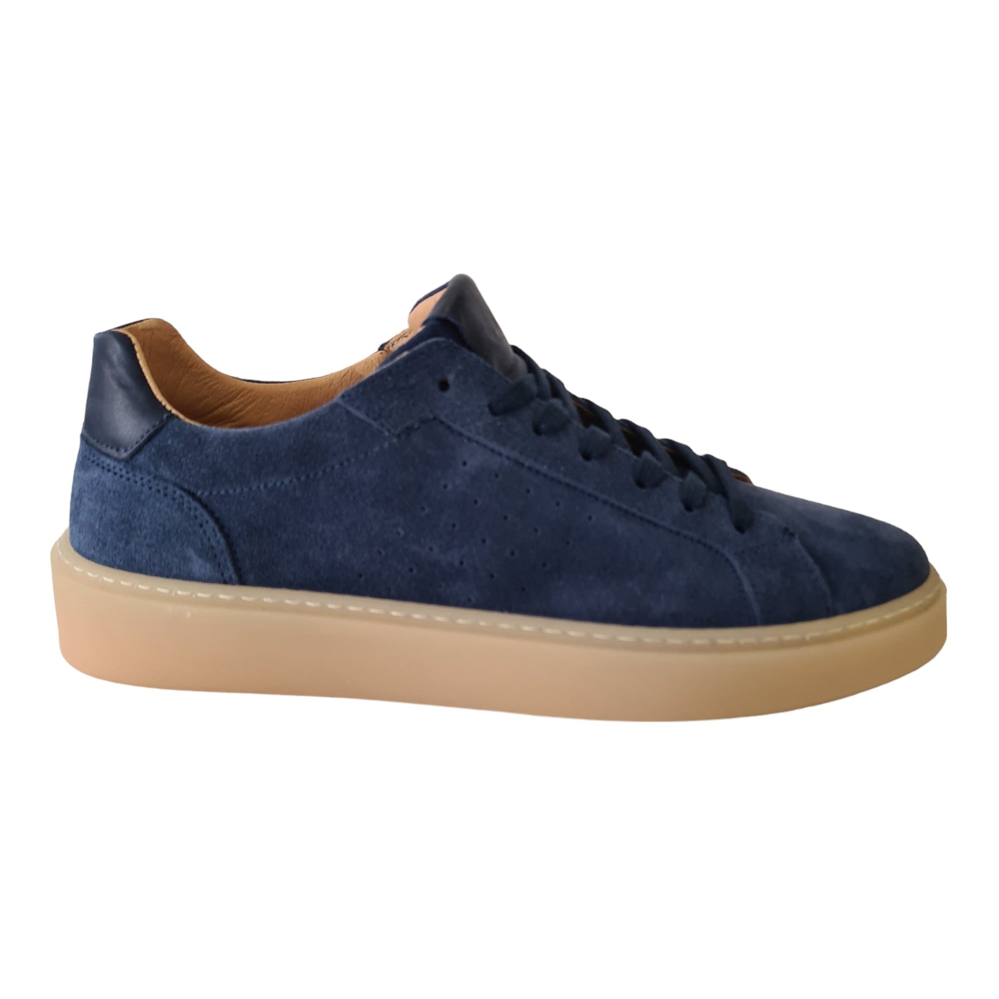 Les-Poémes Sneakers Uomo Camoscio Blu fondo gomma alto 4 cm. Rif.100