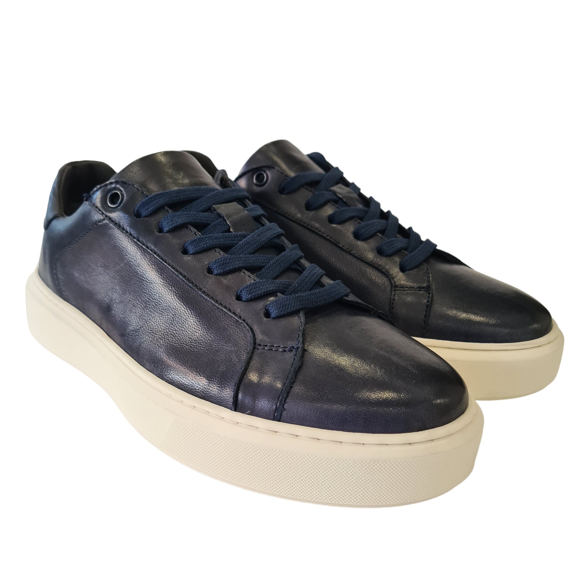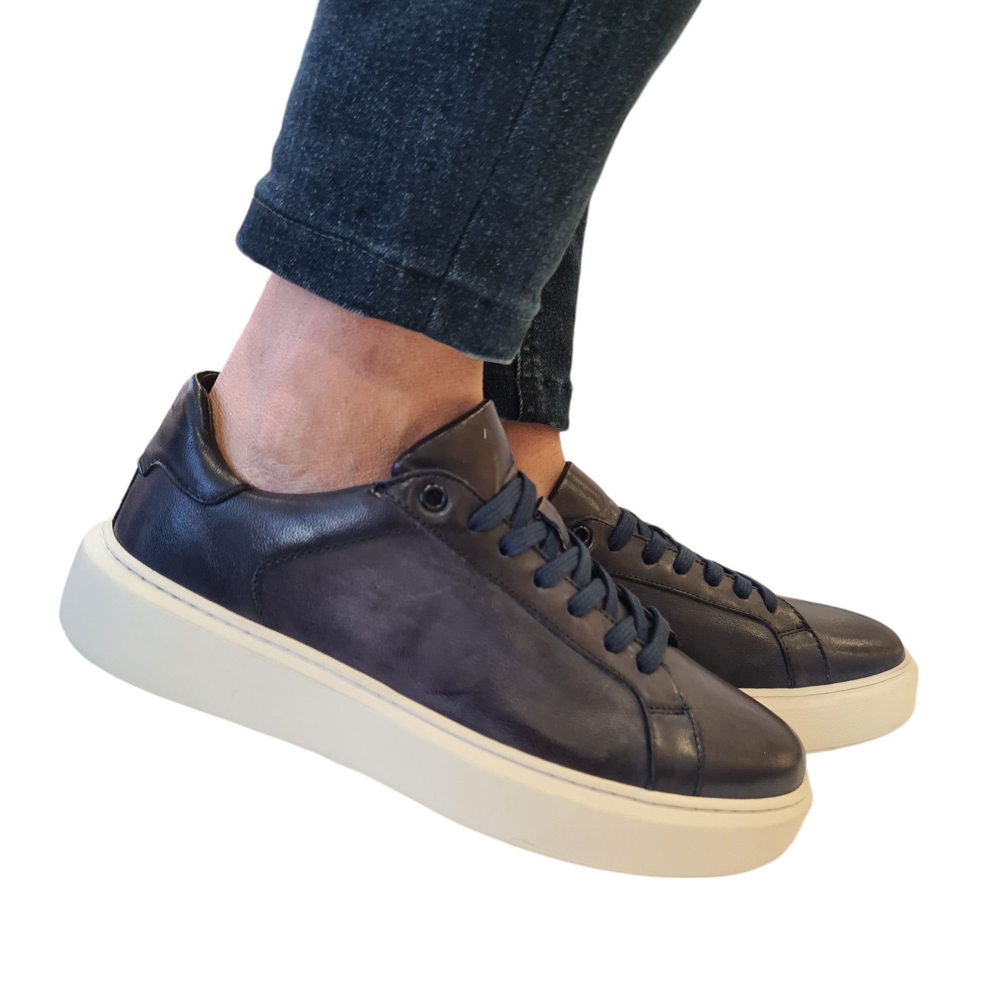 Les Poemes Sneakers Uomo Pelle Blu fondo gomma alto 4 cm. Rif.104