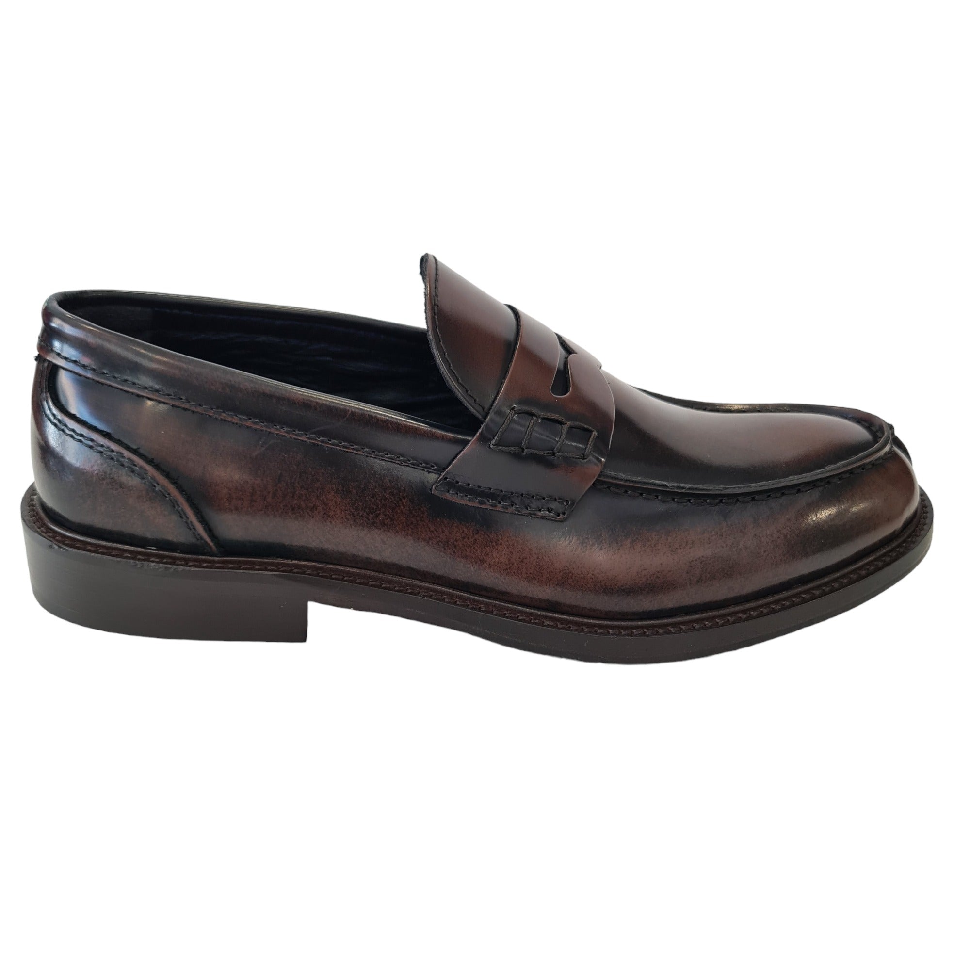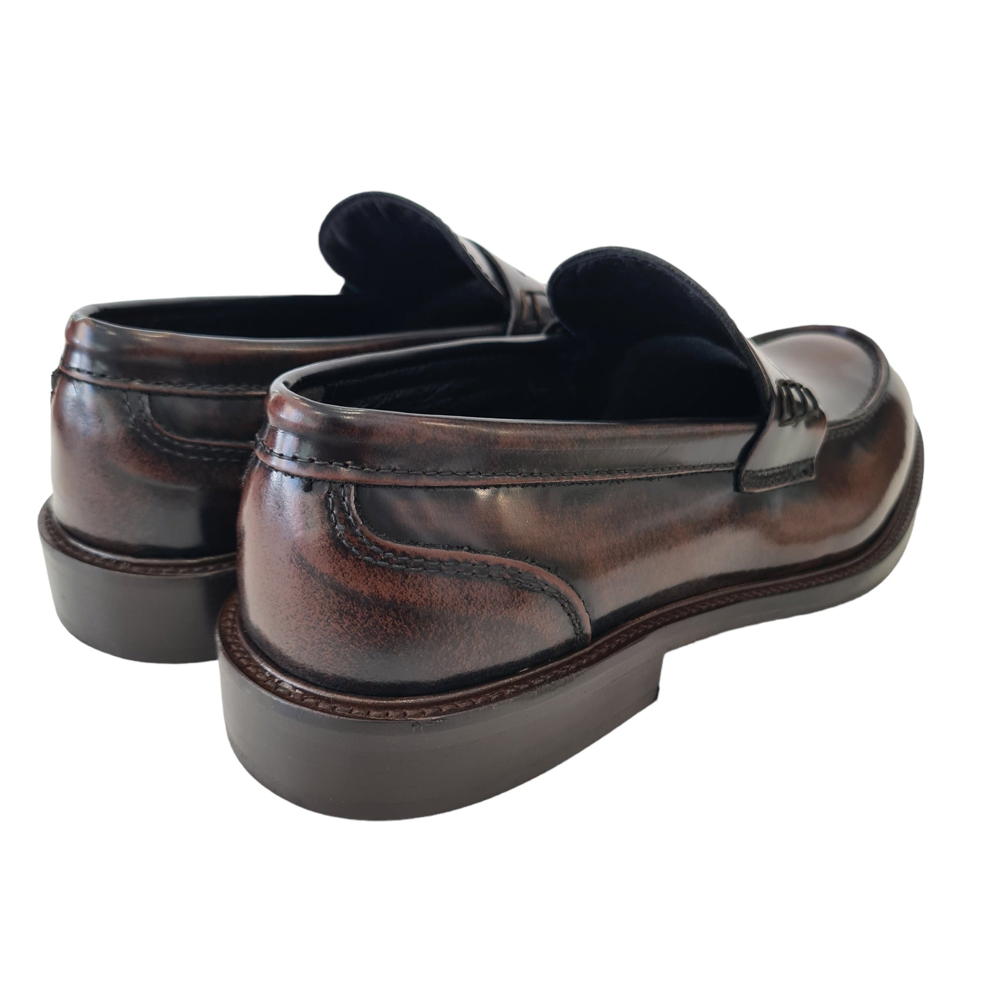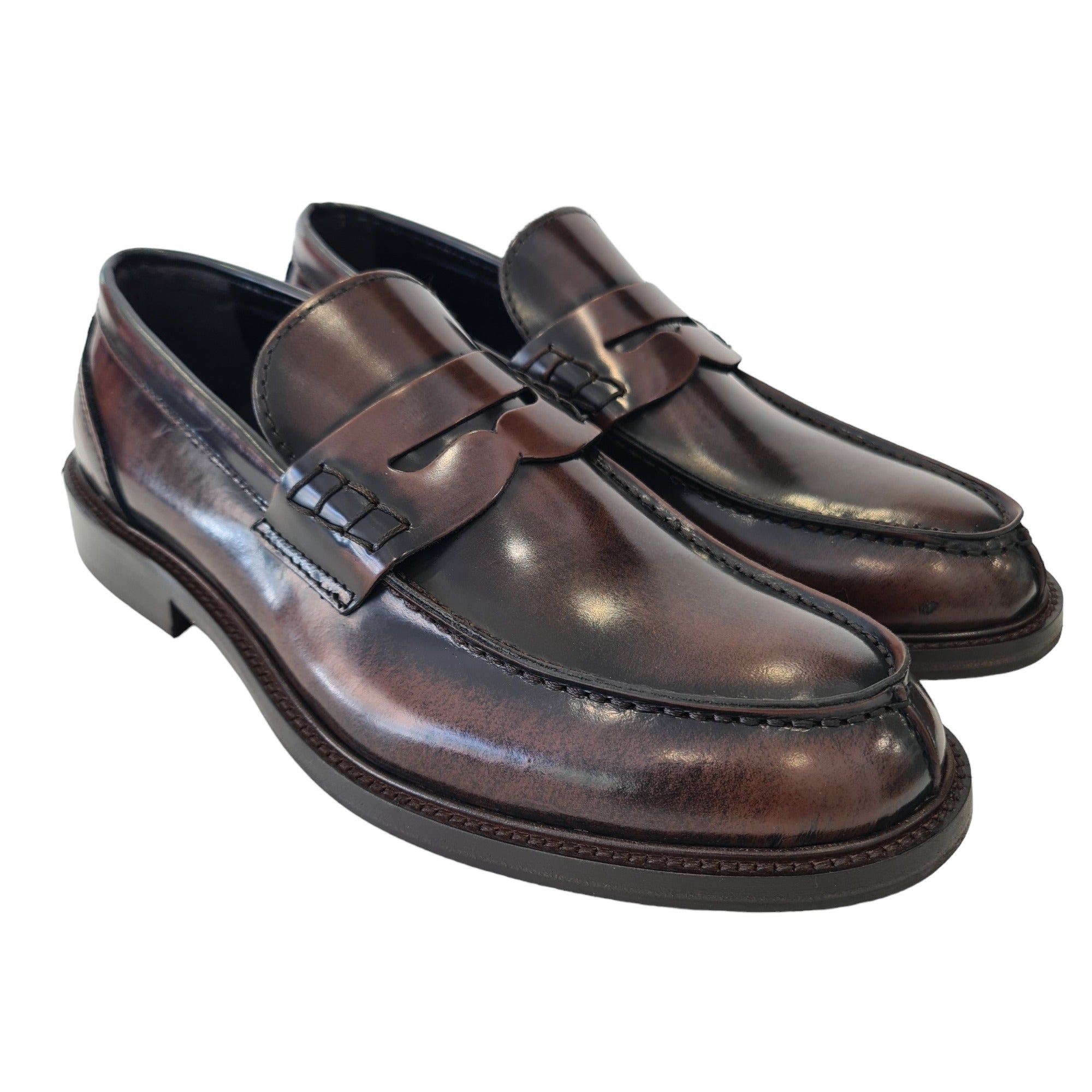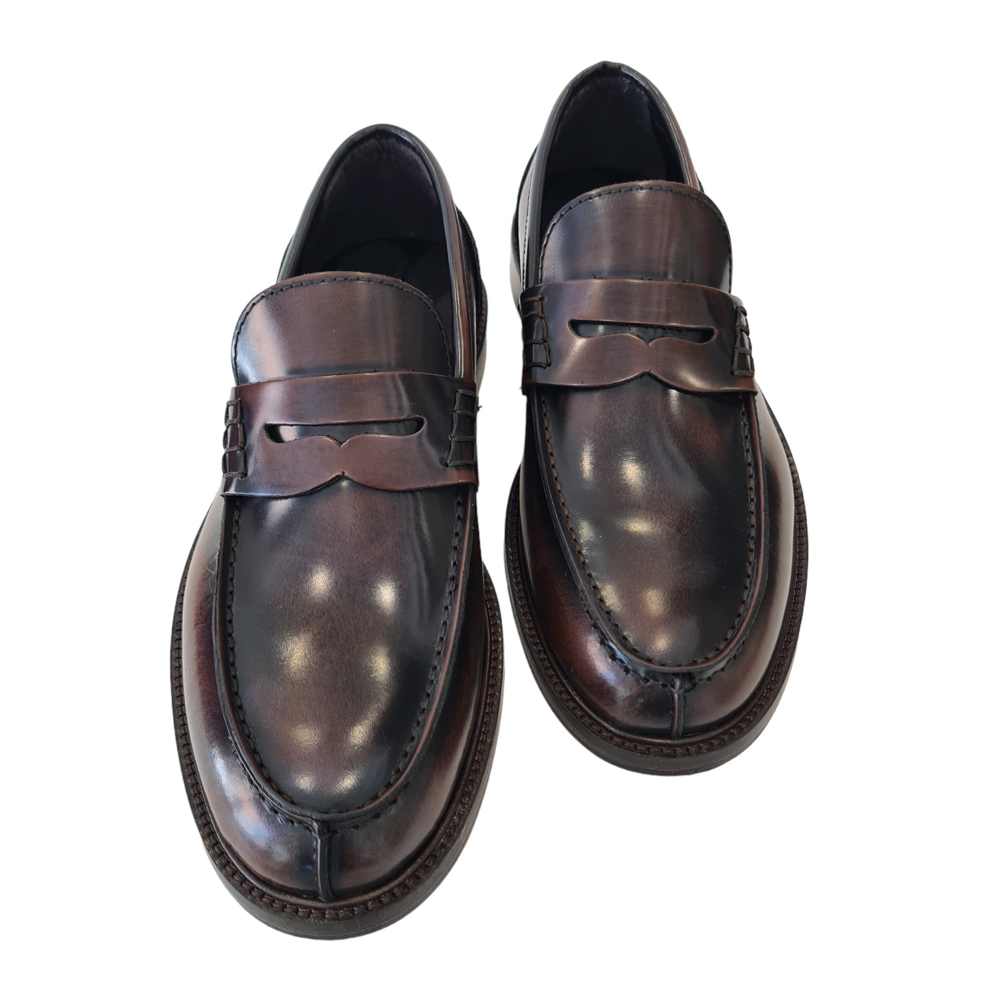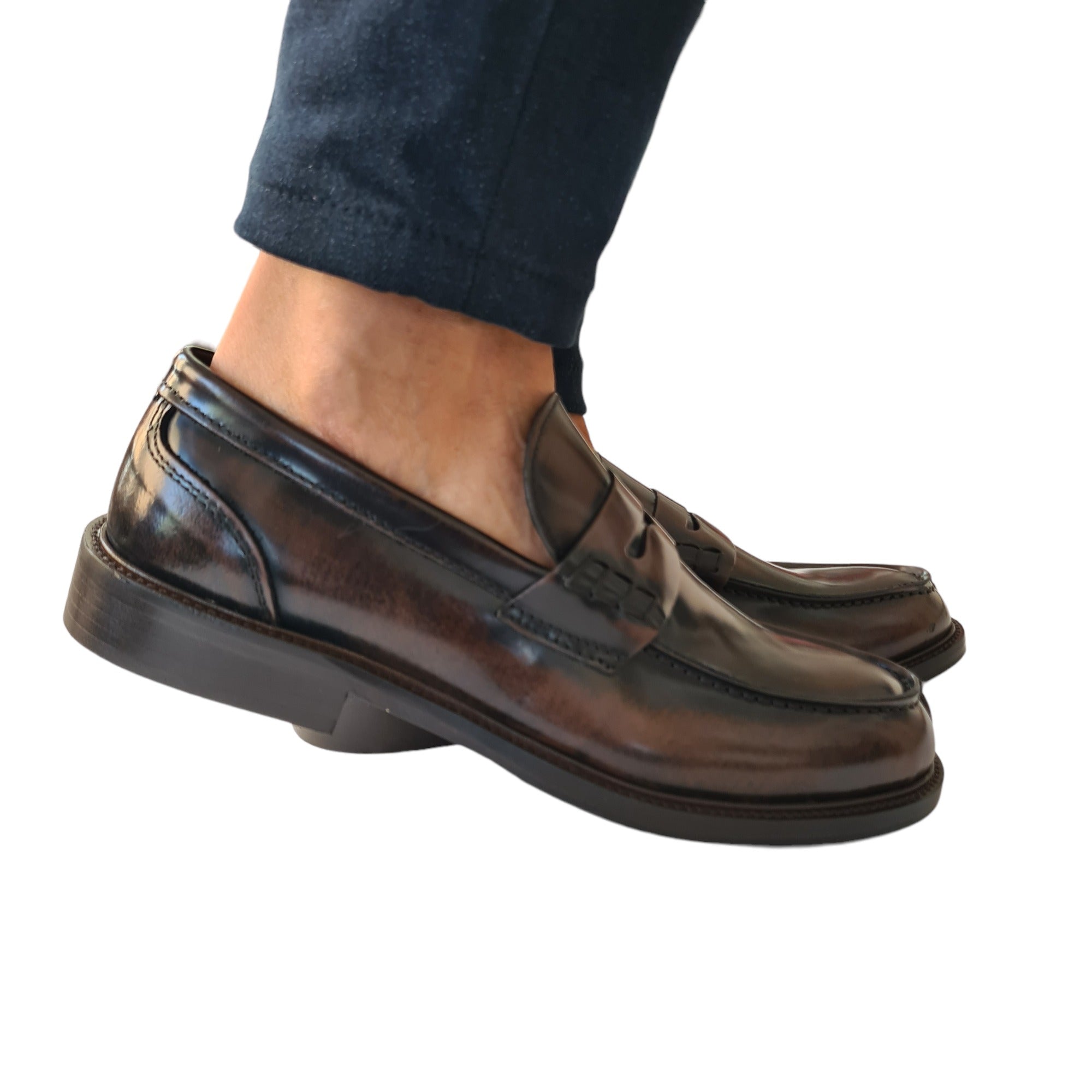 Les Poemes Uomo Mocassino fondo cuoio 1/2 piantina Pelle Spazzolata Testa di Moro Rif.84