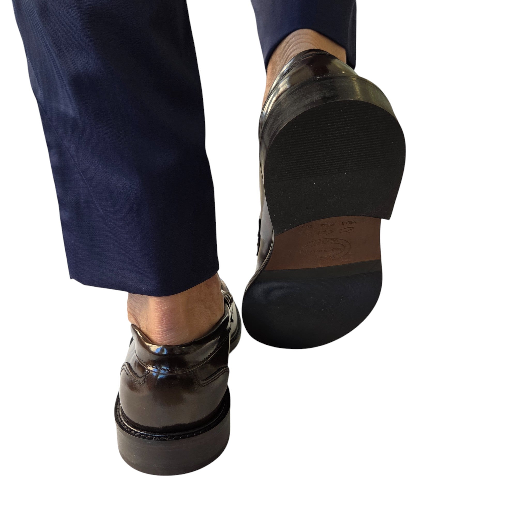 Les Poemes Uomo Mocassino fondo mezza piantina Pelle Spazzolata Testa di Moro Rif.123
