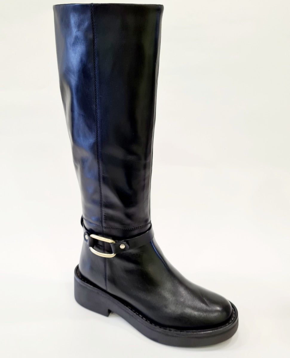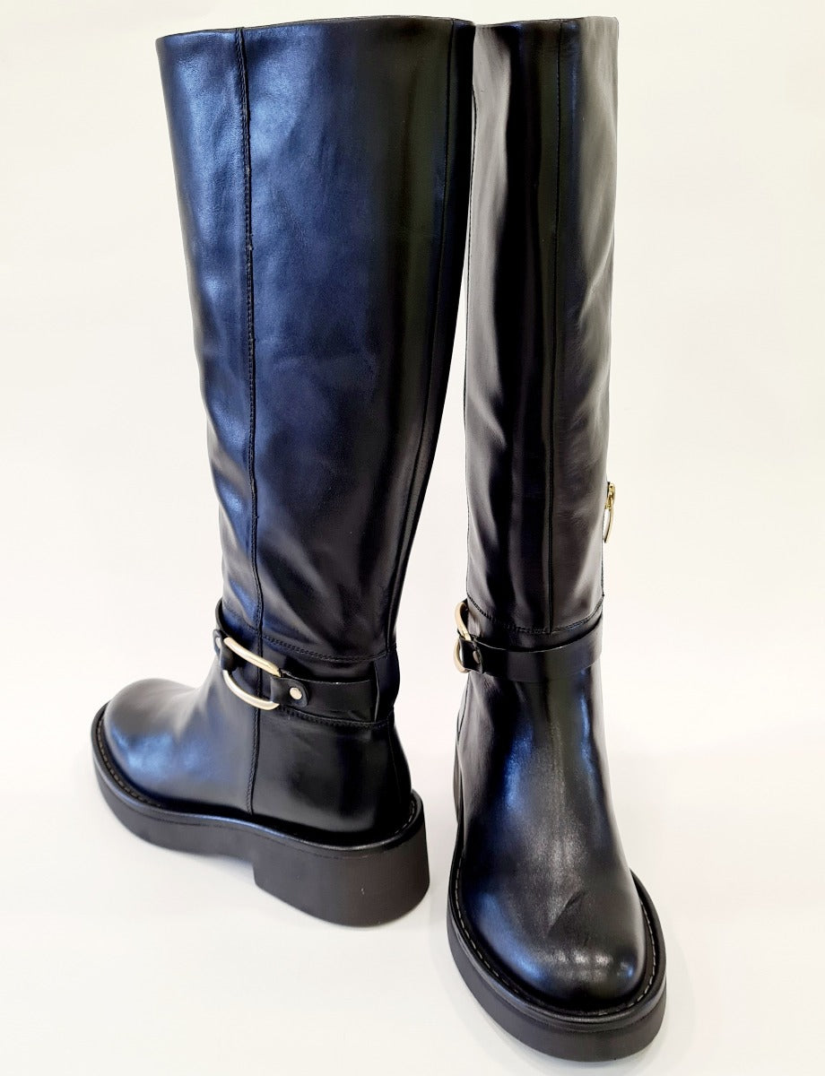 Les Poèmes stivale cavallerizzo accessorio bronzo fondo gomma tacco alto alto 5 cm pelle Black rif.744
