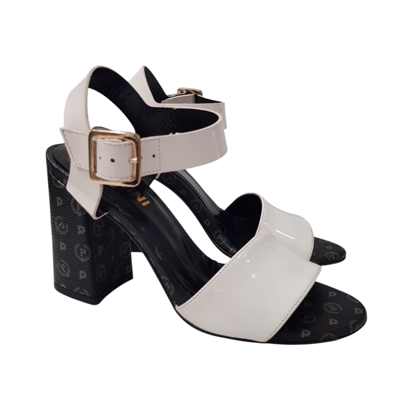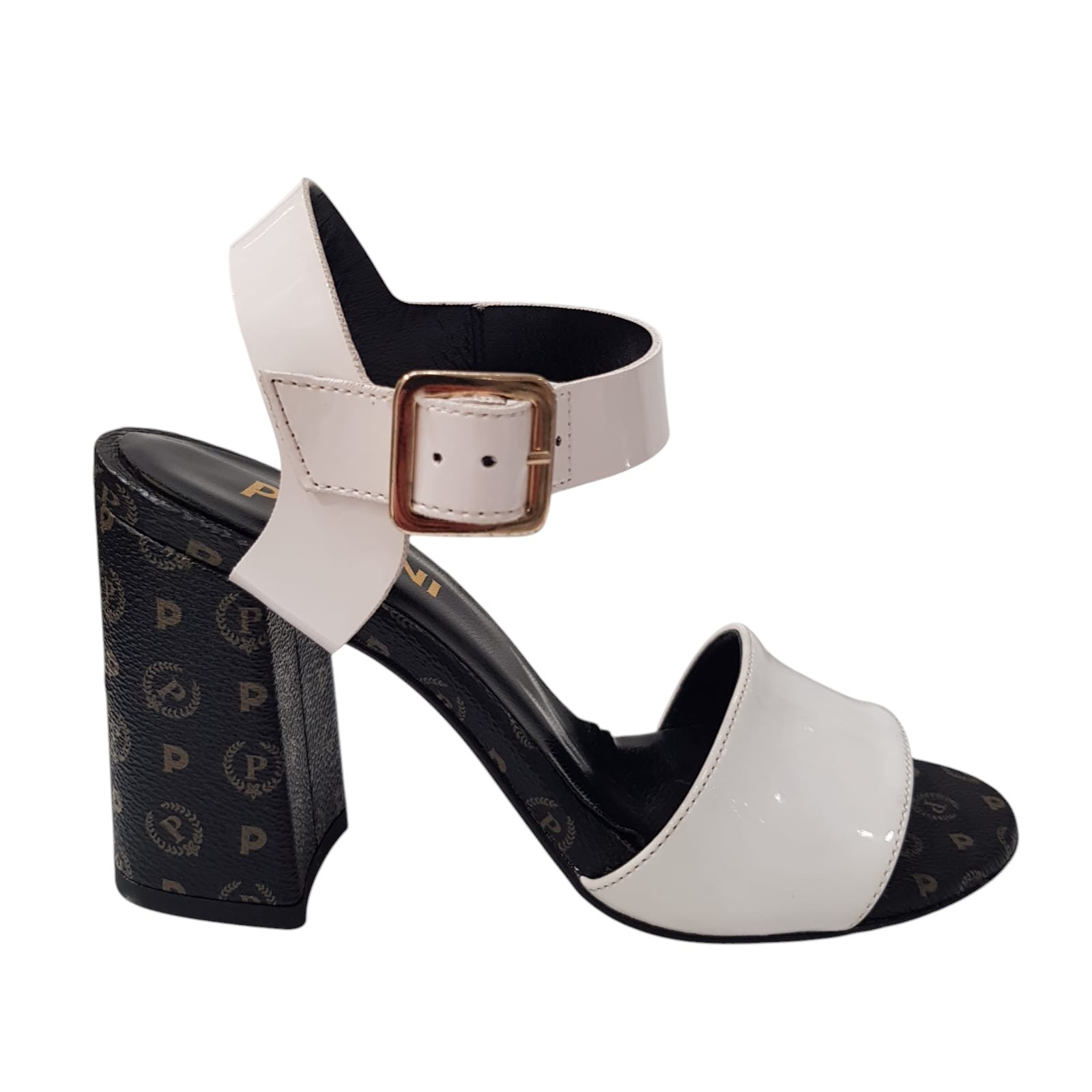 Pollini Sandalo Donna Heritage Pelle Nero e Pelle Naplak Bianco tacco 9 cm. Rif.522
