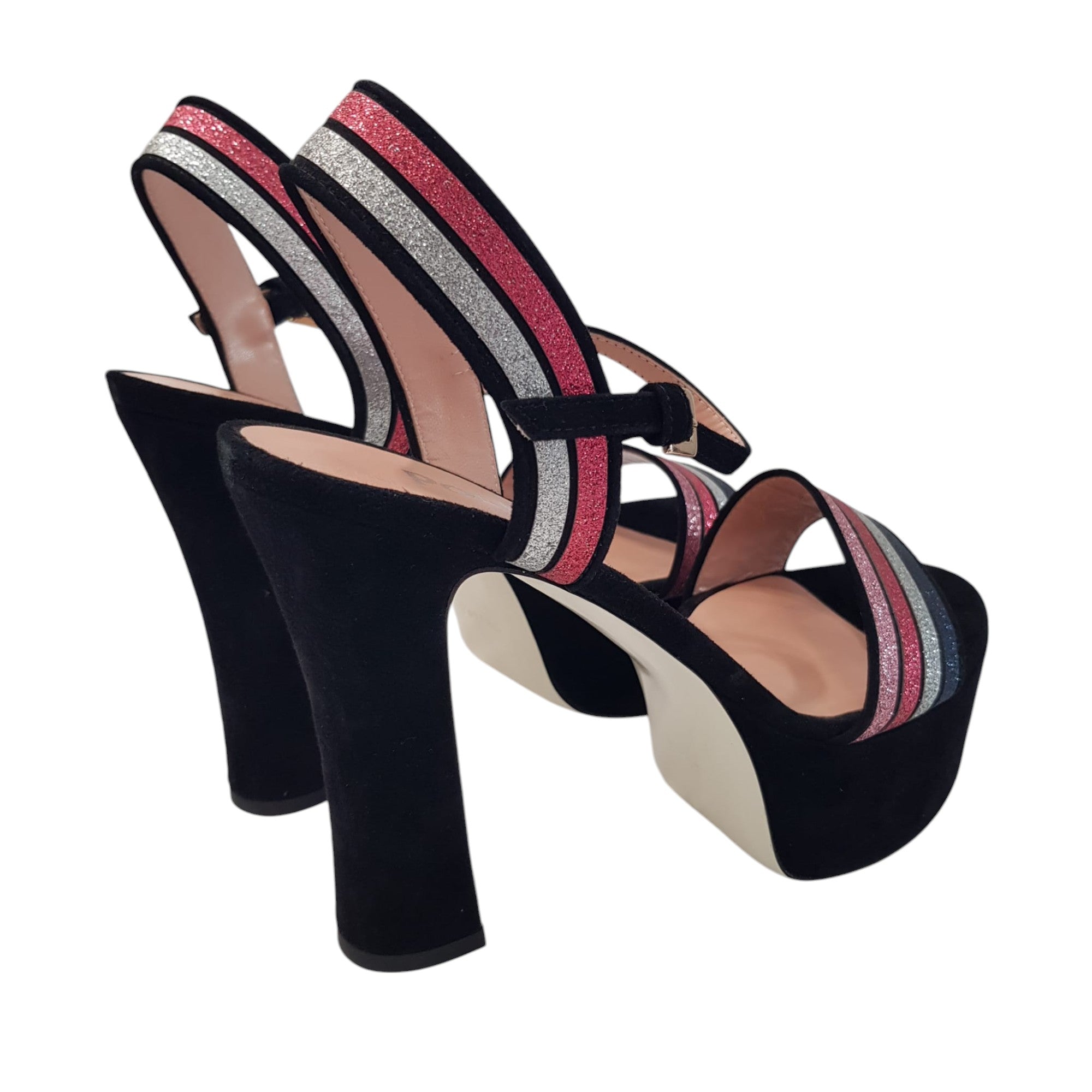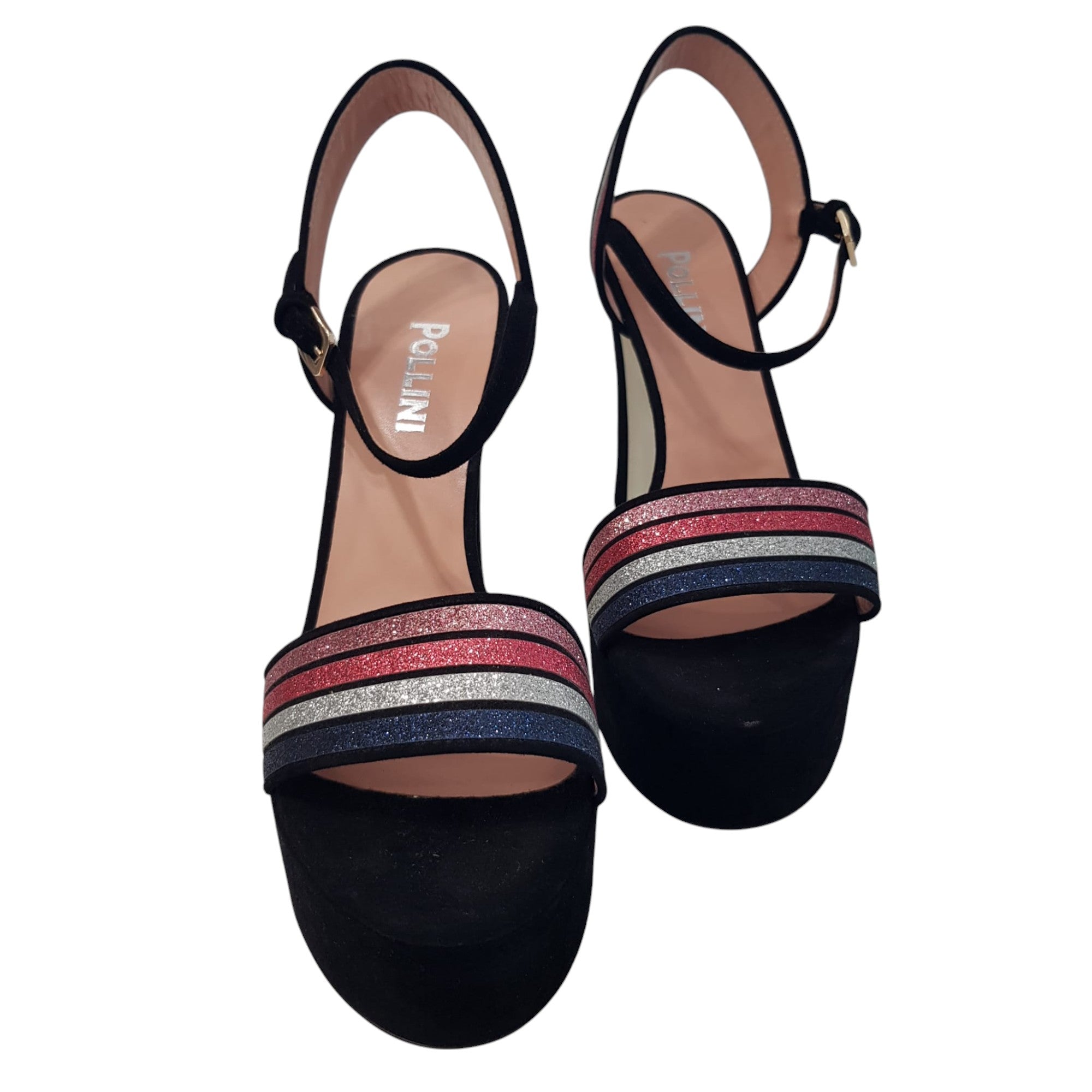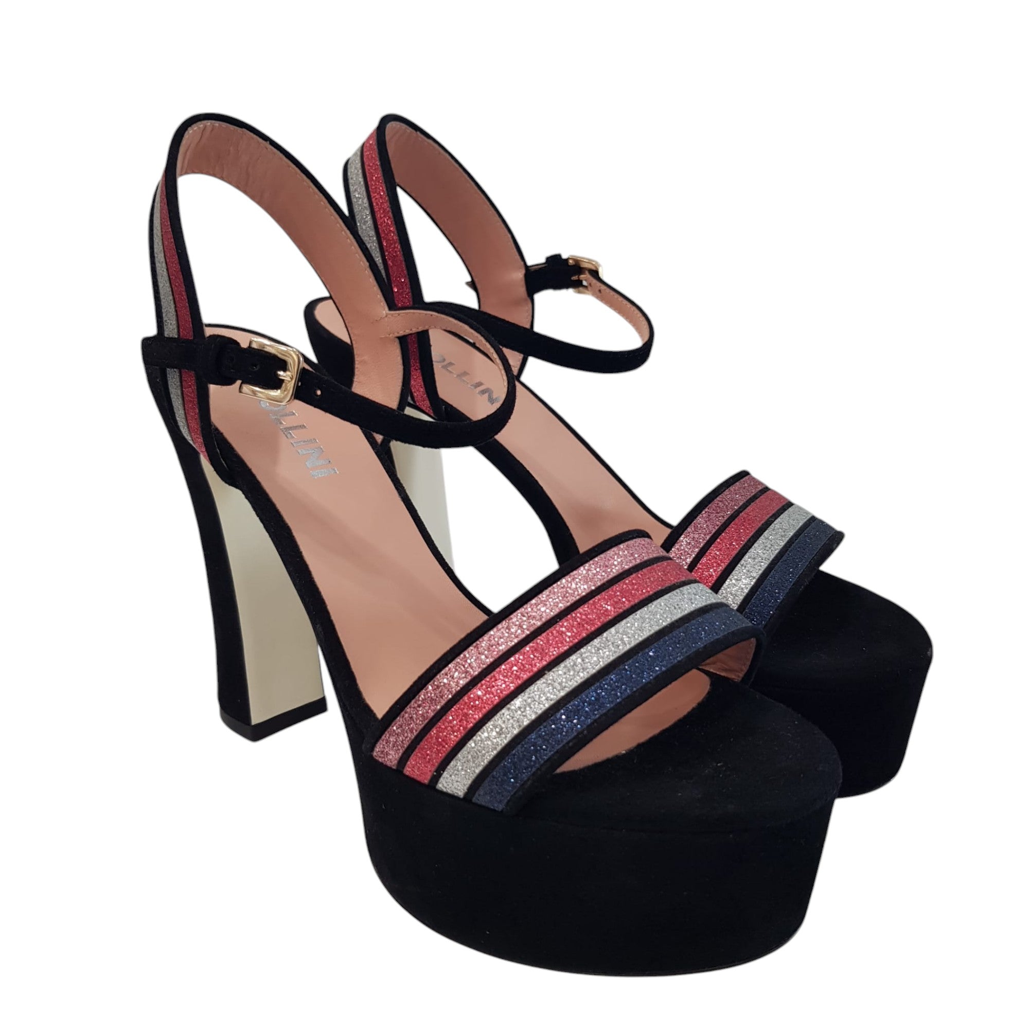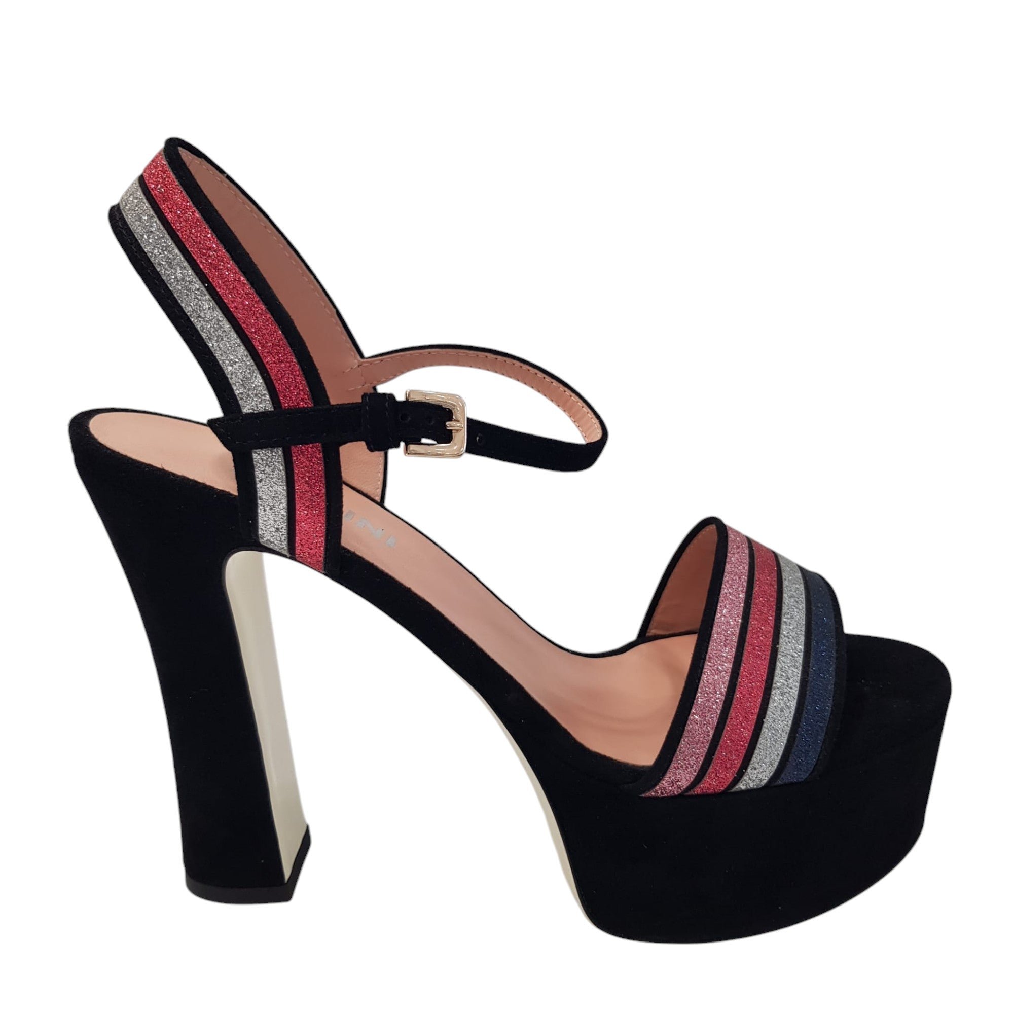 Pollini Sandalo Donna Camoscio Nero Glitter Argento-Rosa-Blu tacco alto 13 cm. plateau 5 cm. Rif.539