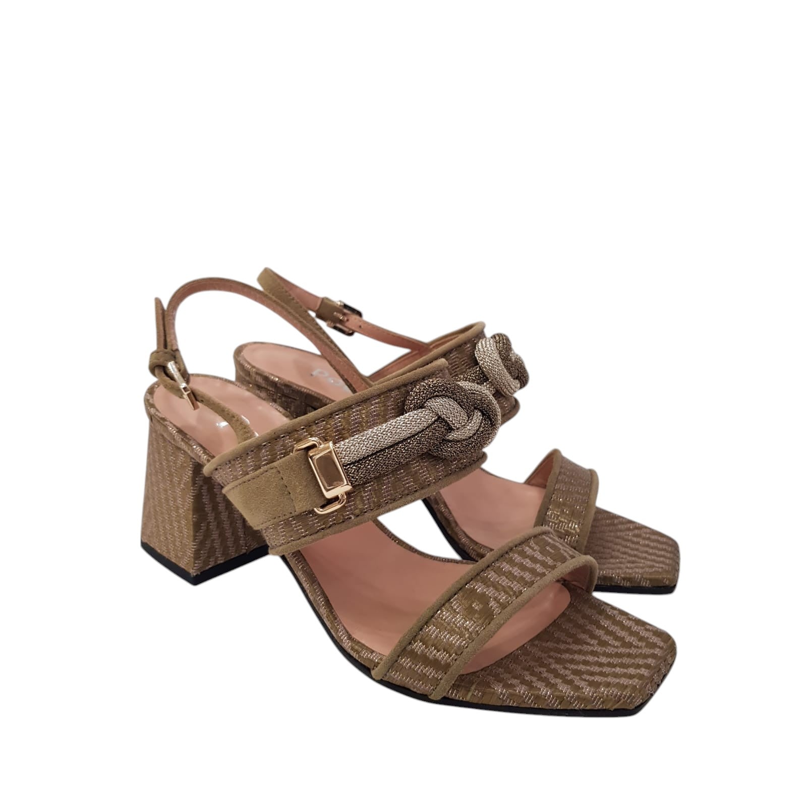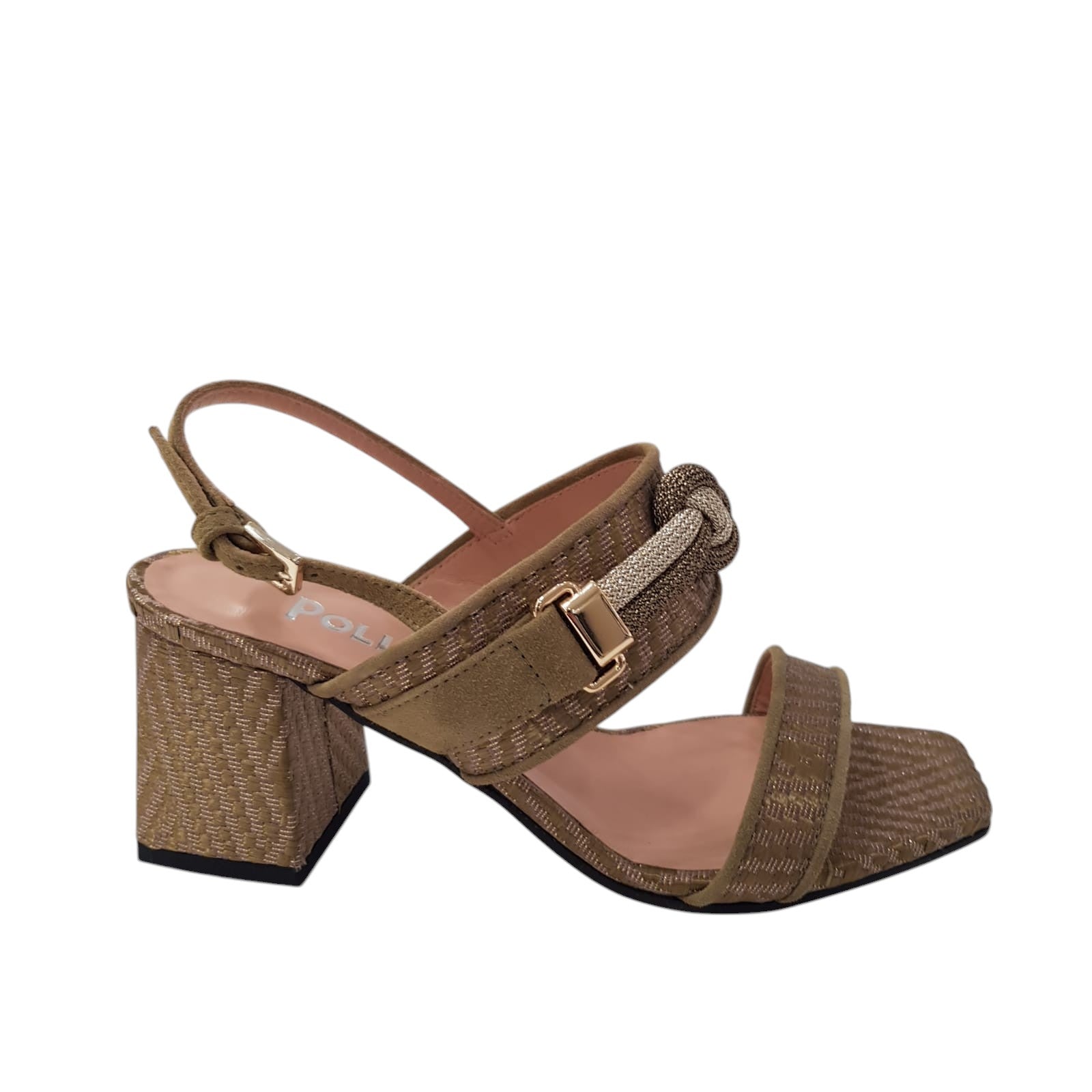 Pollini Sandalo Donna  Camoscio e Tessuto Verde tacco alto 7 cm. Rif.531