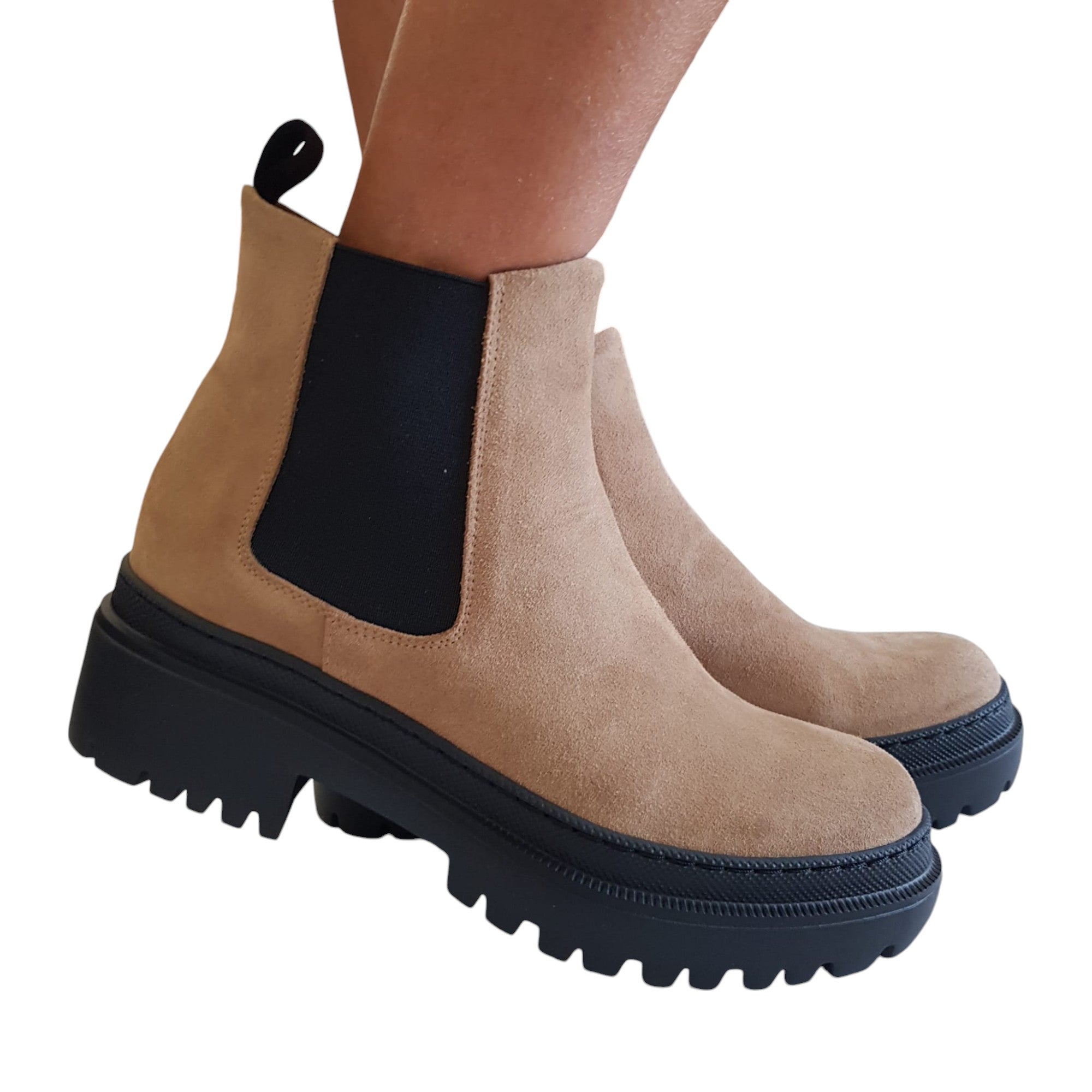 Pollini Stivaletto Beatles Donna fondo gomma alto 5 cm Camoscio Beige Rif.508