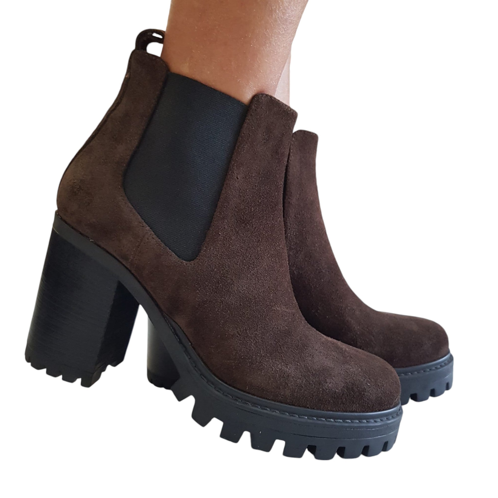 Pollini Stivaletto Beatles Donna fondo gomma alto 10 cm Camoscio Testa di Moro Rif.513
