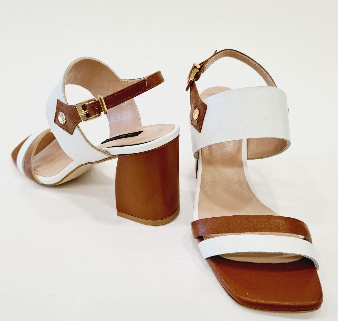 Andrea Pinto sandalo tacco alto 8,5 cm. pelle bianco-cuoio art.526