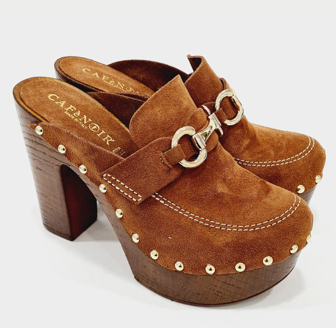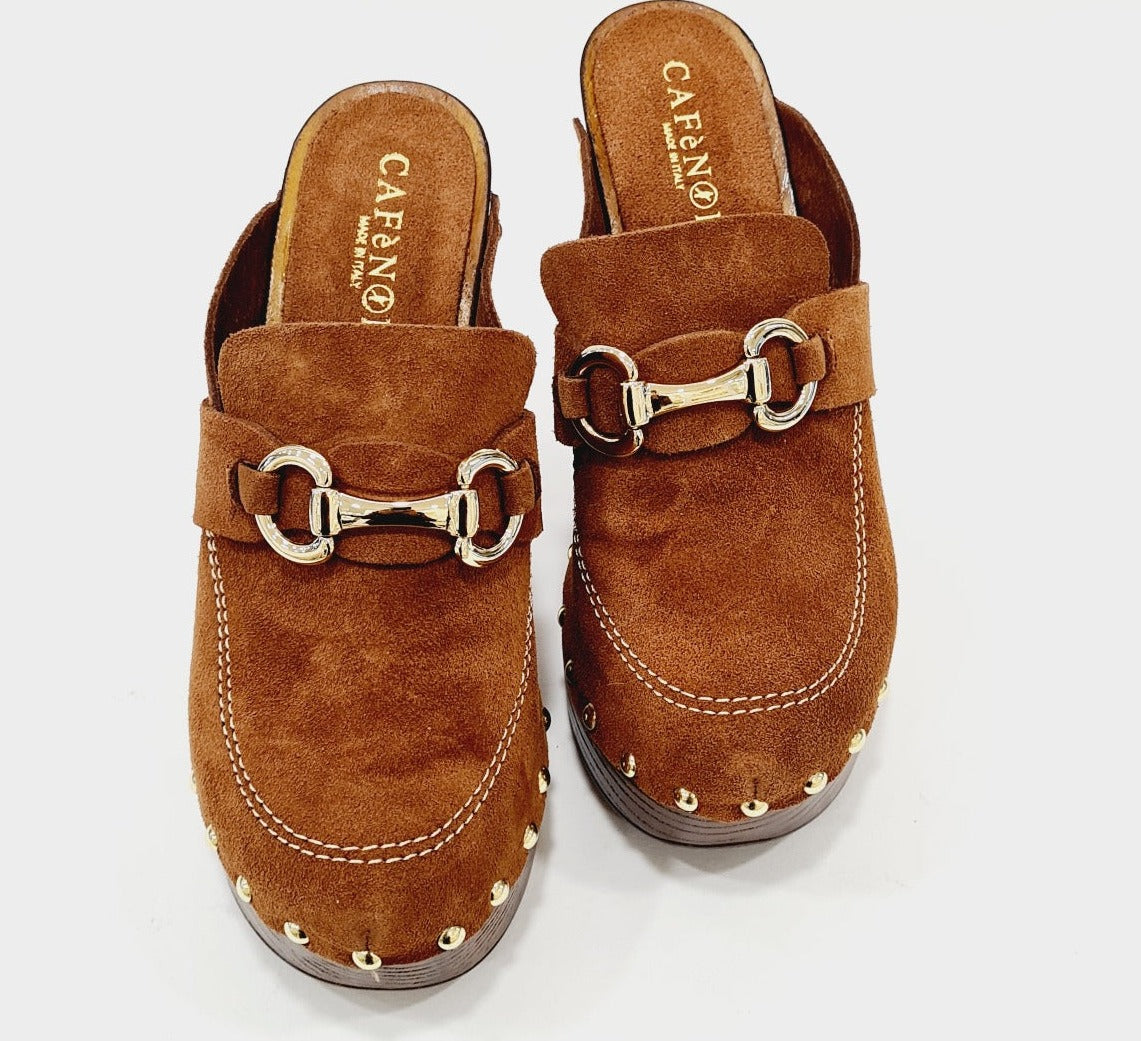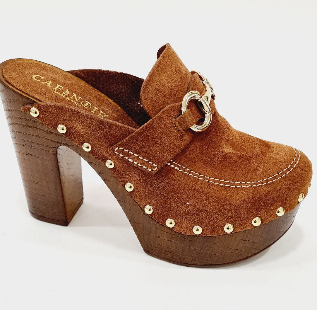 Cafenoir sabot tacco alto 11,5 cm. plateau 3,5 cm. camoscio cuoio rif.703