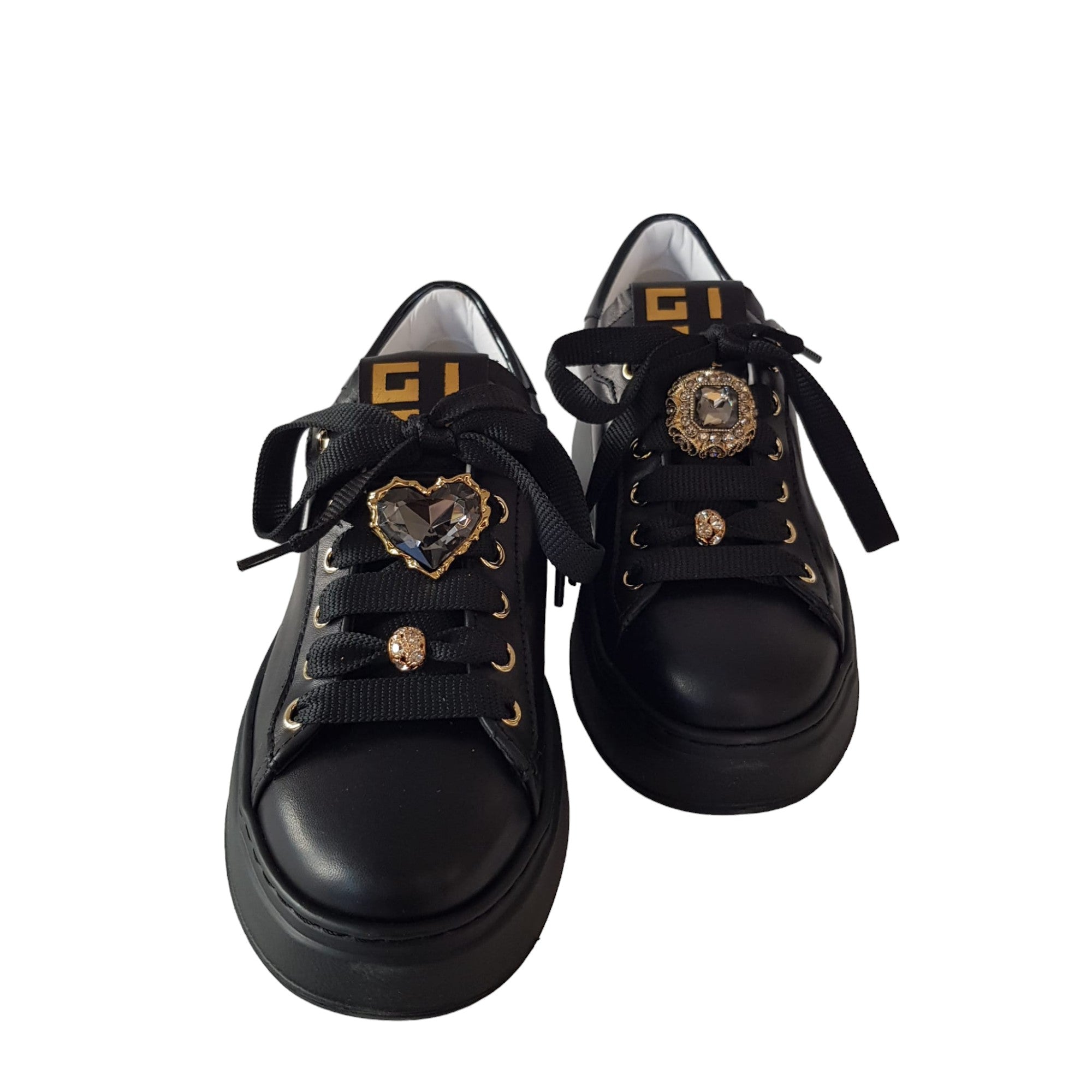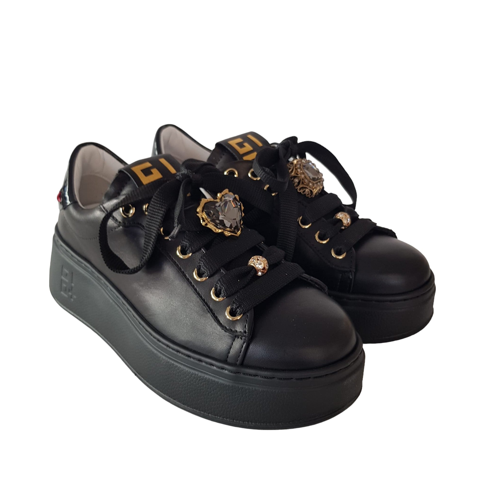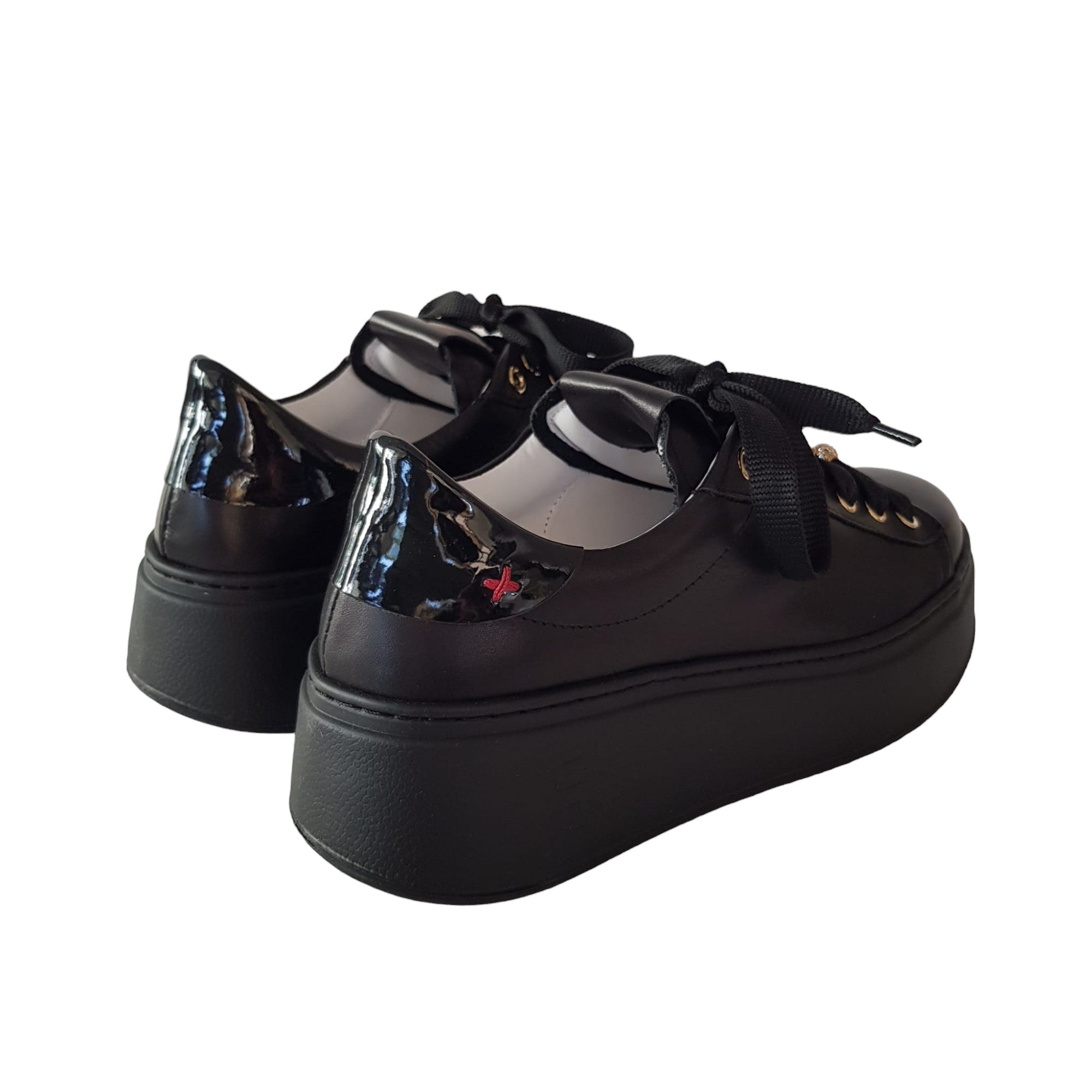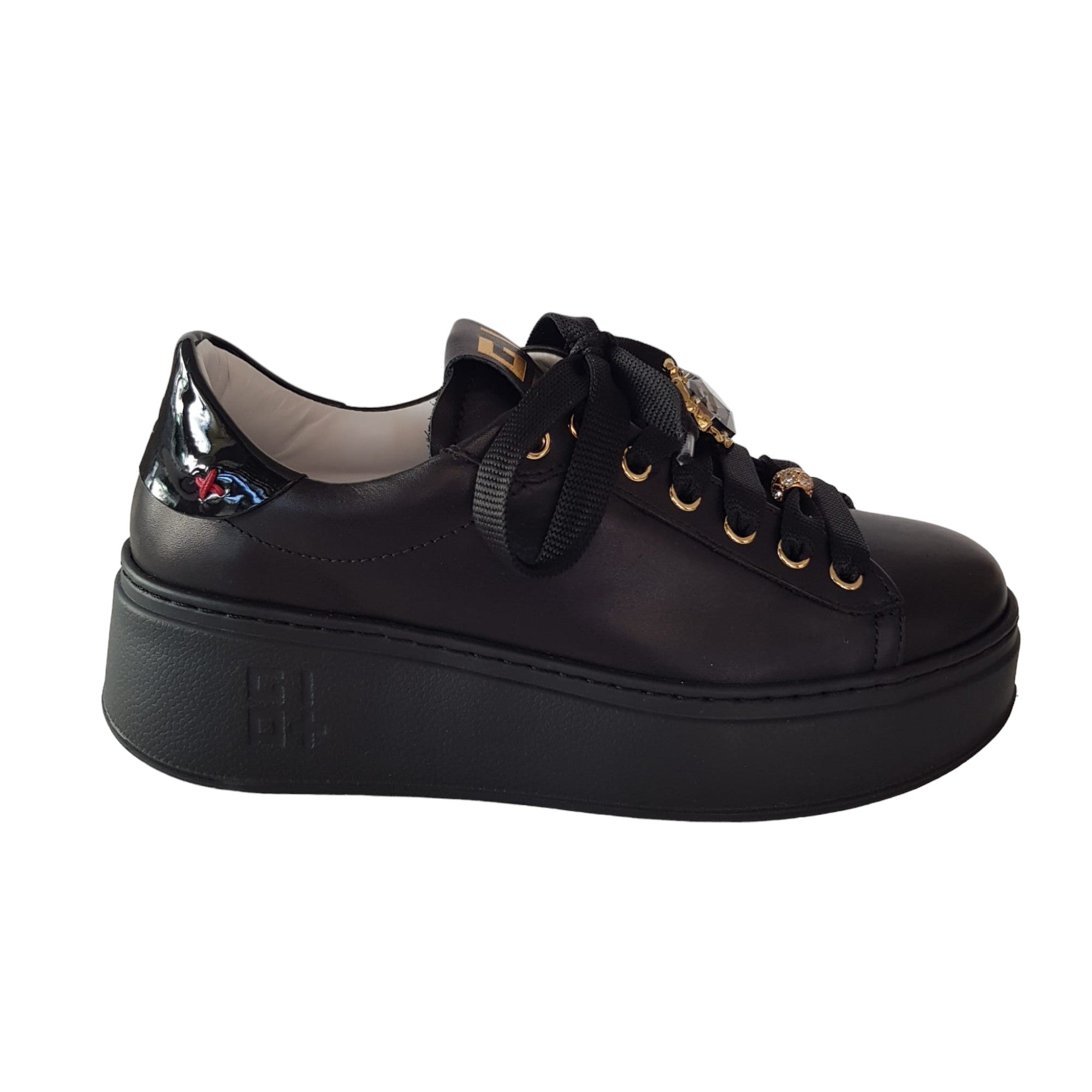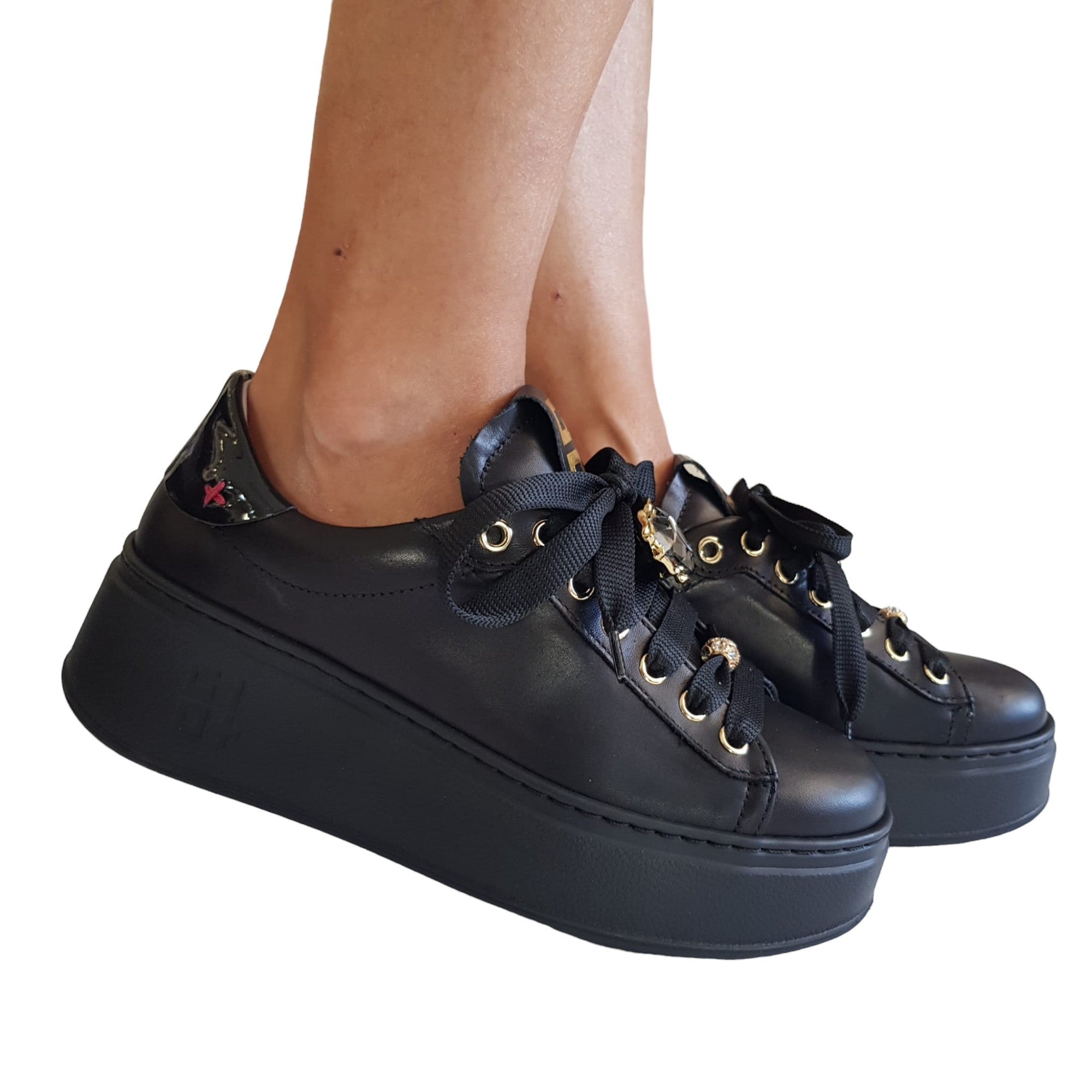 Gio+ Sneakers Donna Pelle Nero fondo gomma alto 5 cm. Rif.58