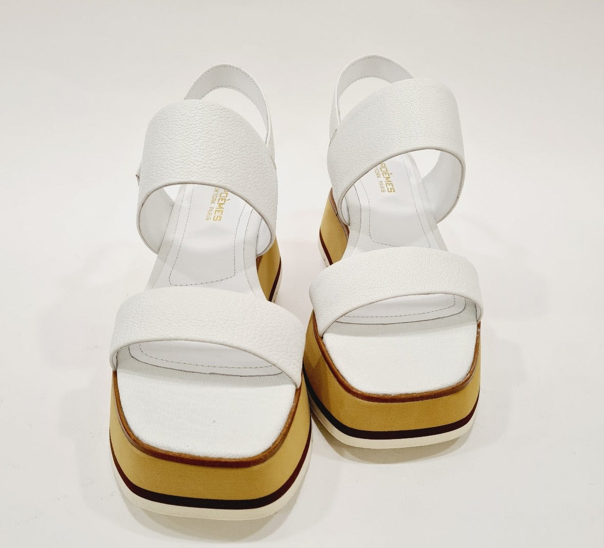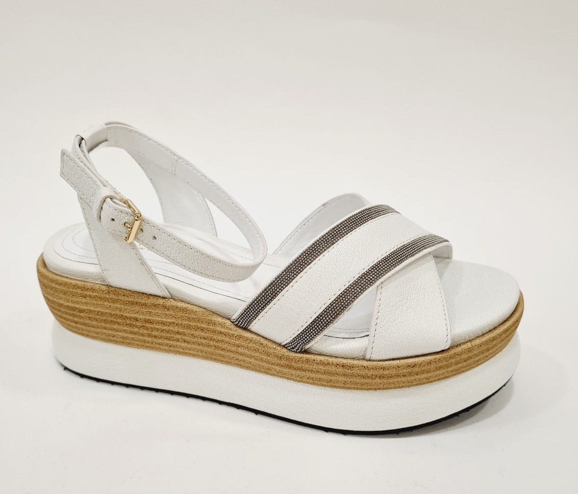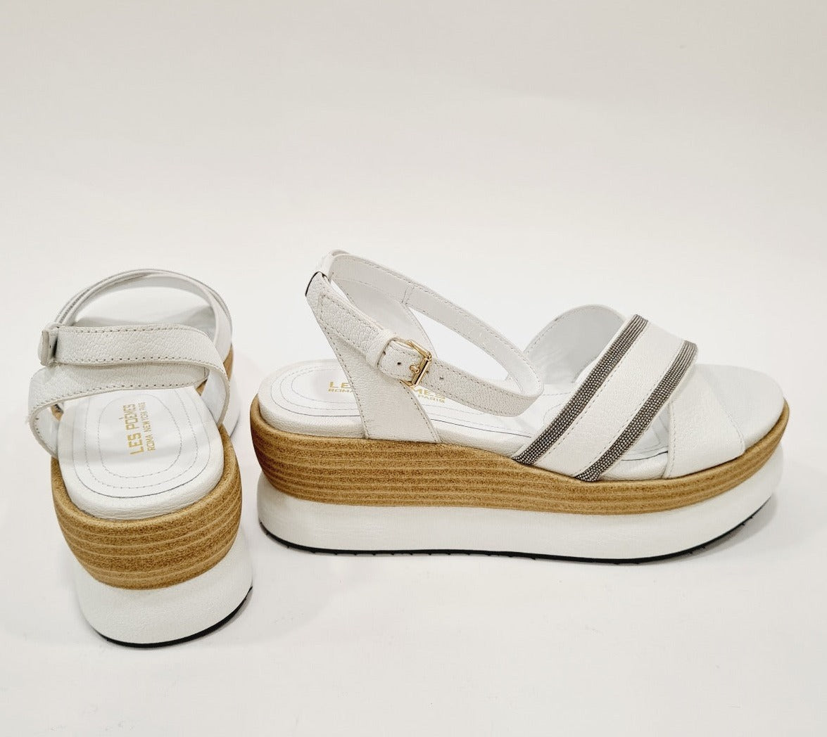 Les Poemes sandalo con cinturino alla caviglia fascia incrociata zeppa alta 6 cm. pelle bianco rif.752