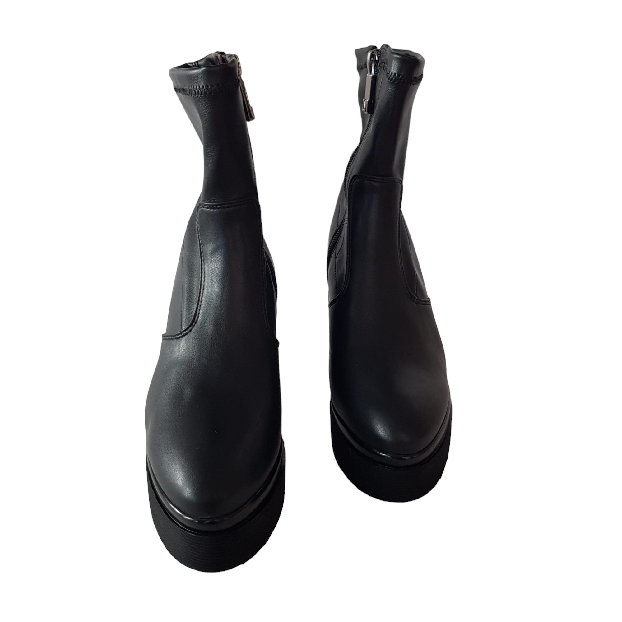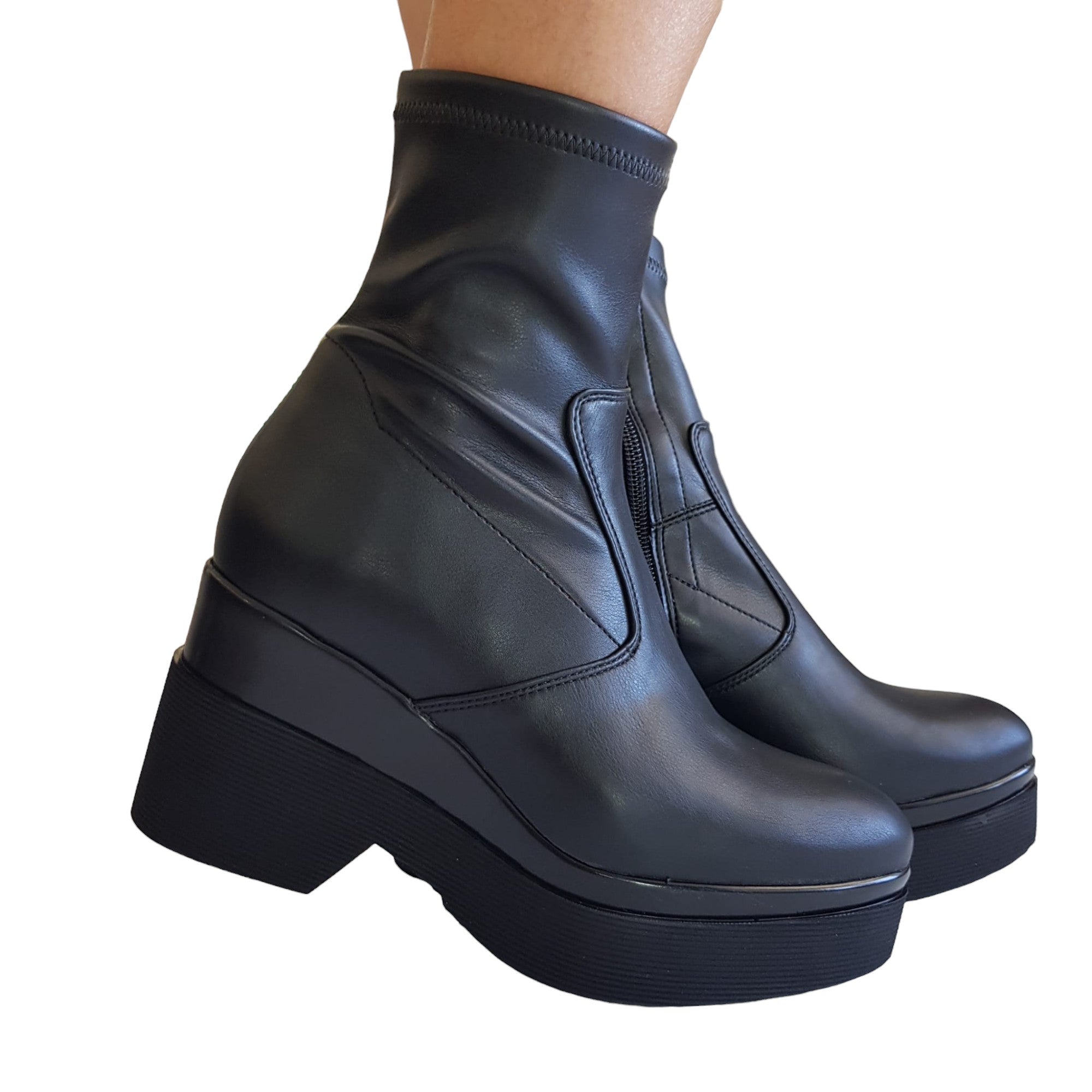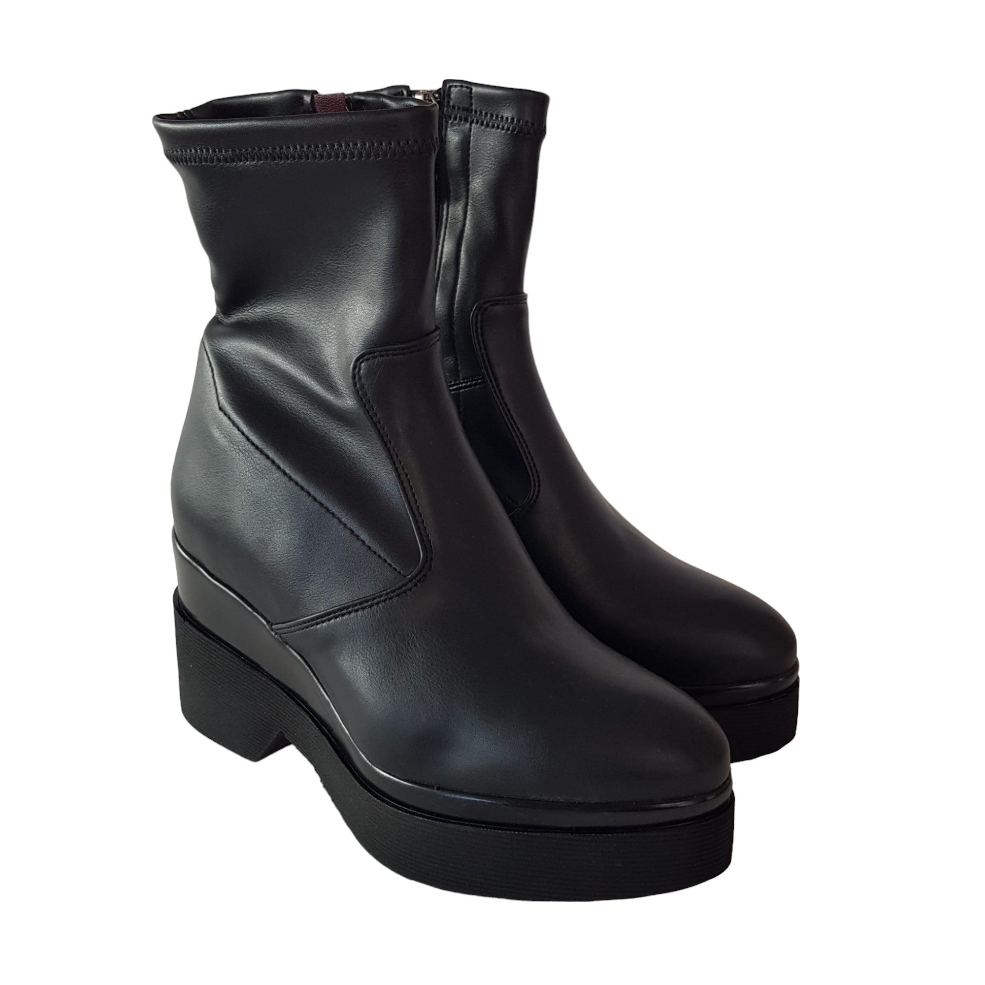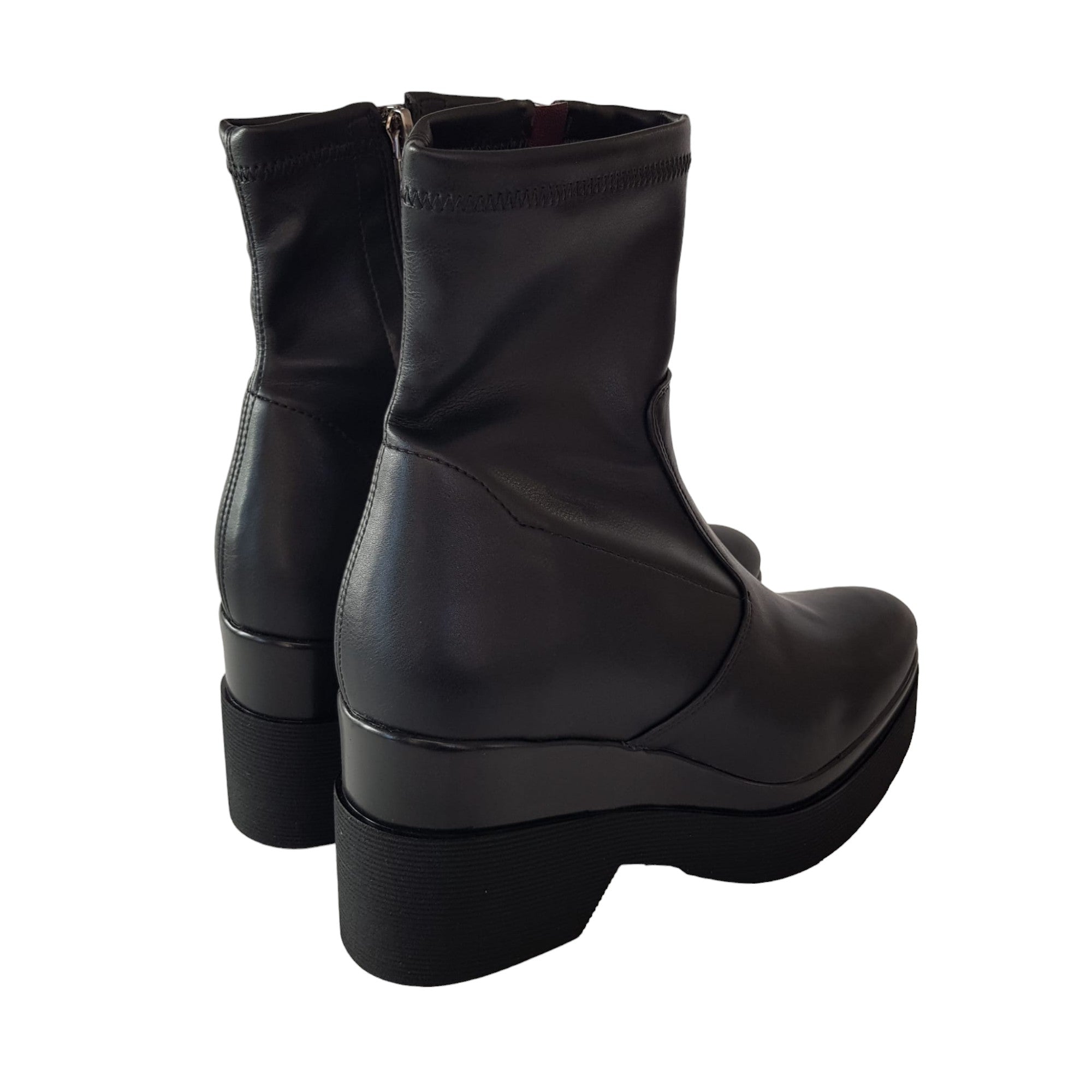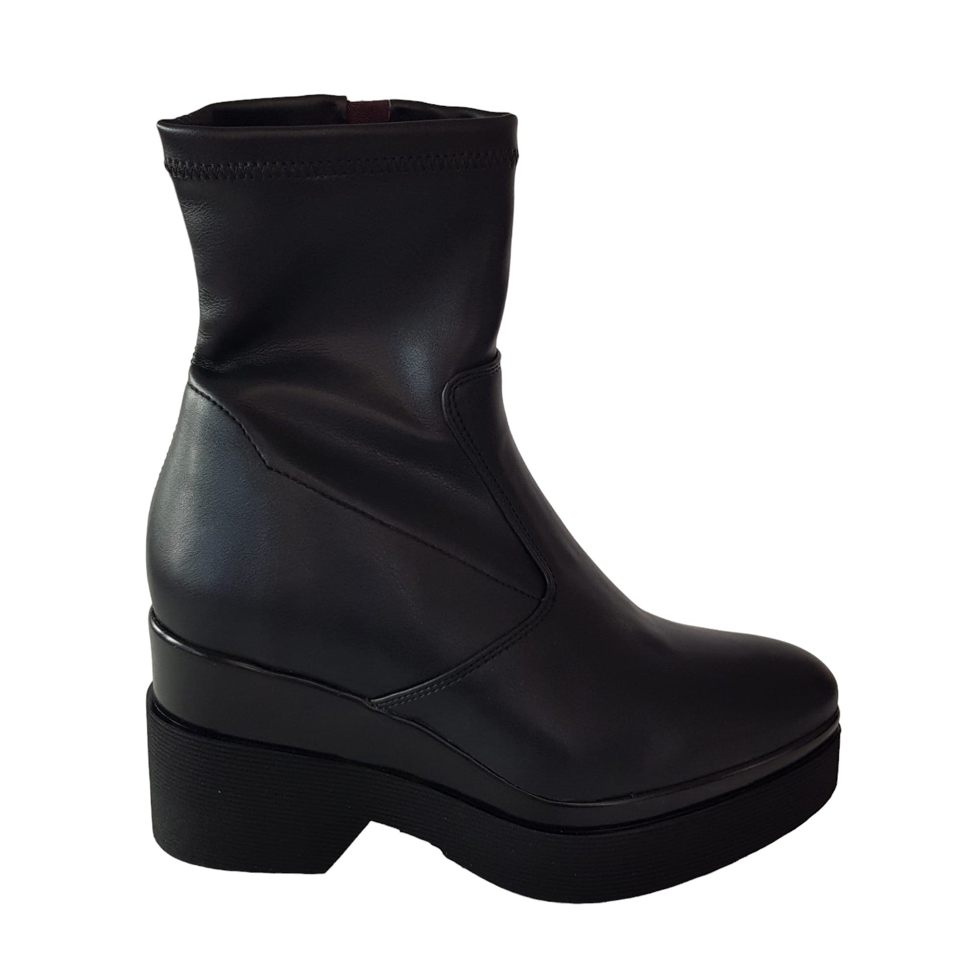 Lorenzo Mari stivaletto Donna zeppa fondo gomma 9 cm. Plateau 3,5 cm pelle nero Rif.836