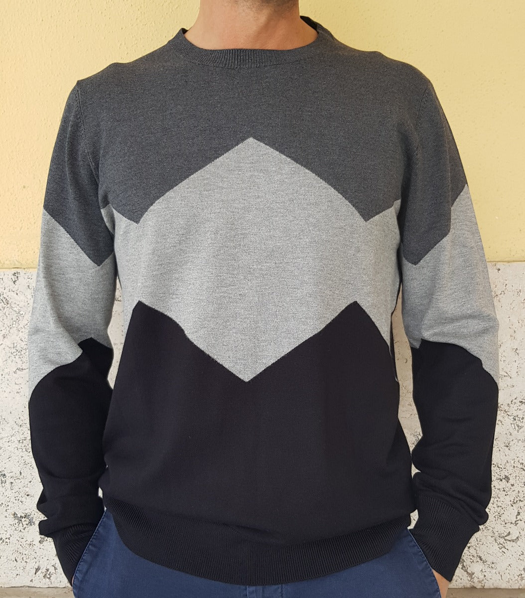 Markup abbigliamento uomo maglioncino nero viscose blend intarsio bande art.401
