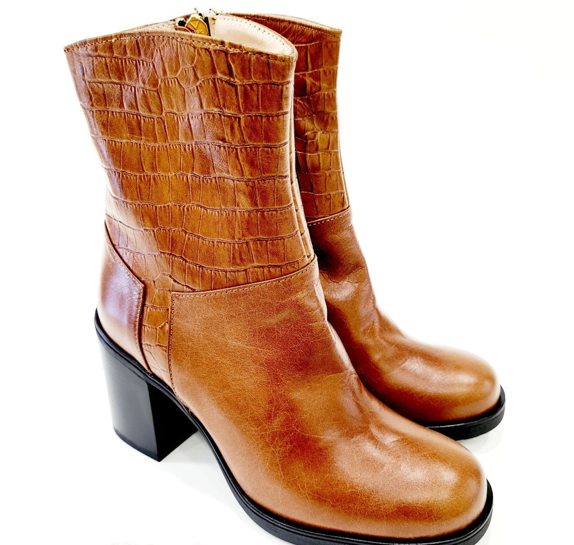 TATTOO STIVALETTO FONDO GOMMA TACCO 4 CM PELLE TESTA DI MORO RIF90
