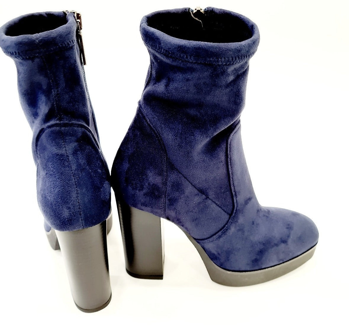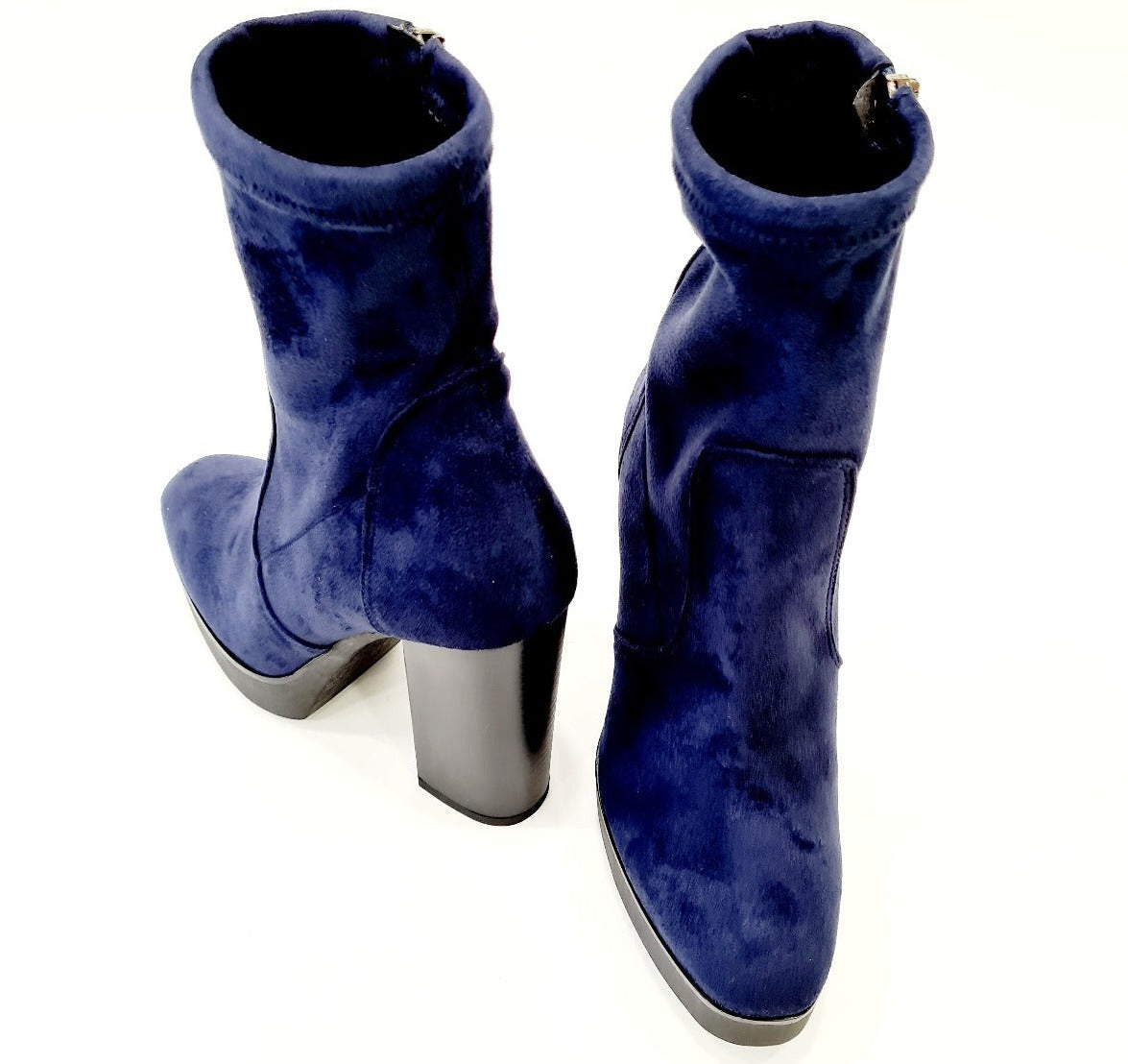 LORENZO MARI STIVALETTO ELASTICIZZATO FONDO GOMMA TACCO ALTO 11CM. PLATEAU 2,5 CM CAMOSCIO BLU ART.710