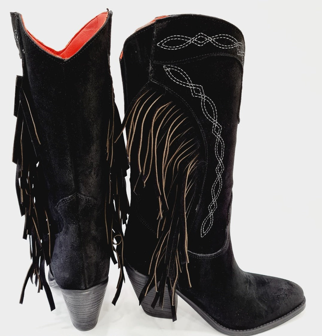 Zoe stivale texano frange tacco 9 cm crosta black rif.19