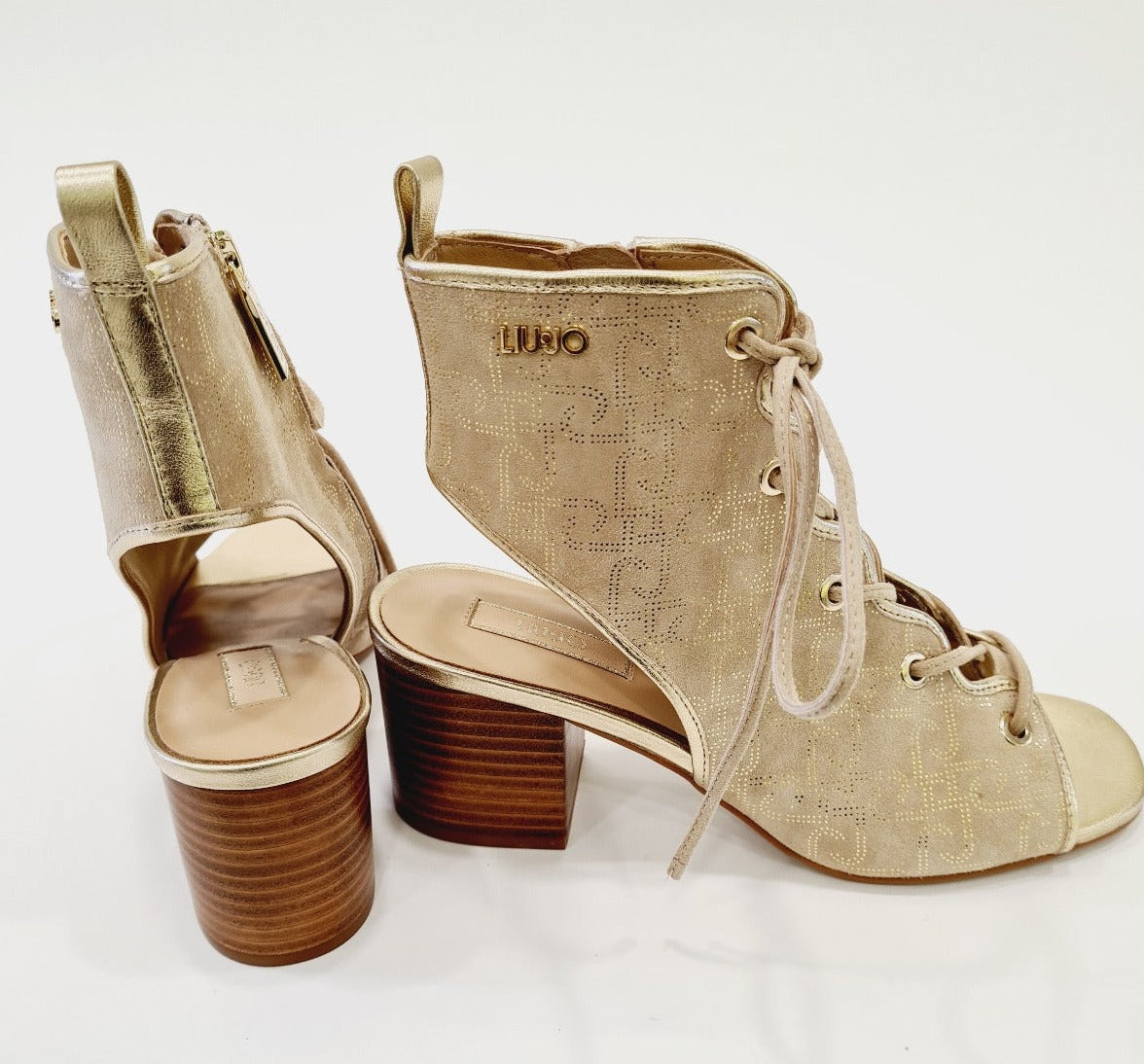Liu-Jo sandalo tacco alto 6,5 cm. camoscio beige-oro art.624