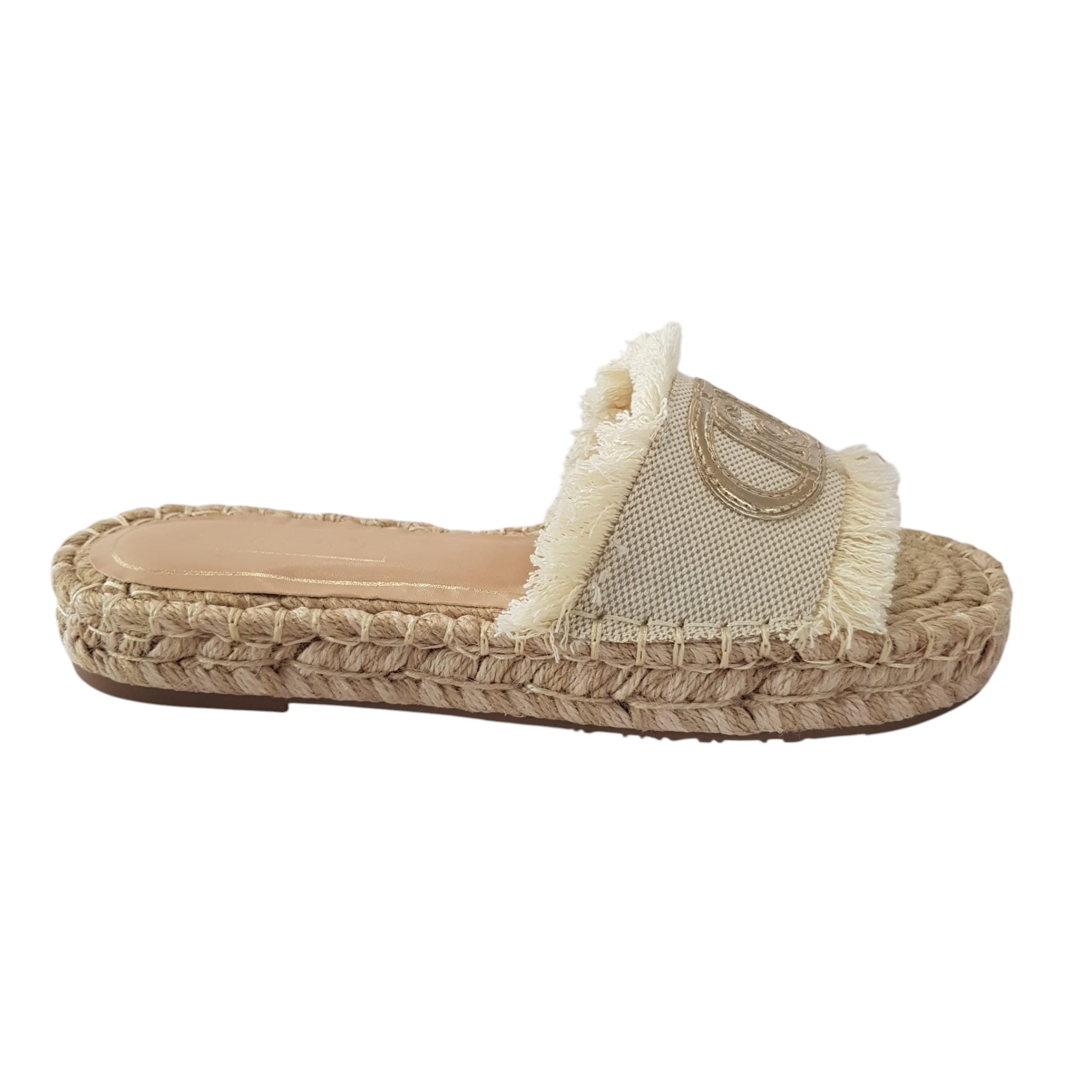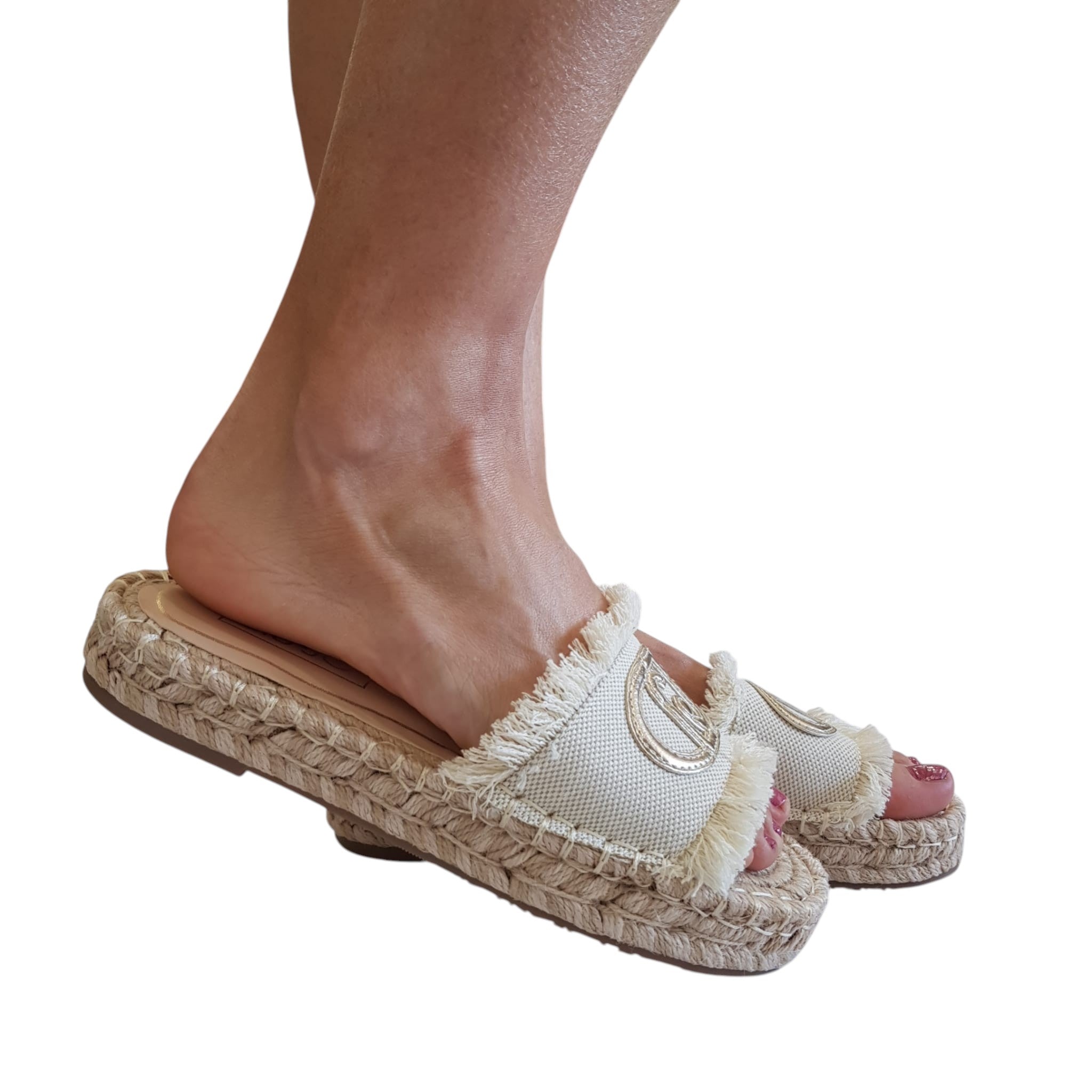 Liu Jo Sabot Donna Tessuto Milk metallizzato Gold Zeppa Corda alta 3 cm.Rif.904