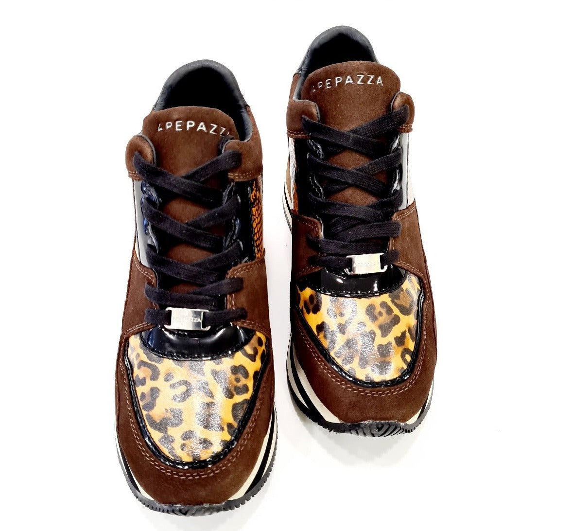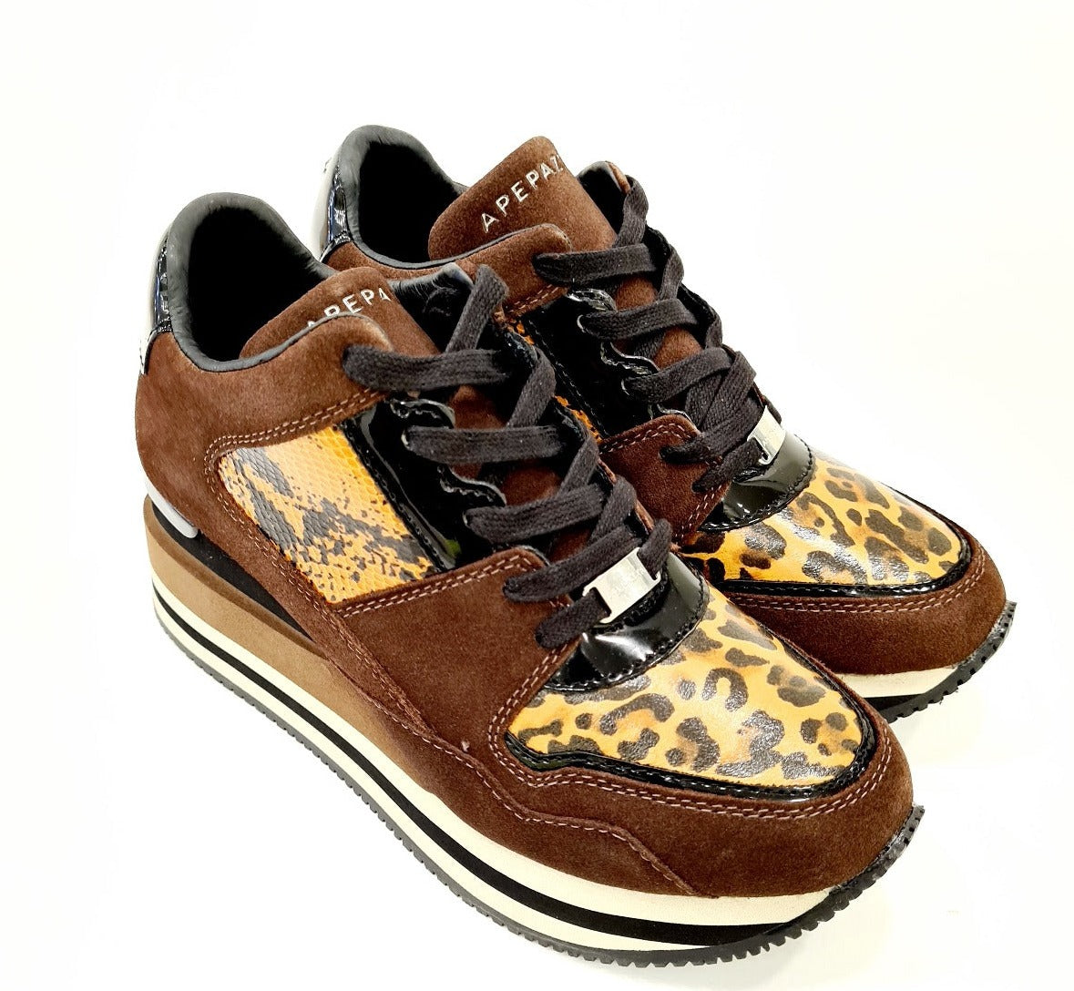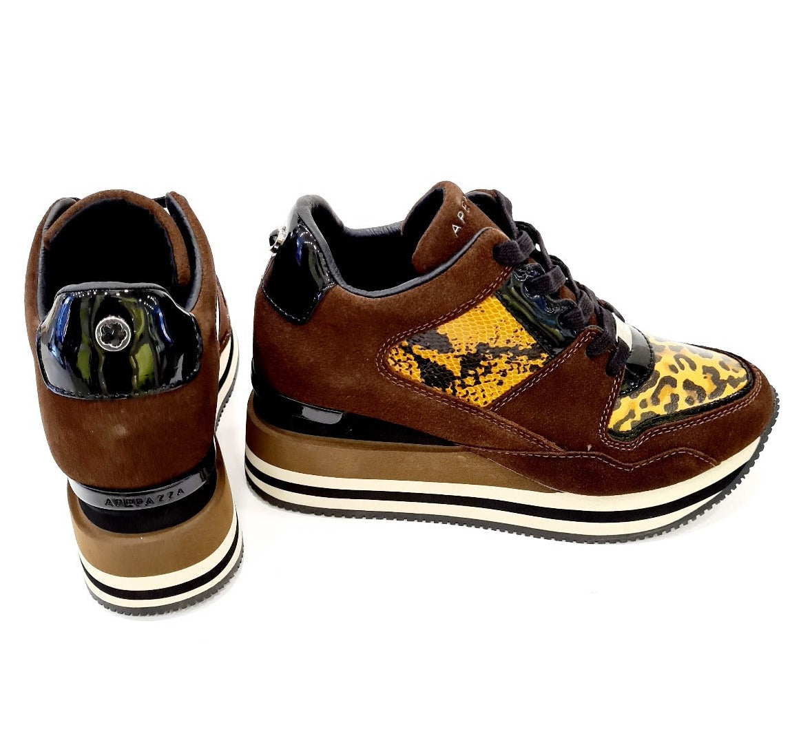 APEPAZZA SNEAKERS FONDO GOMMA E ZEPPA INTERNA ALTA 7 CM. PELLE BROWN ART.587