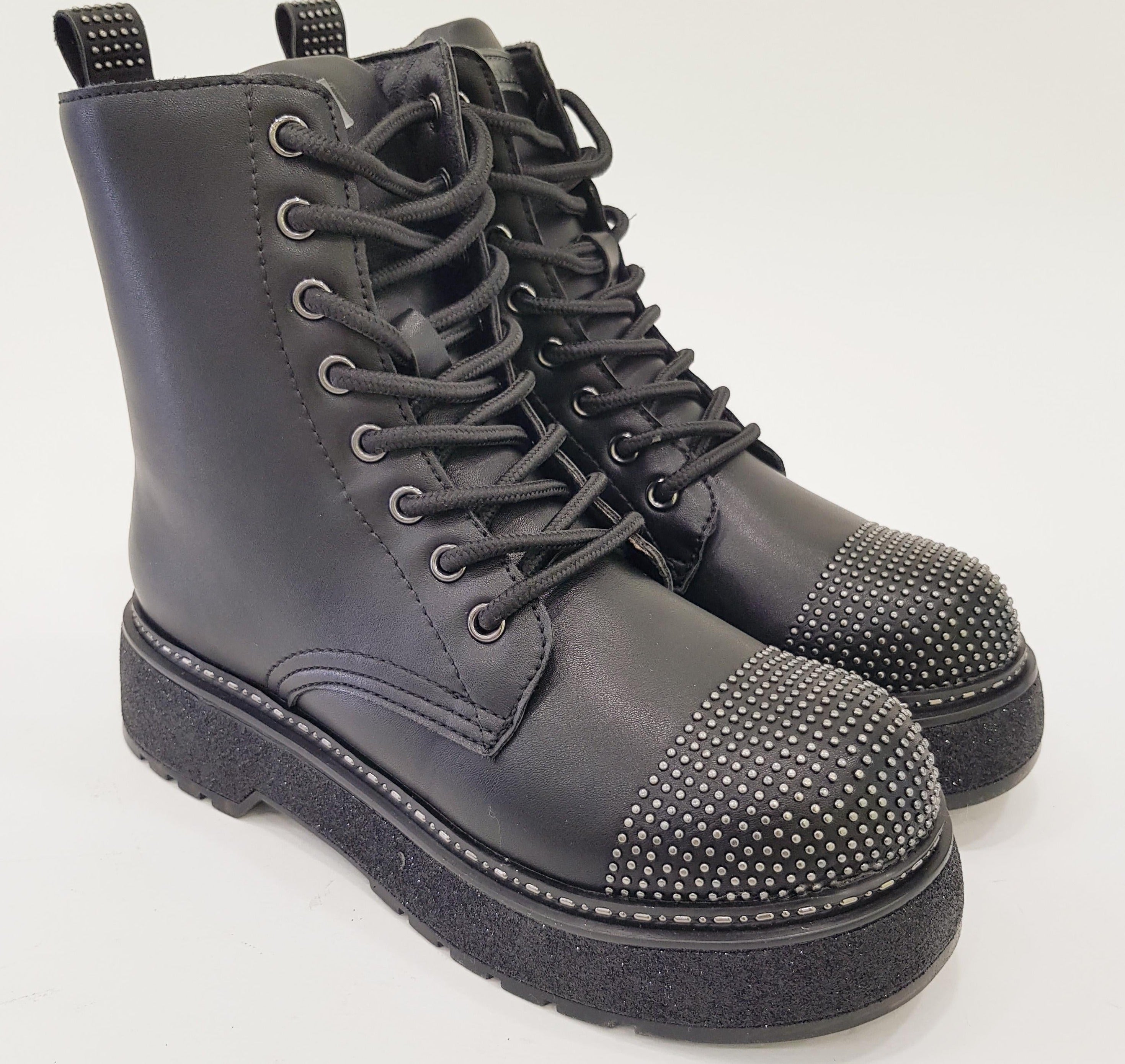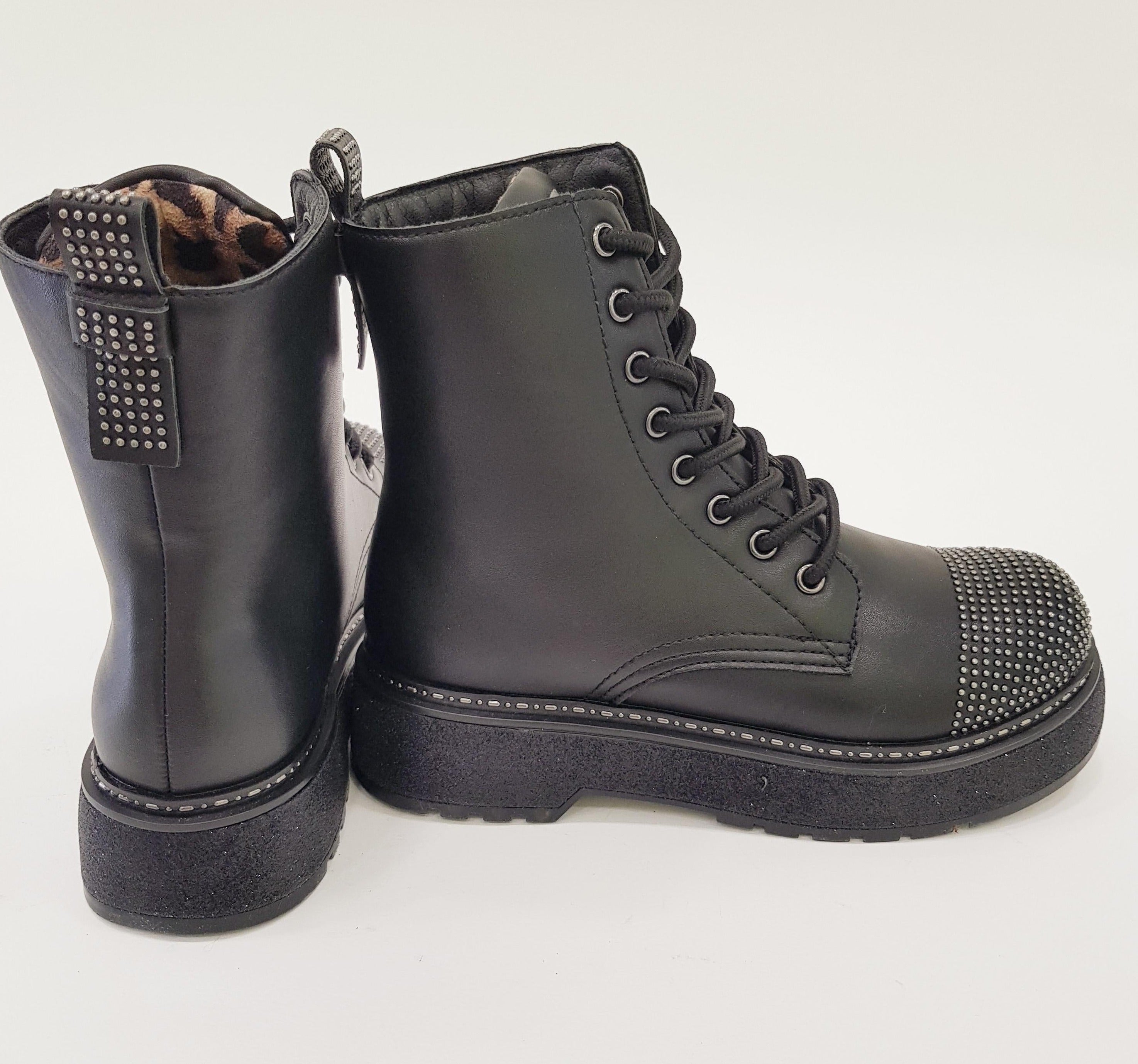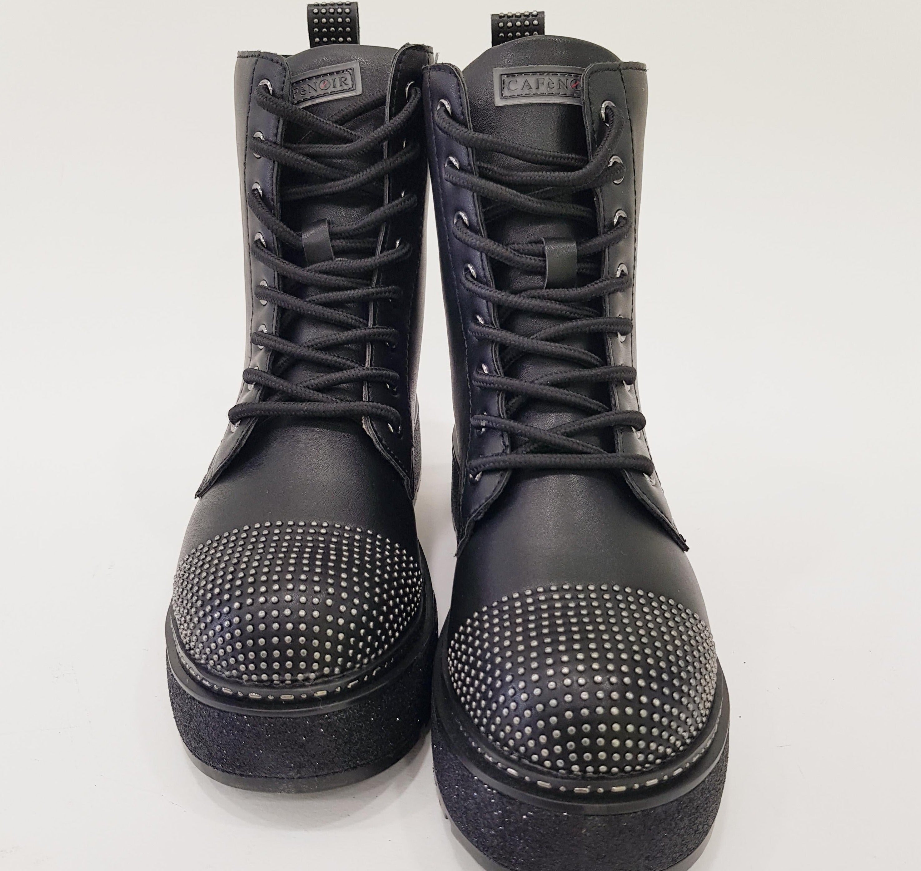 CAFE'NOIR ANFIBIO FONDO GOMMA 6,5 CM PELLE BLACK APPLICAZIONI ACCIAIO ART.625
