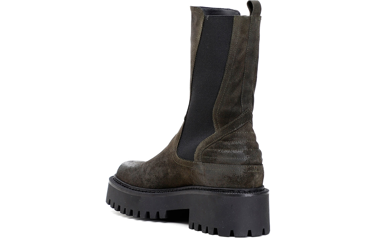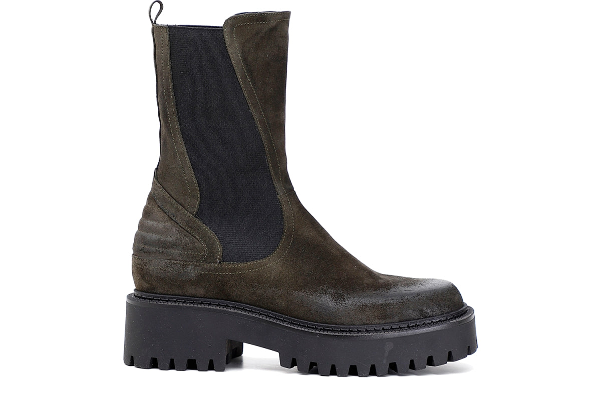 Cafe'Noir tronchetti fondo gomma alto 5 cm. camoscio verde scuro imbottiti con punta squadrata rif.560