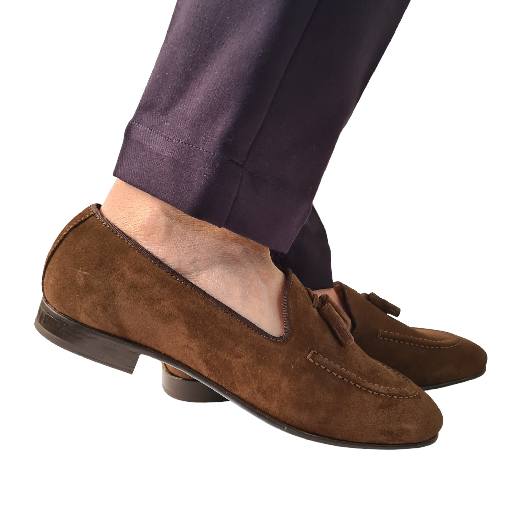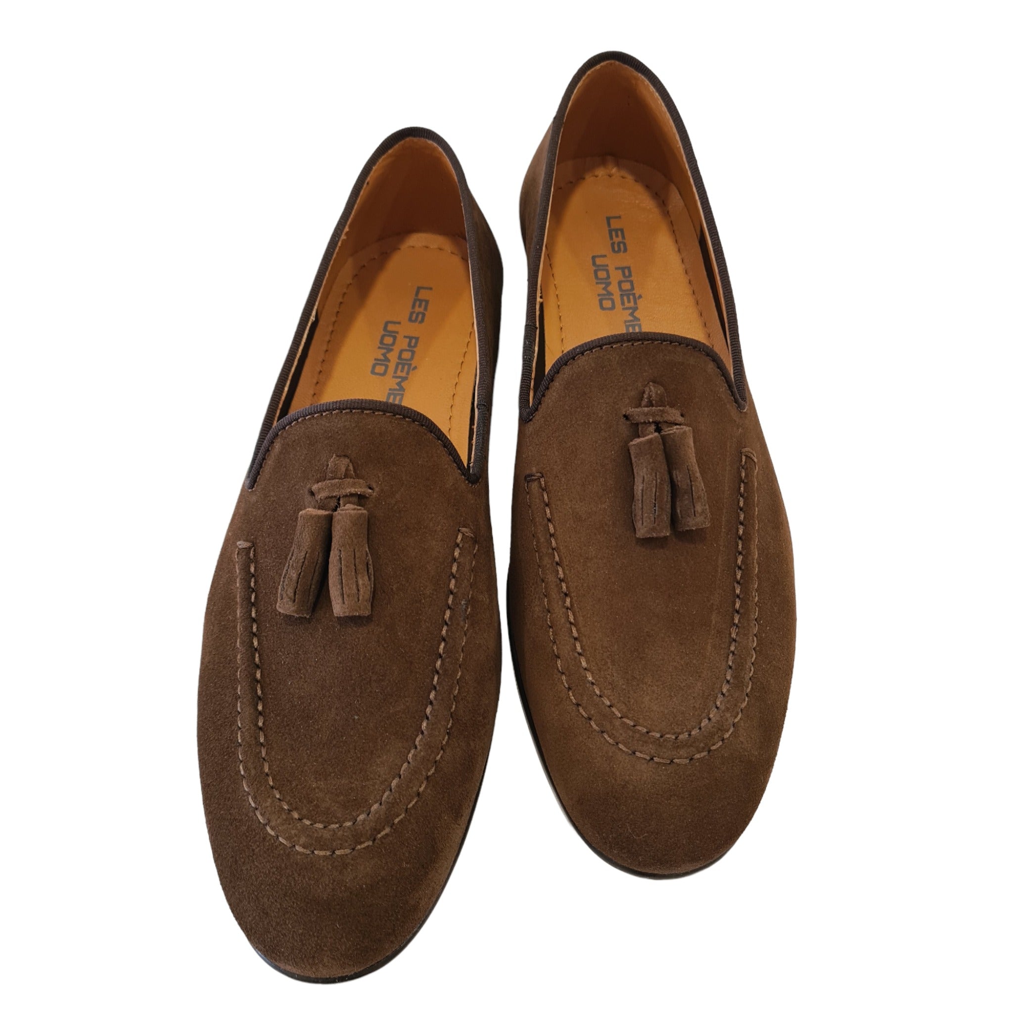 Les Poemes Mocassino Uomo con nappine fondo gomma Camoscio Marrone Rif.60