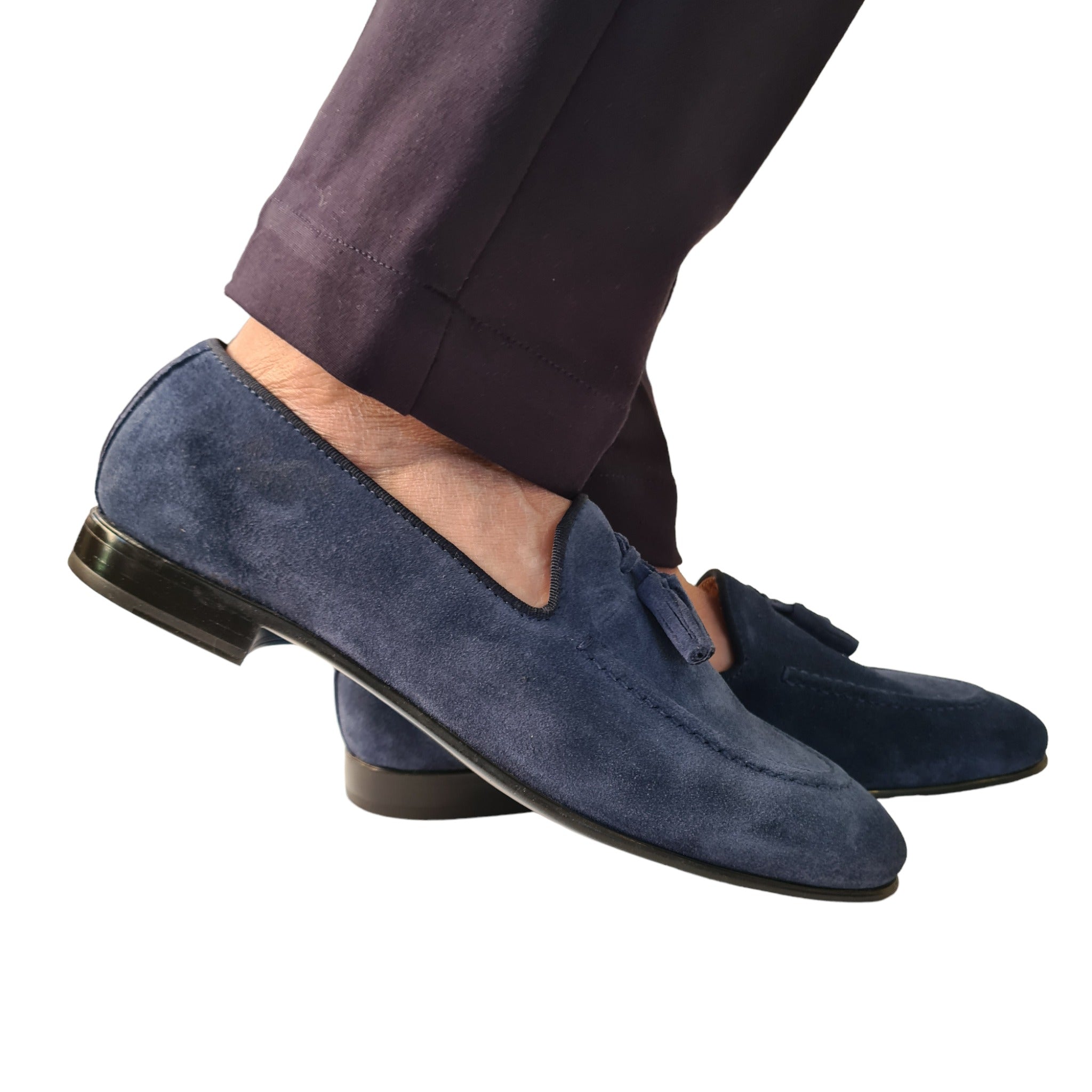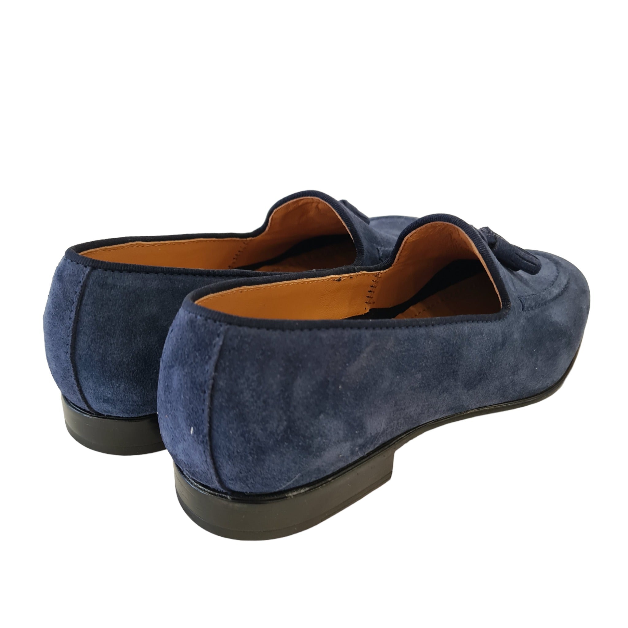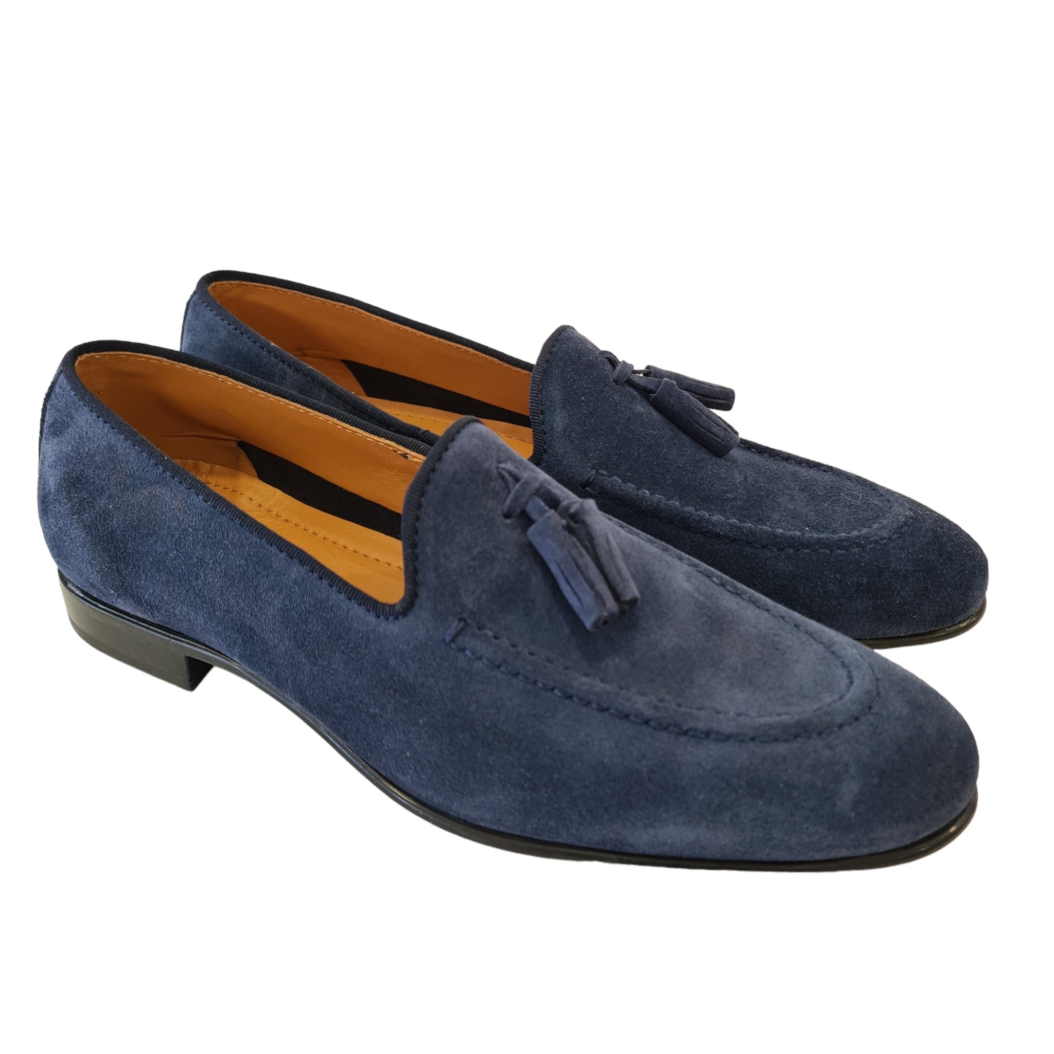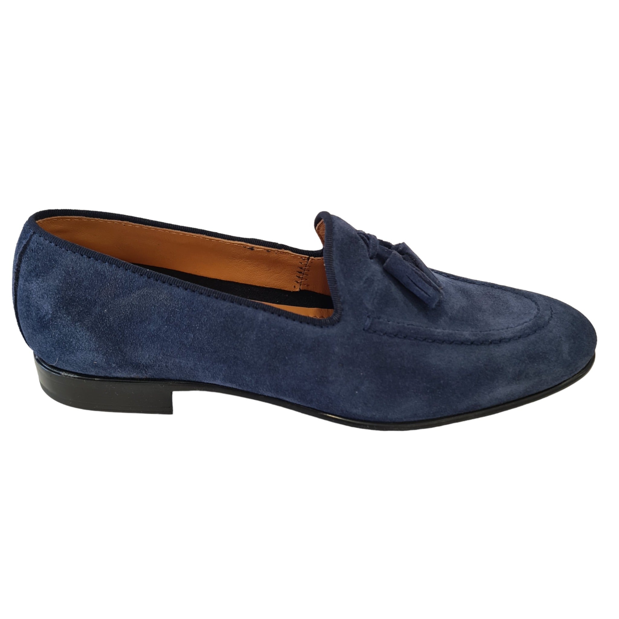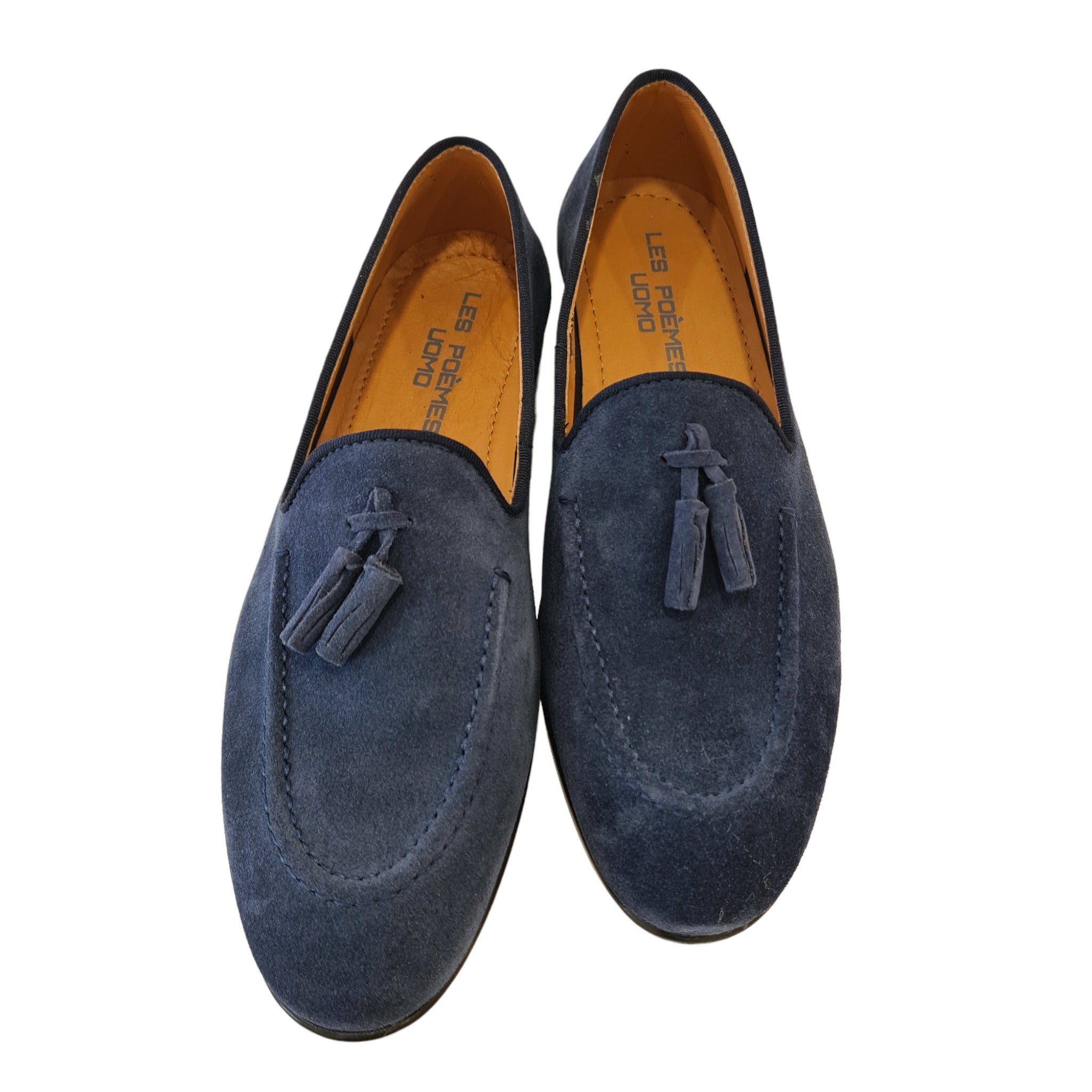 Les Poemes Mocassino Uomo con nappine fondo gomma Camoscio Blue Rif.61
