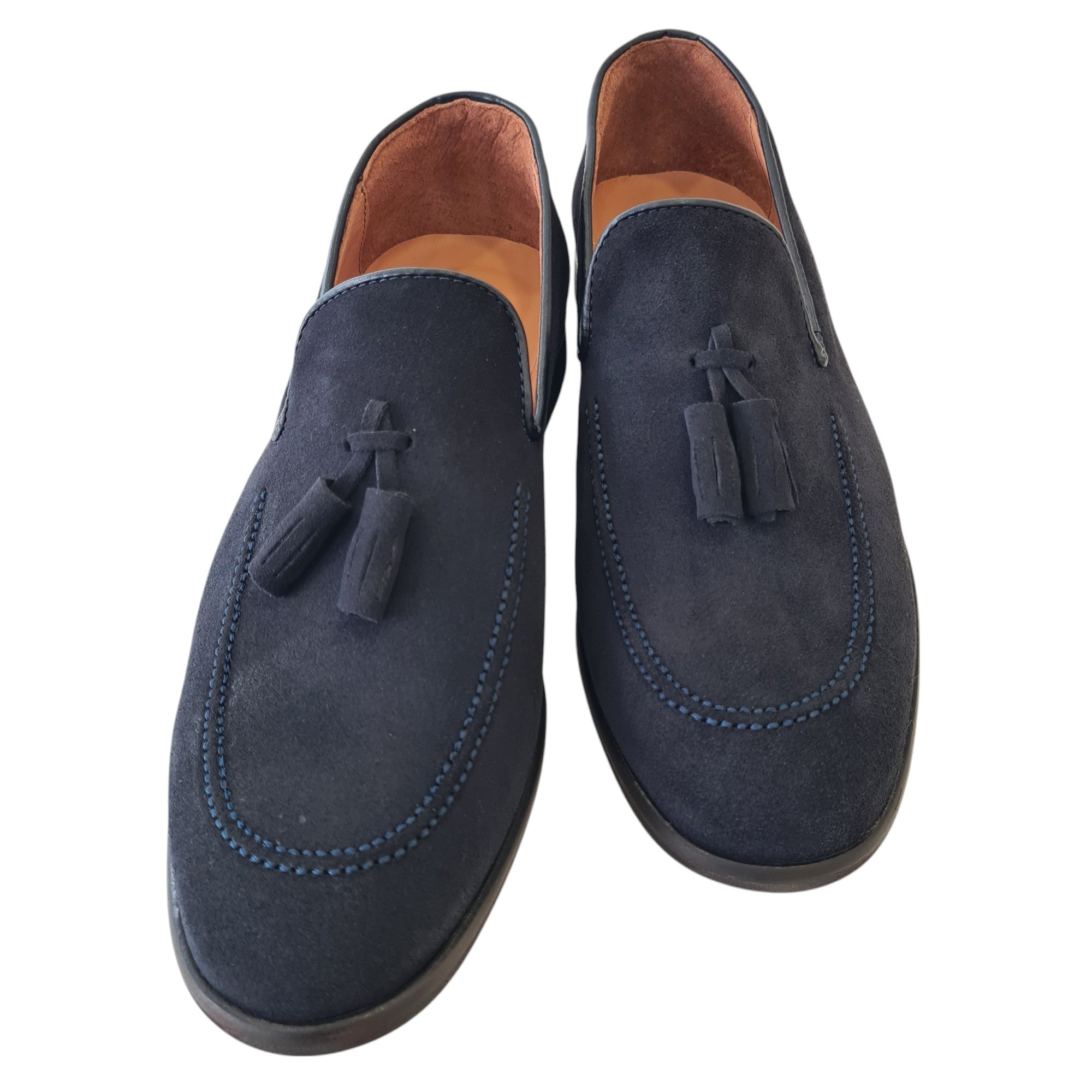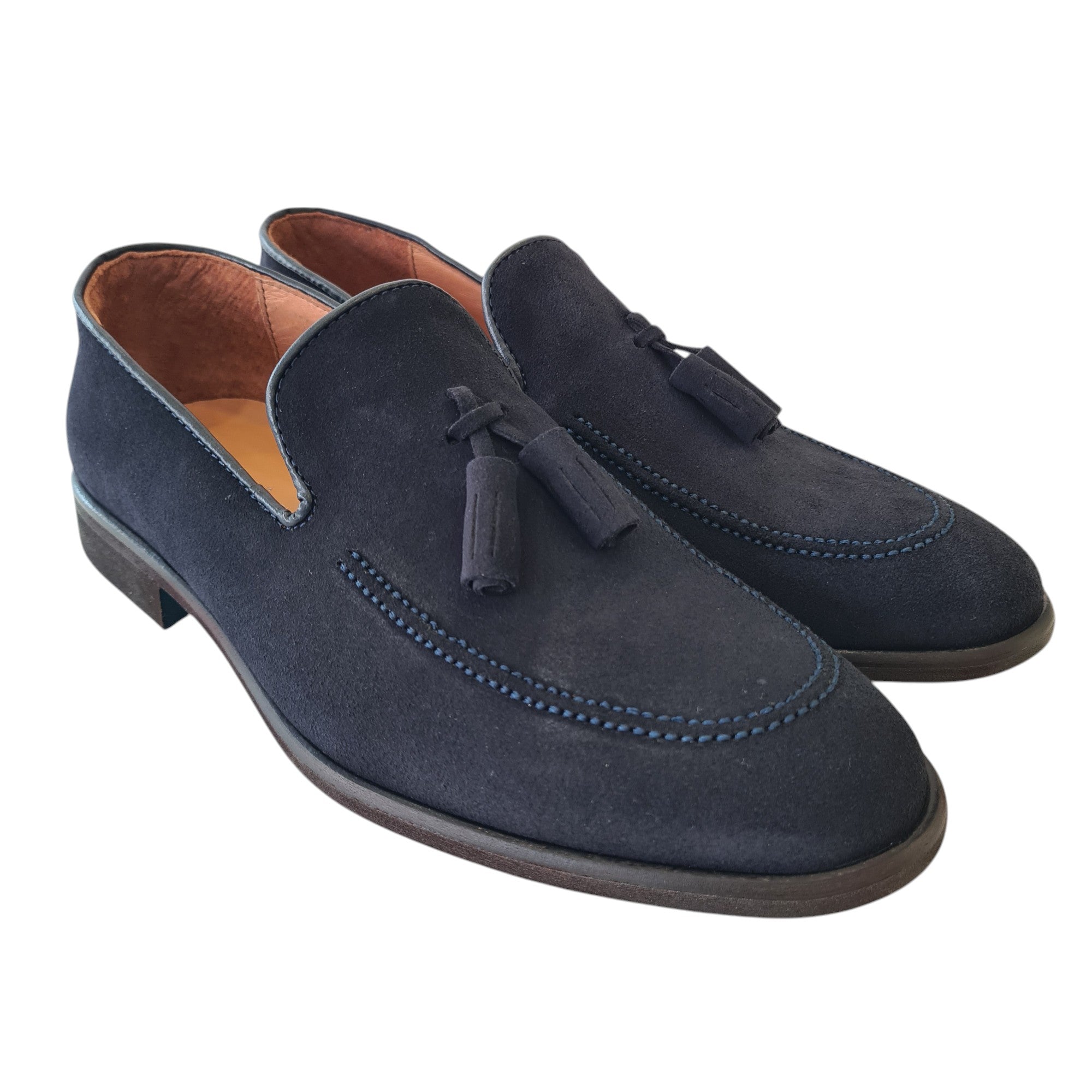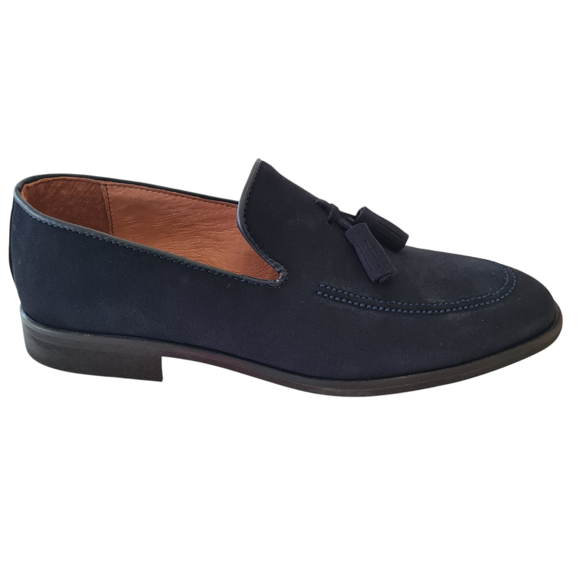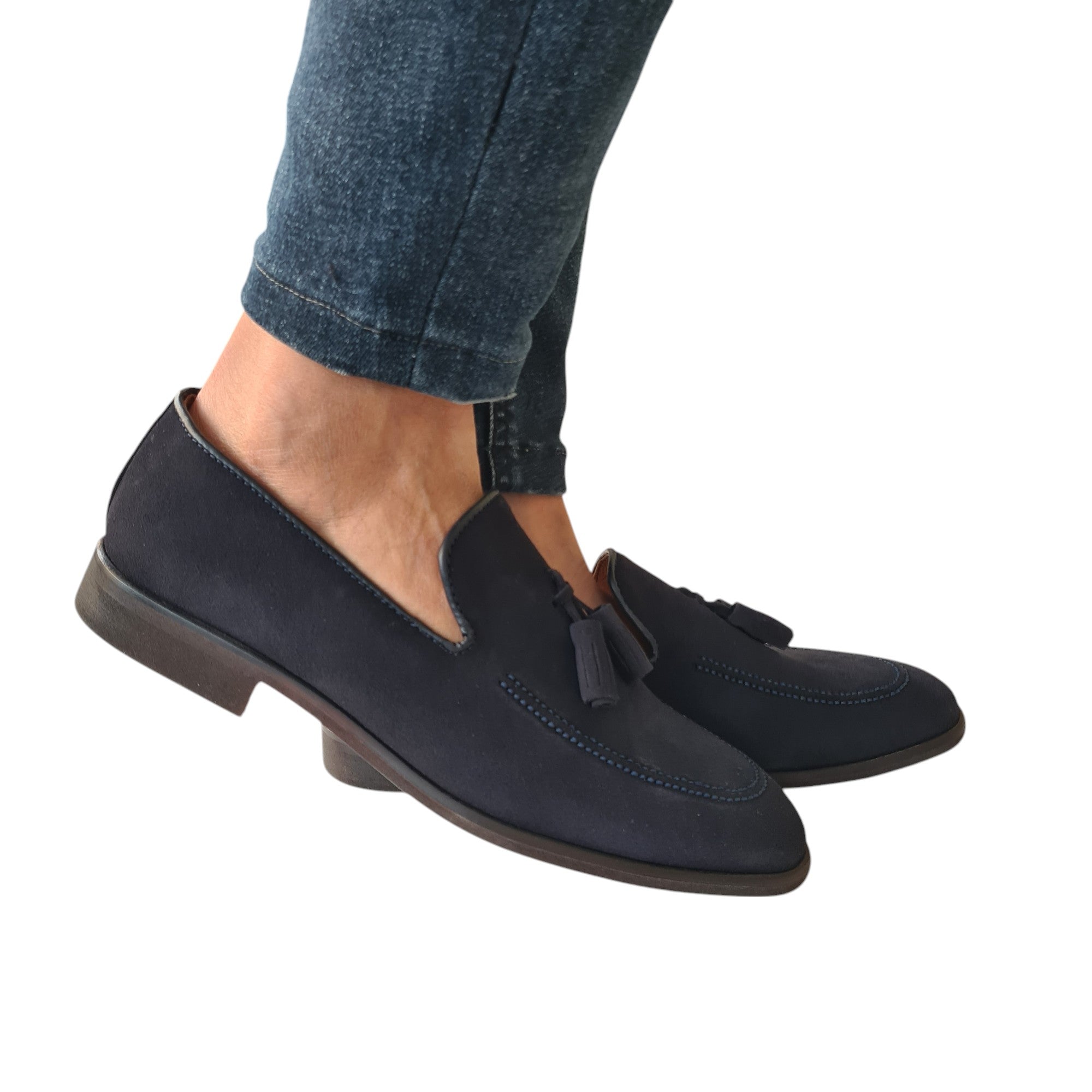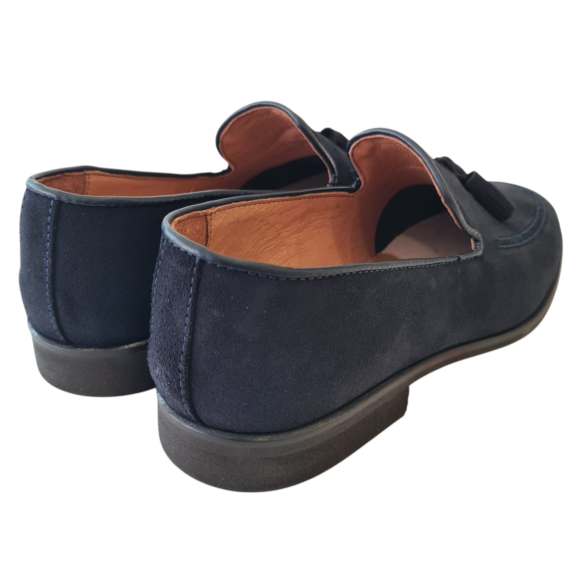 Les Poèmes Uomo Mocassino Camoscio Blu con nappine Rif.117