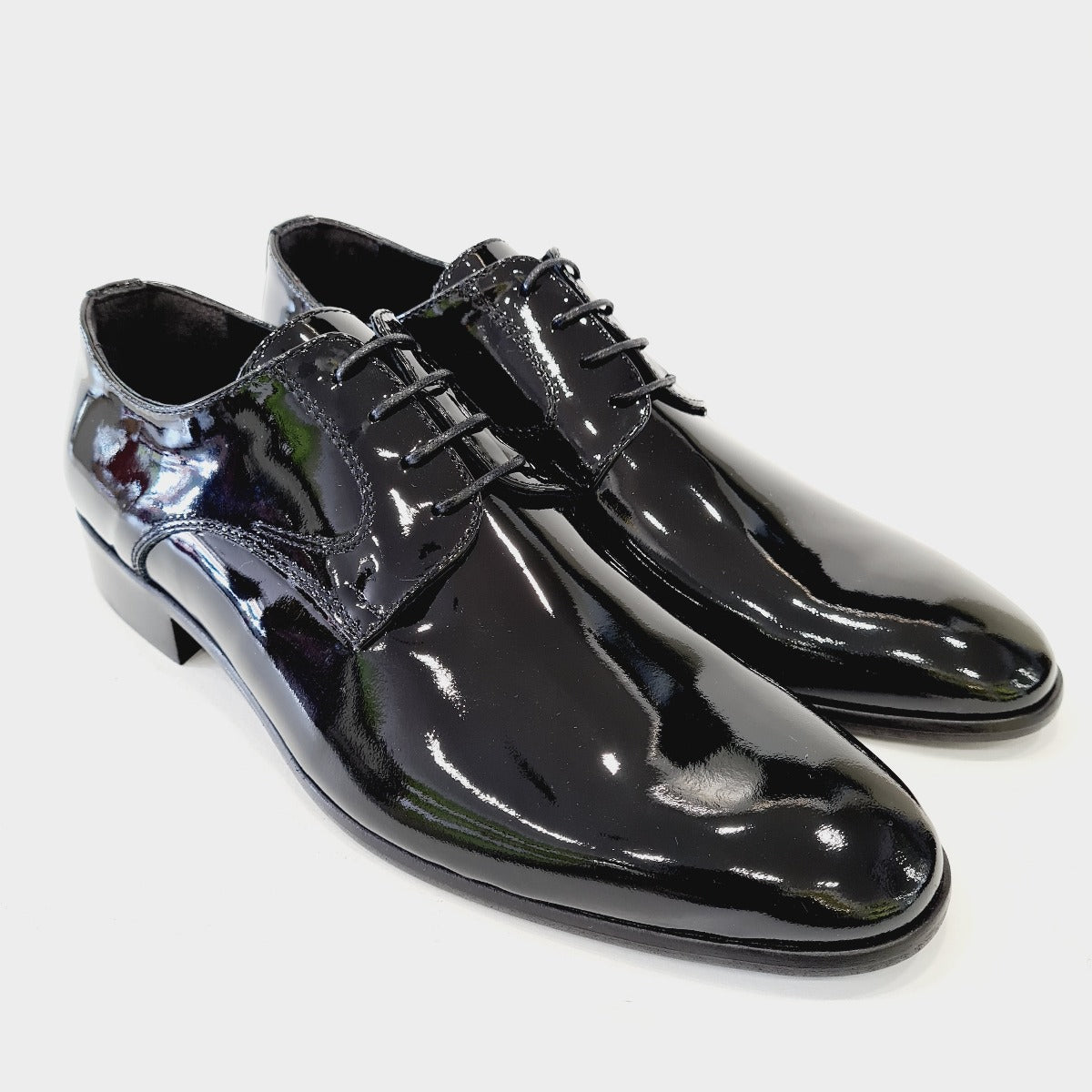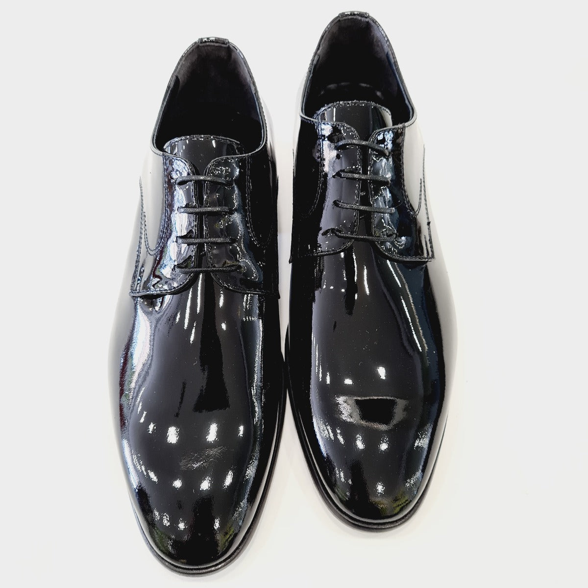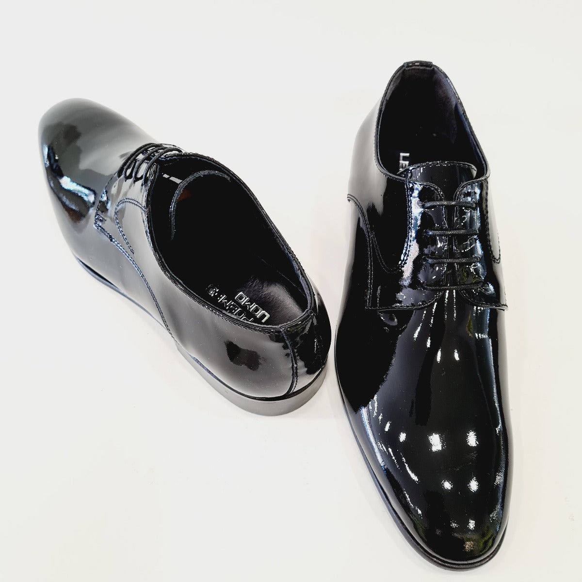 Les Poemes uomo scarpa elegante allacciata fondo cuoio pelle naplak Black art.15