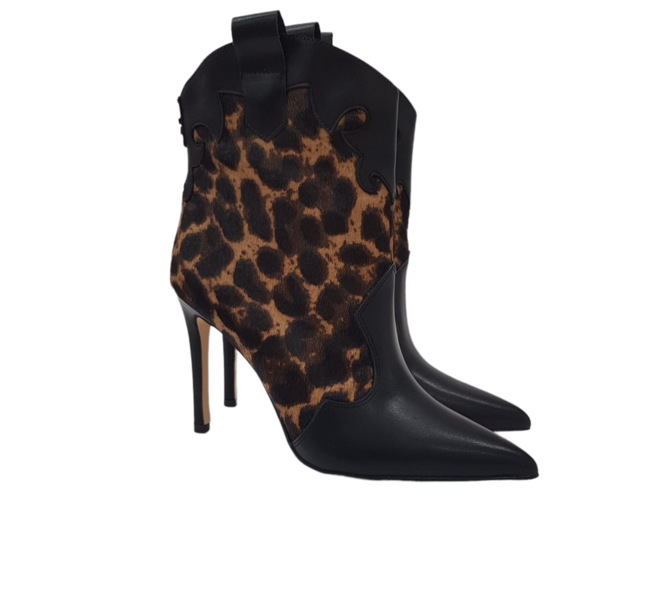 Guess Tronchetto Pelle Black e Cavallino leopard tacco 10 cm rif. G668